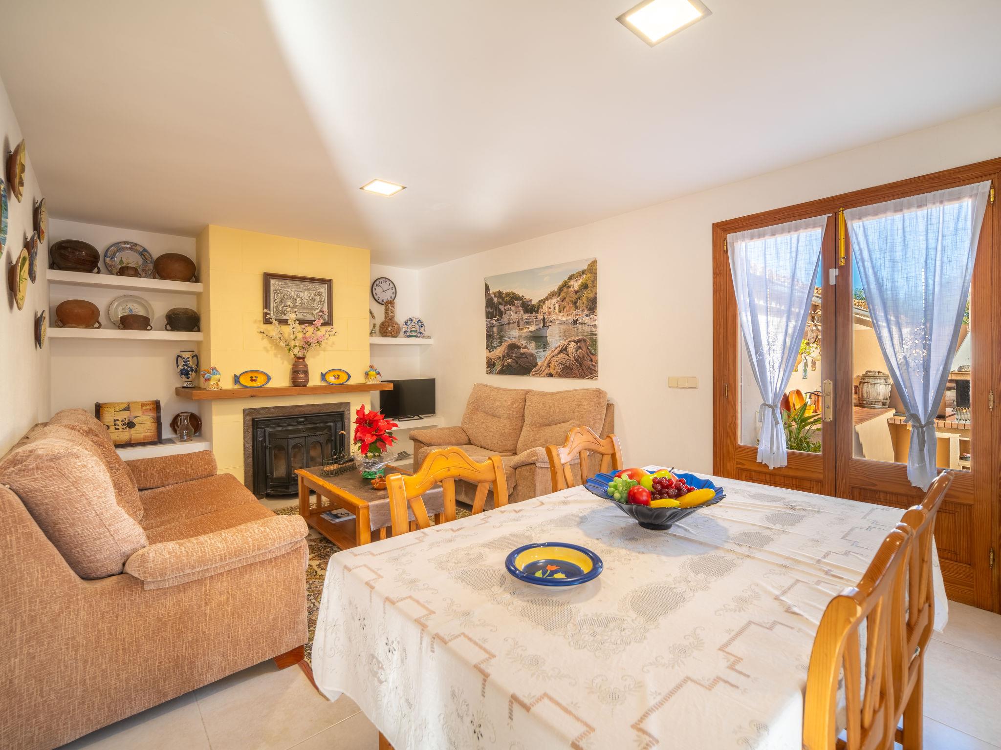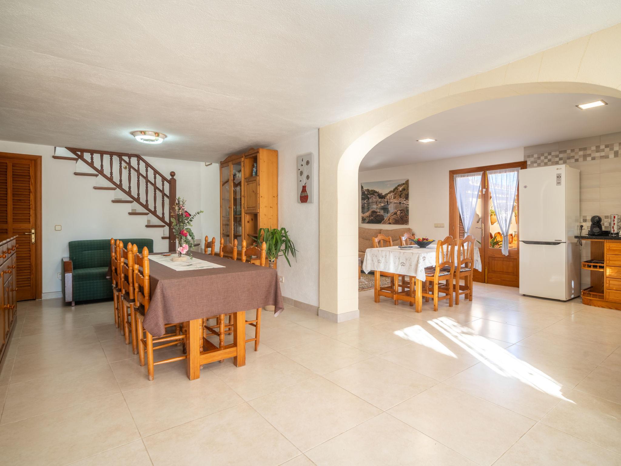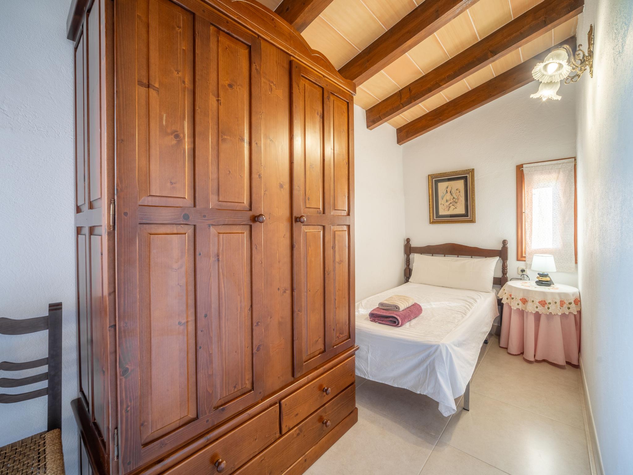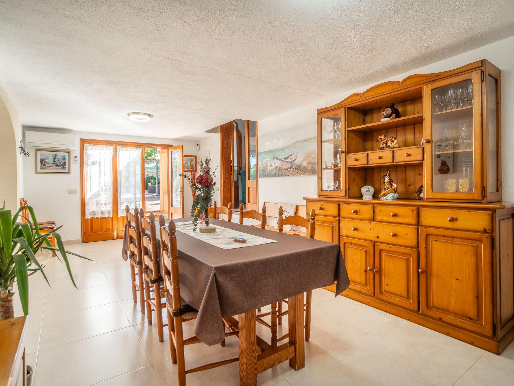 "Ca Na Guerrera", 6-room villa 180 m2 on 2 levels. Rustic and cosy furnishings: living room with open-hearth fireplace, satellite TV, flat screen, radio and DVD. Exit to the patio, to the swimming pool. 1 double bedroom with 2 beds (90 cm, length 190 cm), air conditioning and forced-air heating. 1 double bedroom with 1 french bed (150 cm, length 200 cm), air conditioning and forced-air heating. 1 room with 1 pull-out bed, air conditioning and forced-air heating. Kitchen (oven, dishwasher, 4 ceramic glass hob hotplates, microwave, freezer, electric coffee machine) with dining table. Exit to the patio, to the swimming pool. Shower/bidet/WC. Upper floor: 1 large double bedroom with 1 french bed (150 cm, length 200 cm), shower/WC, air conditioning and forced-air heating. Exit to the balcony. Natural stone floors. Comfortable furnishings in the country house style. Terrace, patio, lawn. Terrace furniture, balcony furniture, barbecue, deck chairs (8), covered balcony, sitting area. View of the mountains. Facilities: washing machine, safe, iron, children's high chair, baby cot for up to 2 year olds, hair dryer. Internet (WiFi, free). At the house. Suitable for families. ETV/553 // Reg. Nr.: ESFCTU000007043000034869000000000000000000000ETV/5537