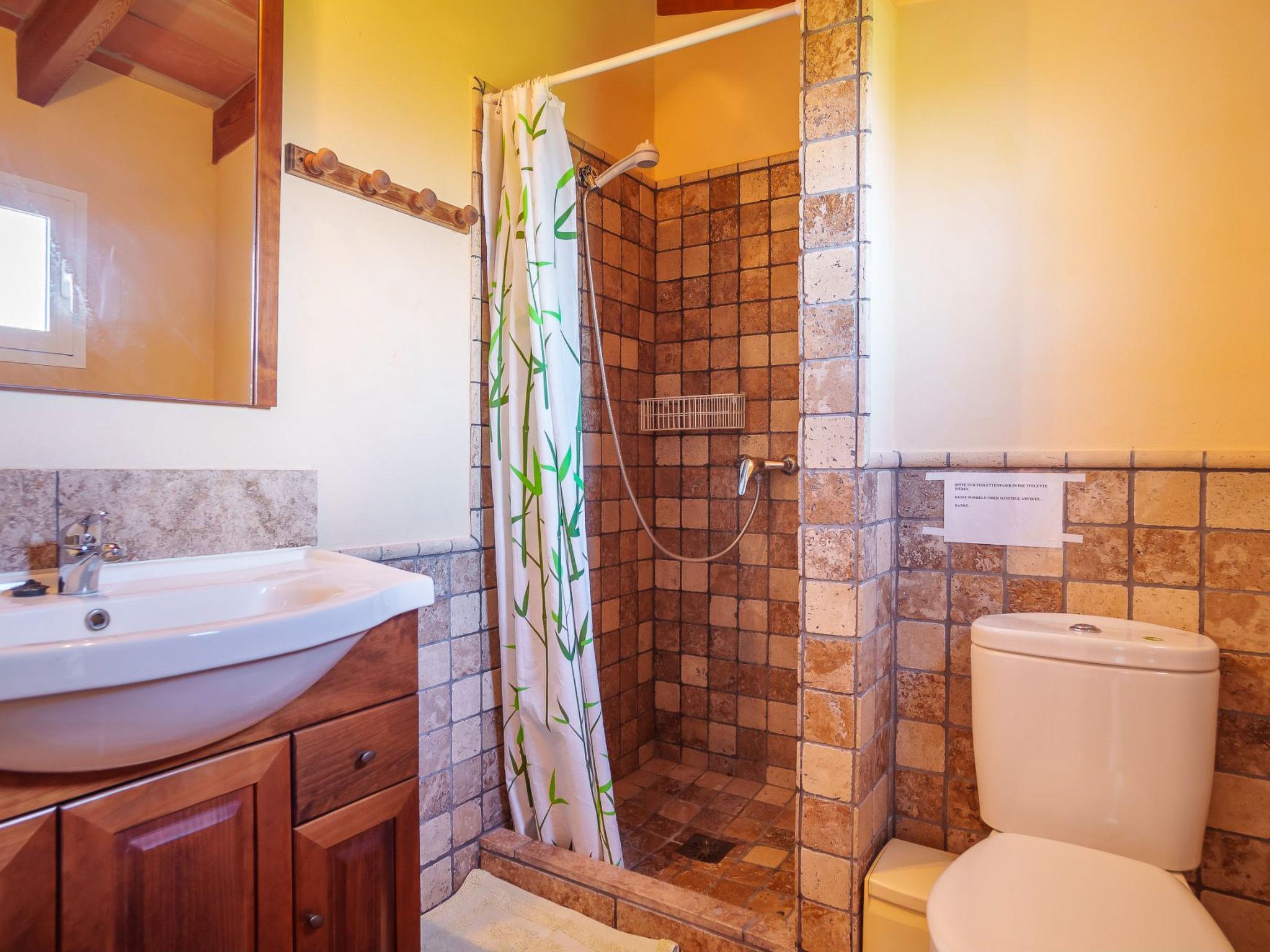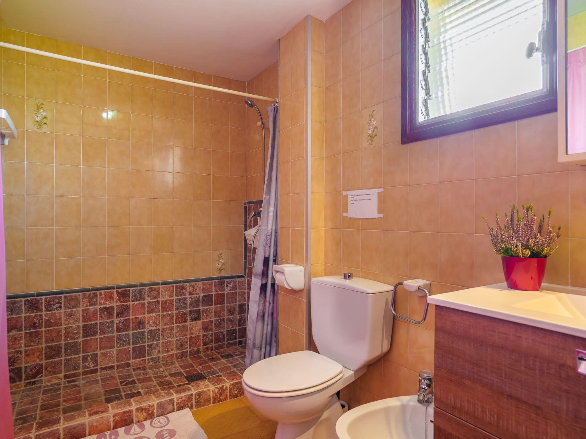 "La Truyola Pool Finca", 6-room house 260 m2 on 2 levels. Object suitable for 8 adults. Spacious, comfortable and cosy furnishings: living room with panoramic window with digital TV, international TV channels, electric heater and fan. Exit to the patio. 2 double bedrooms with panoramic window, each room with 2 beds (90 cm, length 190 cm), electric heater and fan. Dining room with panoramic window with electric heater and fan. 1 double bedroom with panoramic window with 1 french bed (160 cm, length 190 cm), electric heater and fan. Kitchen (4 gas rings, toaster, kettle, microwave, electric coffee machine) with dining table, electric heater and fan. Exit to the terrace. 2 showers/WC. Upper floor: 1 double bedroom with panoramic window with 1 french bed (160 cm, length 190 cm), shower/WC, electric heater and fan. Panoramic view of the mountains. Facilities: washing machine, safe, iron, children's high chair, baby cot for up to 2 year olds, hair dryer. Internet (WiFi, free). Please note: suitable for families. Fire extinguisher. The pool mentioned in the description is for private use. ETV1458 // Reg. Nr.: ESFCTU000007043000196062000000000000000000000ETV14585