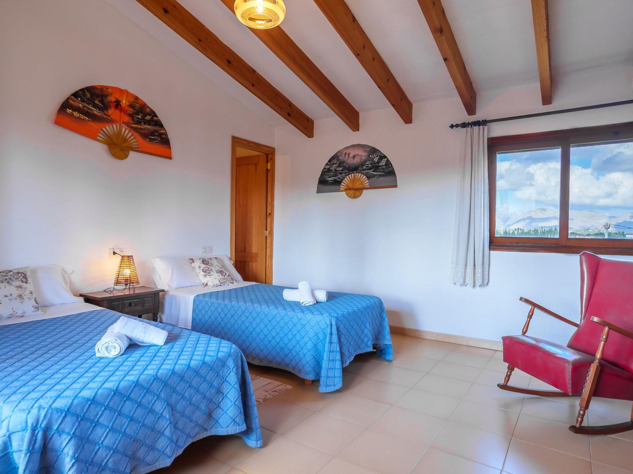 Alcudia 6 km from Pollensa: Large, comfortable single-family house "La Truyola Pool Finca", 2 storeys, surrounded by trees and fields. Outside the resort, 6 km from the centre of Alcúdia, in a quiet position, 1 km from the edge of the forest, 6 km from the sea, 6 km from the beach, in the countryside. Private: property 1'600 m2, garden with lawn and flowers, swimming pool angular (4 x 9 m, depth 1 - depth 2 cm, seasonal availability: 01.Apr. - 31.Oct.). Outdoor shower, patio, barbecue, pool maintenance by the owner/gardener. Parking at the house on the premises. Shop 5 km, grocery 5 km, supermarket 5 km, restaurant 6 km, bar 5 km, bakery 5 km, bicycle rental 6 km, bus stop "Alcudia" 6 km, railway station "Sa Pobla" 8 km, ferry "Puerto de Alcúdia" 8 km, sandy beach "Playa de Alcúdia" 5 km, shingle beach "Alcanada" 8 km, diving center 10 km. Sports harbour 8 km, marina 8 km, golf course (18 hole) 5 km, surf school 6 km, sailing school 6 km, tennis 8 km, riding stable 7 km, sports centre 6 km, walking paths from the house 5 km, cycle lane 1 km. Nearby attractions: Playa de Formentor 18 km, Faro de Formentor 27 km, Monasterio de Lluc 32 km, Cuevas de Campanet 10 km. Hiking paths: La Victoria 14 km, Coll Baix 12 km. Please note: car recommended. Suitable for families, suitable for seniors. The owner does not accept any groups. The owner does not accept any youth groups. Airfield 60 km from the property.
