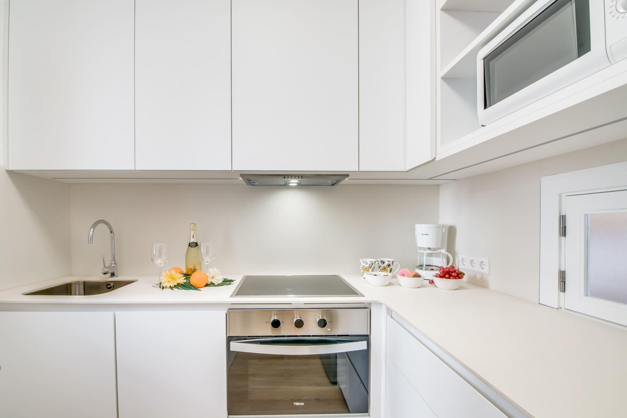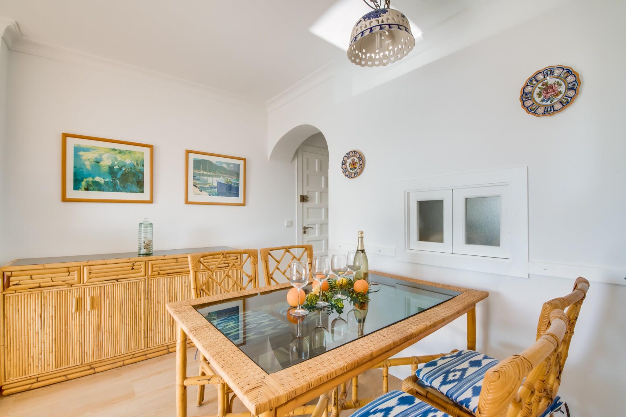 På 1. etage: (åbent køkken(elkedel, brødrister, kaffemaskine, ovn, mikrobølgeovn, opvaskemaskine , køle-fryseskab, Saftpresser, elektriske kogeplader, , ), stue / spisestue(Fjernsyn(parabol), spisebord, sofahjørne, Alarm), soveværelse(dobbeltseng), soveværelse(enkeltseng, enkeltseng), badeværelse(bruser), toilet, Internetadgang) vaskemaskine, balkon, klimaanlæg, swimmingpool(deles med andre gæster), strygejern, luft til luft-varmepumpe, føntørrer