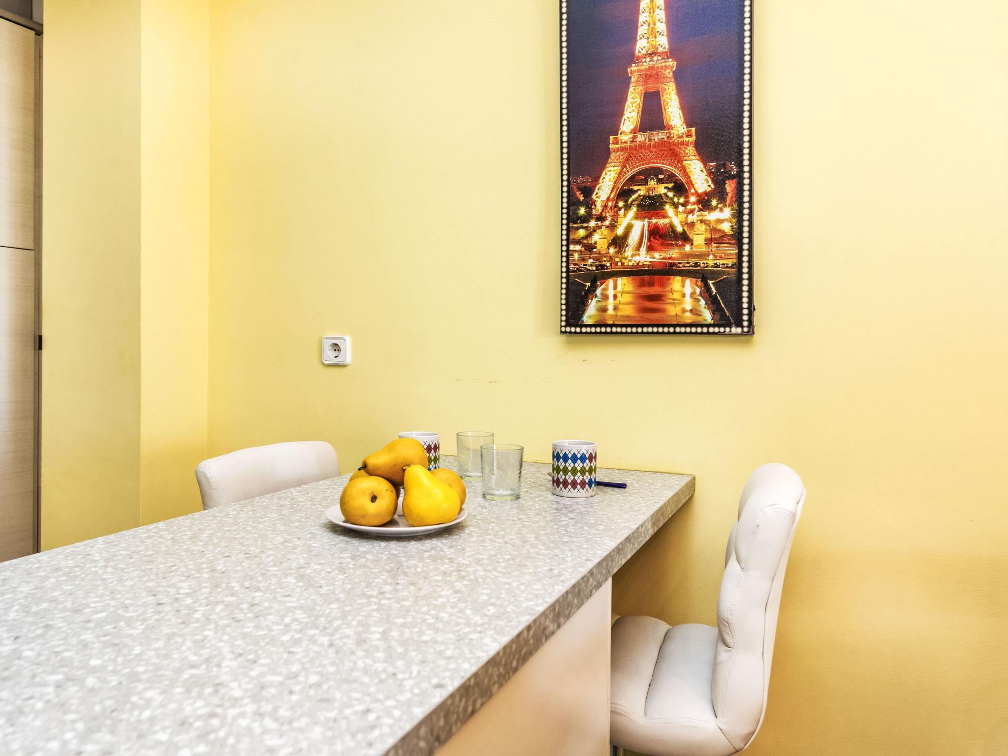 "Salsadellans", 3-room apartment 63 m2 on 1st floor. Renovated in 2023, practical and comfortable furnishings: living/dining room with dining table, digital TV and air conditioning. Exit to the terrace. 1 room with 1 french bed (1 x 135 cm, length 190 cm), air conditioning. 1 room with 2 beds (90 cm, length 190 cm), air conditioning. Open kitchen (oven, 4 ceramic glass hob hotplates, toaster, kettle, microwave, electric coffee machine) with bar, boiler (45 litres). 2 showers/WC. Heating not available in all rooms. Terrace. Terrace furniture. Side view of the sea. Facilities: washing machine, iron, hair dryer. Internet (WiFi, free). Parking space n 13. Please note: apartment street side. Non-smokers only. TV only ES. VT-42655CS // Reg. Nr.: ESFCNT00001200600076696500000000000000000000000000007