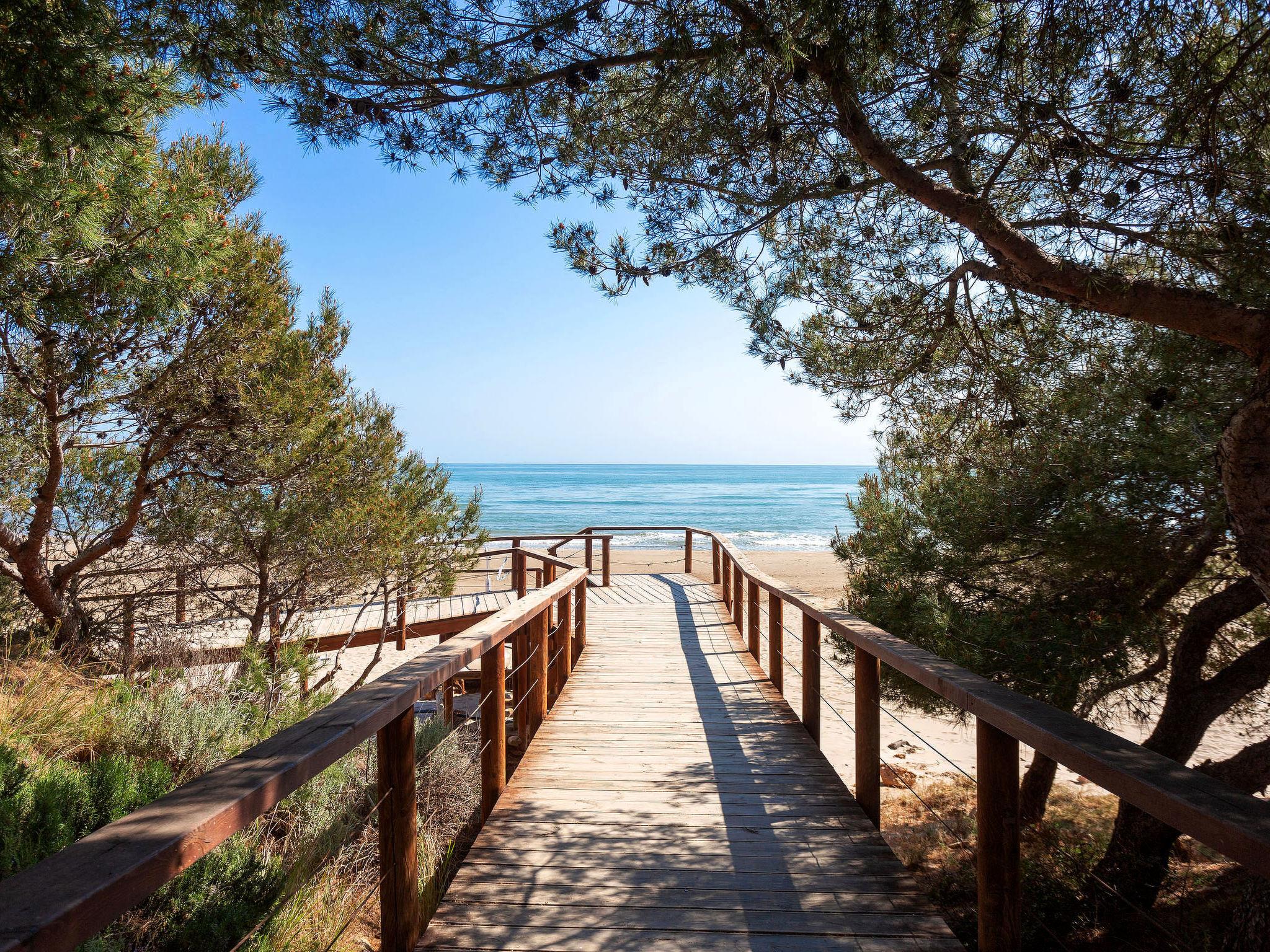 El Palmar Playa Romana: Terraced house "El Palmar Playa Romana". In the resort, 800 m from the centre, 150 m from the sea. Private: garden 21 m2. Outdoor shower, patio (10 m2), garden furniture. Stepped path (11 steps) to the house. Single garage. Grocery 400 m, restaurant 100 m, bus stop "Camino Latall - front Habitat" 150 m, railway station "Alcalá de Xivert" 11 km, sandy beach "Playa Romana" 80 m. Nearby attractions: Castillo de Peñiscola 30 km, Ciutat de les Arts i les Ciències 120 km, Morella 75 km, Delta del Ebro 70 km, Alcalá de Xivert-Castillo y campanario 11 km, Coves de Sant Josep 80 km. Hiking paths: Parque Natural Sierra de Irta 3 km.
