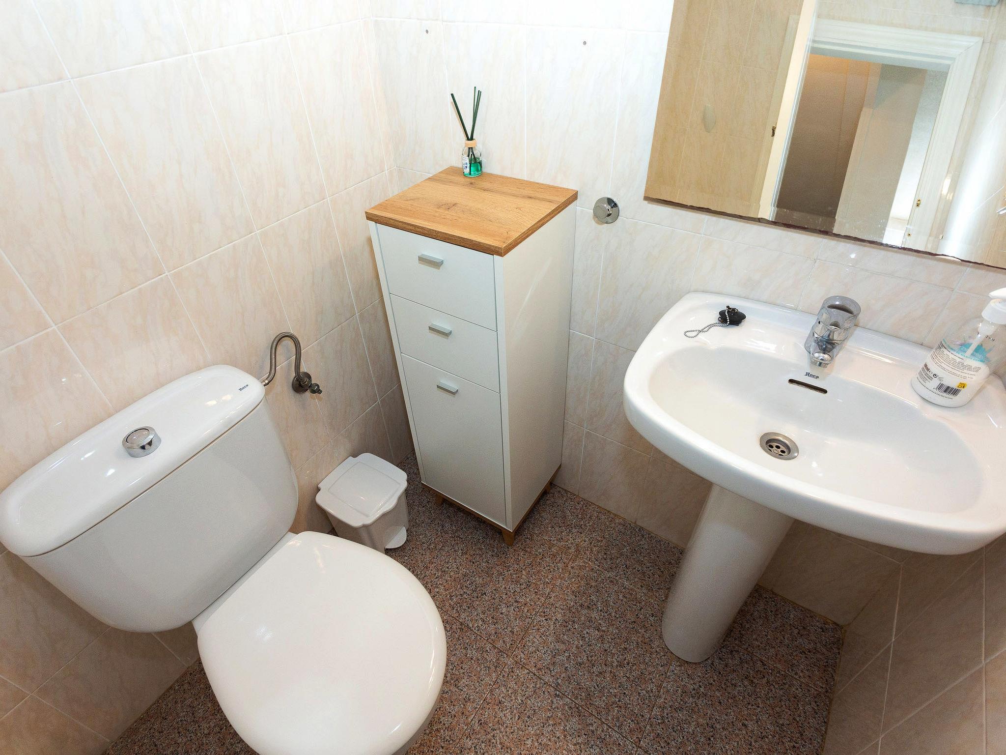 4-room house 113 m2 on 3 levels. Bright, comfortable furnishings: on the lower ground floor: 1 room with 2 beds (90 cm, length 190 cm), fan. Upper floor: living/dining room with open-hearth fireplace, digital TV, flat screen, radio, CD-player, hi-fi system and fan. Exit to the terrace. Kitchen (oven, dishwasher, 4 ceramic glass hob hotplates, toaster, freezer, electric coffee machine). Sep. WC. 2nd upper floor: 1 room with 1 french bed (135 cm, length 190 cm), fan. Exit to the balcony. 1 room with 2 beds (90 cm, length 190 cm), fan. Shower/bidet/WC. Balcony 4 m2, terrace 7 m2, roofed. Terrace furniture. Partial view of the sea. Facilities: washing machine, iron, baby cot for up to 2 year olds, hair dryer. Internet (WiFi, free). Garage on the property. Please note: suitable for families. Maximum 1 pet/ dog allowed. Fire extinguisher. VT-28296CS // Reg. Nr.: ESFCTU000012006000202036000000000000000000VT-28296CS6