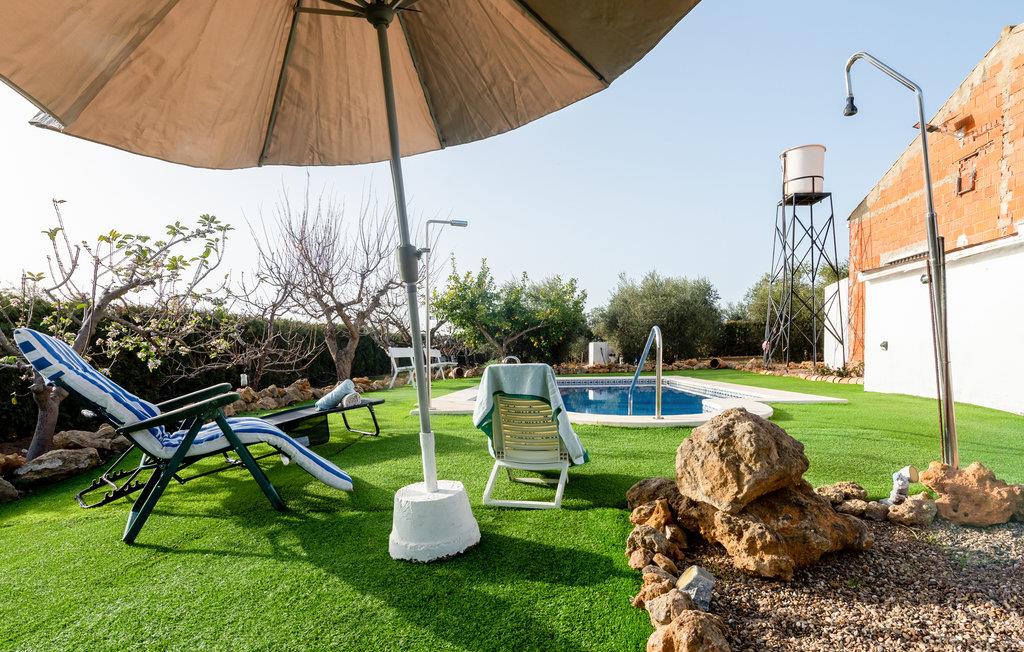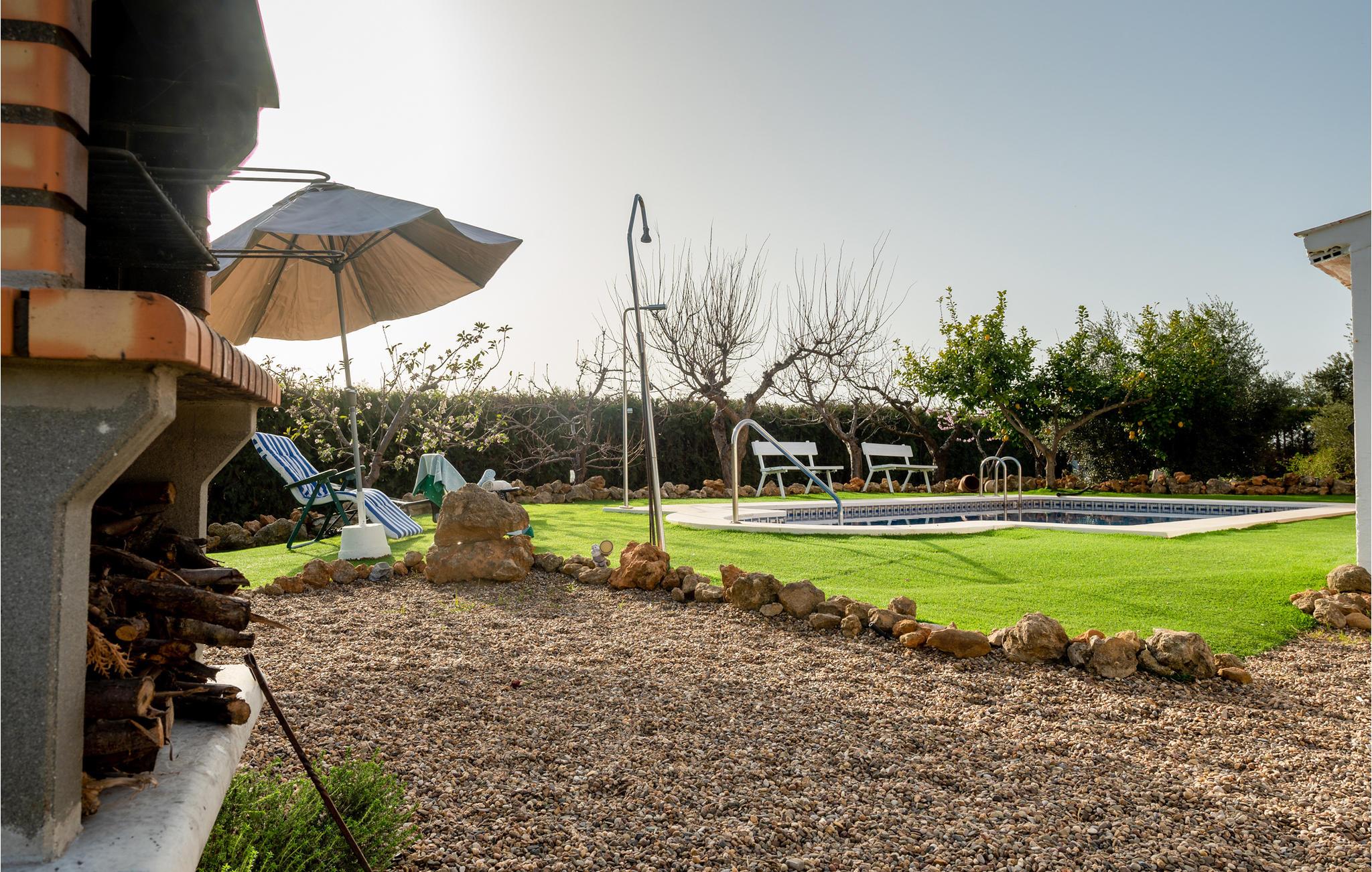 Du har også adgang til en stor grund med en solterrasse og privat pool samt komfortable liggestole, så du kan slappe af i både sol og skygge. På den udendørs veranda kan du sammen med selskabet nyde morgenmaden og den første kop kaffe og i fred og ro.