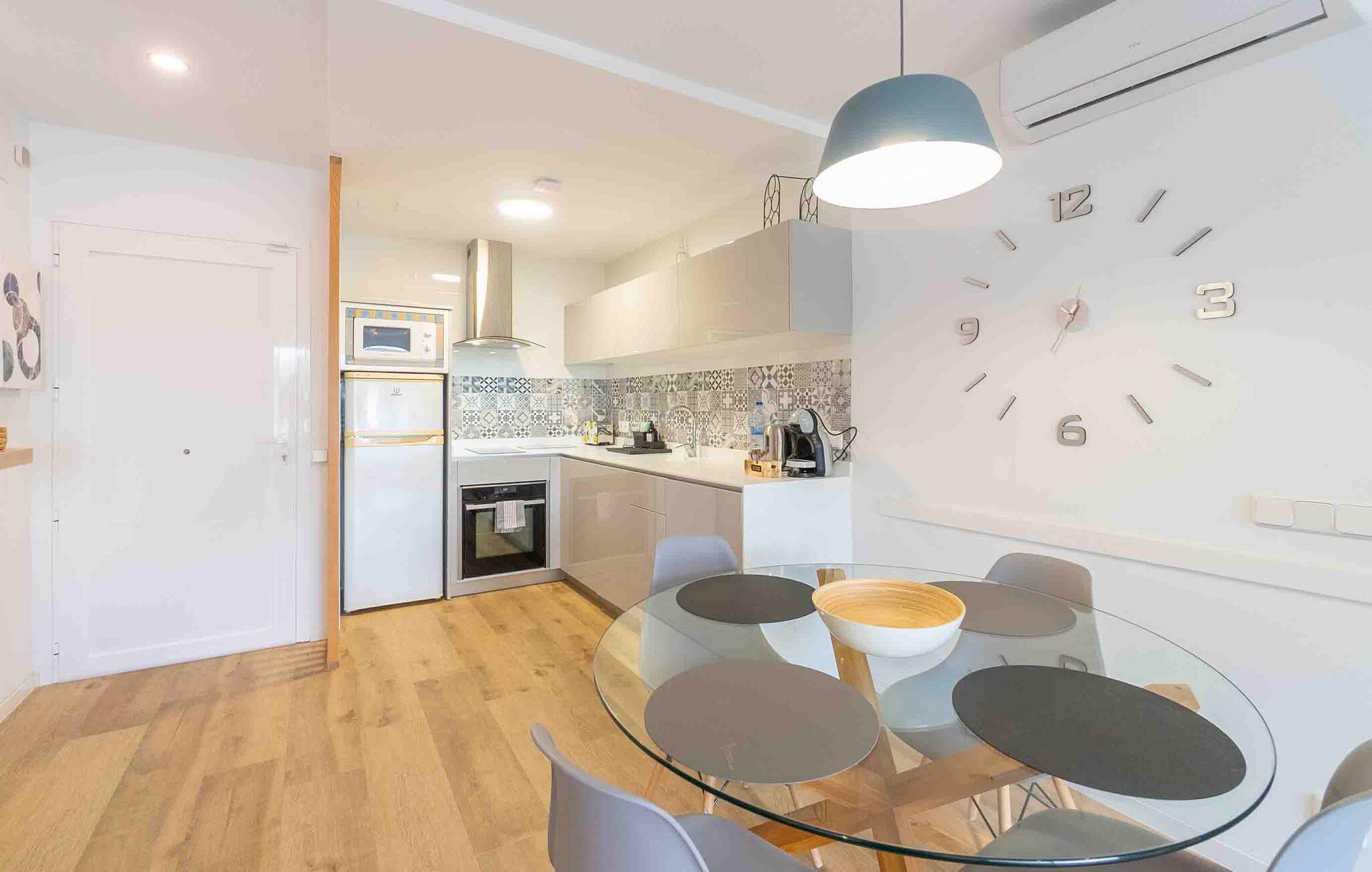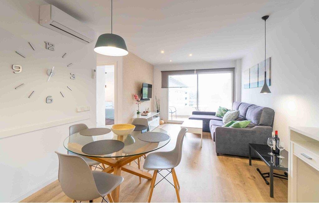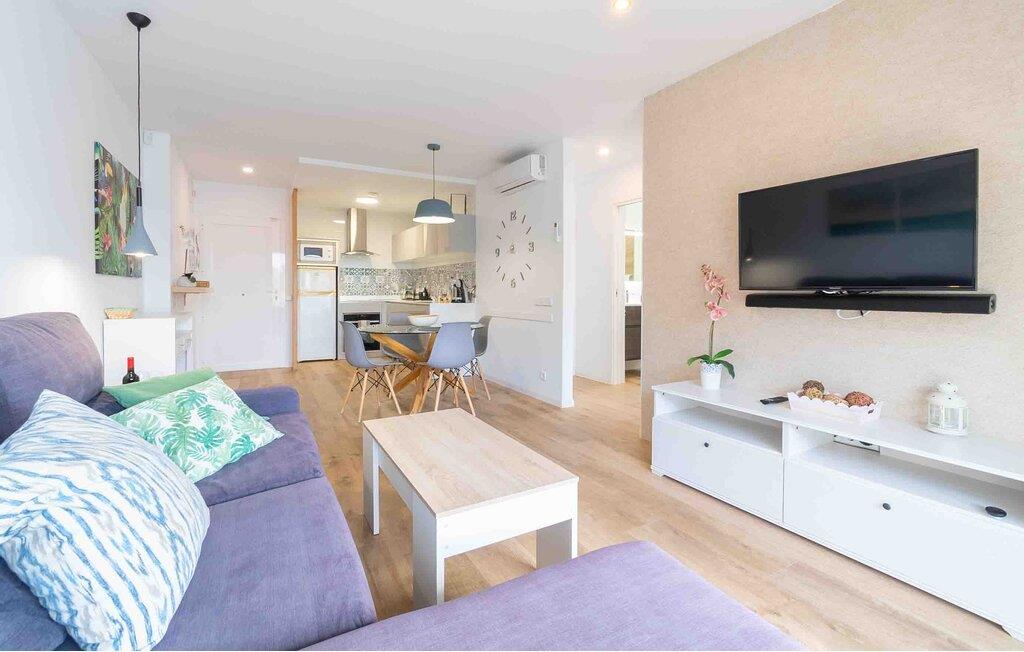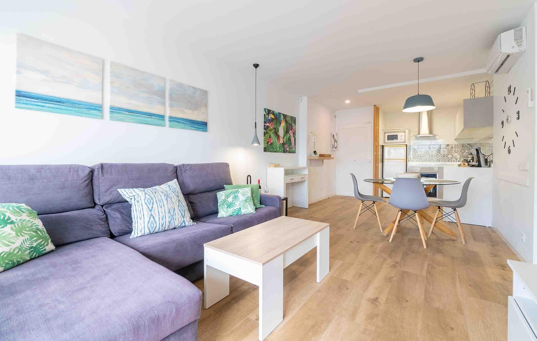 Kun en kort gåtur fra den familievenlige sandstrand i Alcúdia-bugten byder denne lyse og smagfulde ferielejlighed jer velkommen. Tilbered jeres yndlingsretter i det fuldt udstyrede, moderne køkken, og nyd dem ved det stilfulde spisebord. Find jer godt til rette i sofaen om aftenen, se en film, eller afhold en sjov spilleaften.