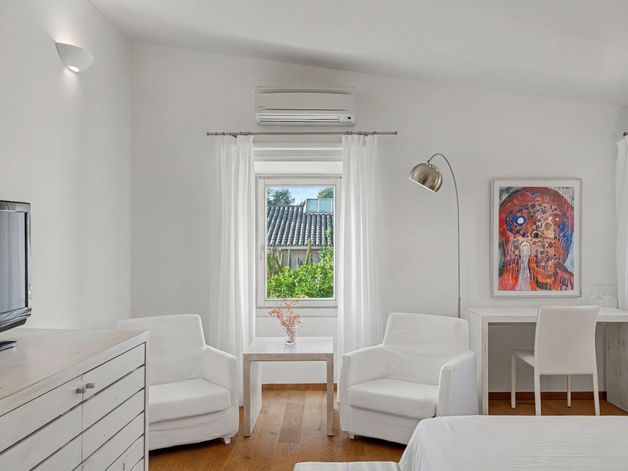 Die Villa ist mit zentraler Heizung und Klimaanlage ausgestattet, sodass Sie es jederzeit angenehm warm oder erfrischend kühl haben. Die hochwertige, fast schon restaurantähnliche Küche ist komplett ausgestattet mit allem, was Sie für einen perfekten Urlaub benötigen: Ofen, Herd, Kühlschrank, Mikrowelle, Geschirr, Toaster, Wasserkocher usw. Die Küche und die Terrassen werden morgens täglich für zwei Stunden vom Eigentümer gereinigt.