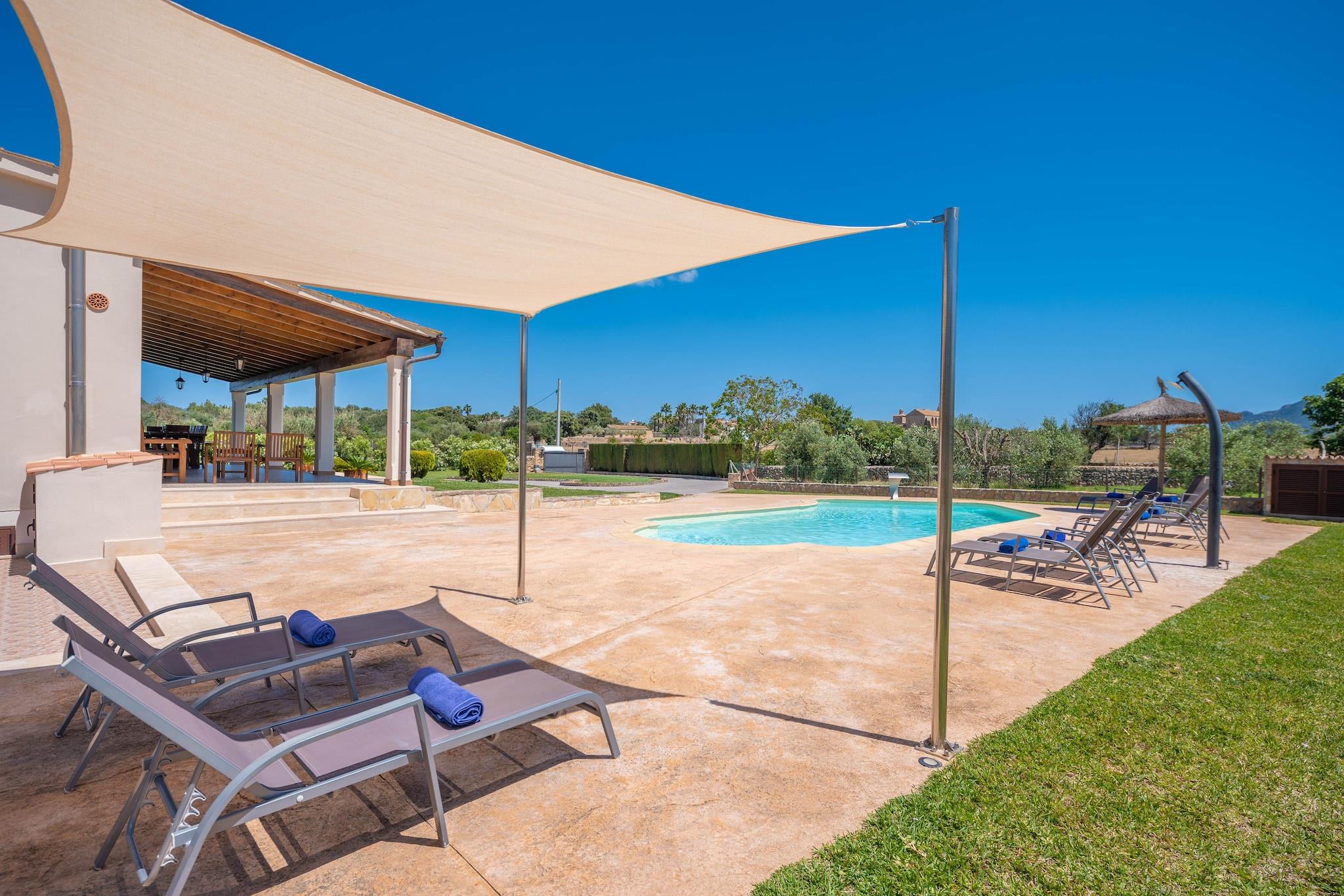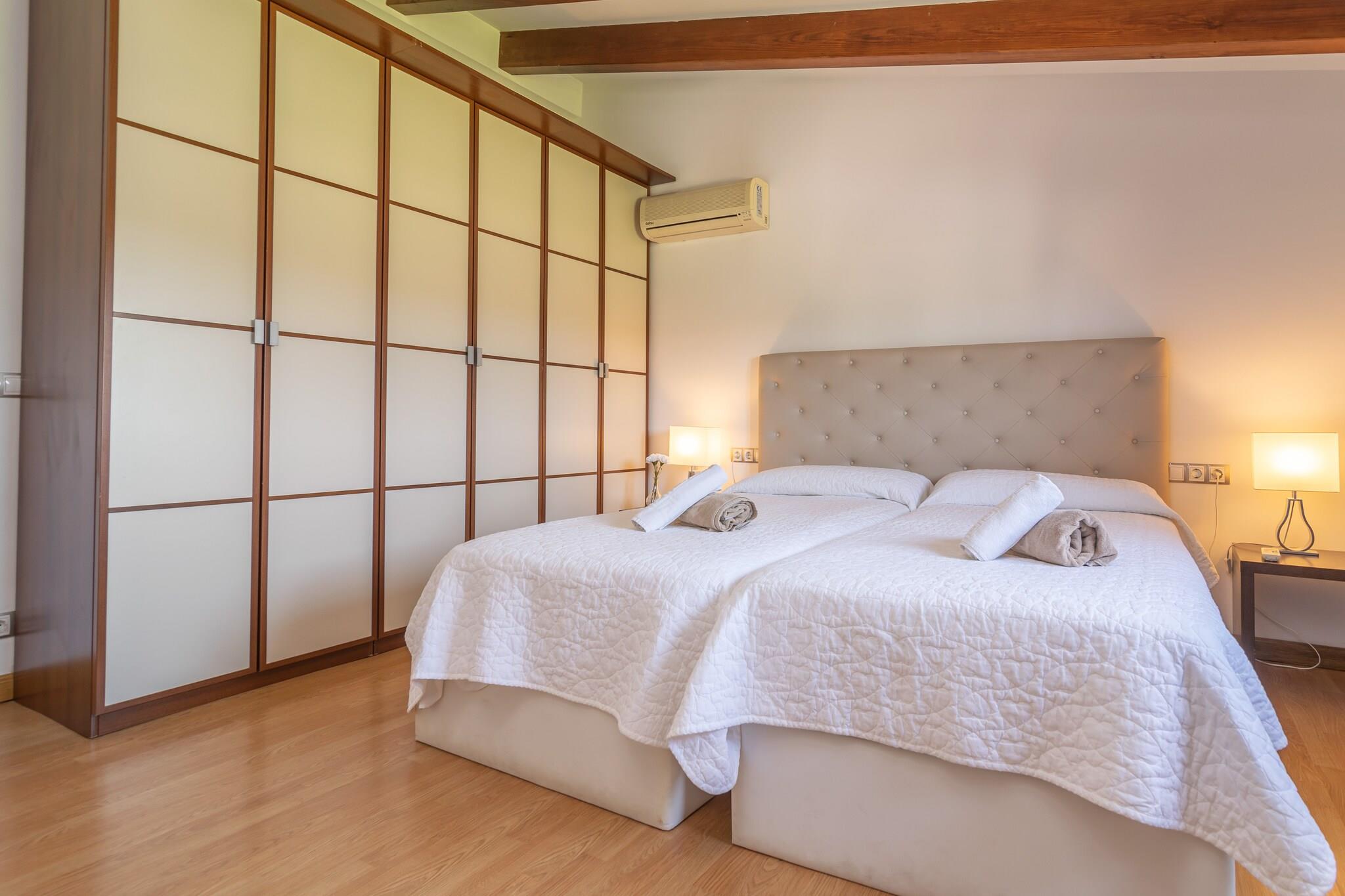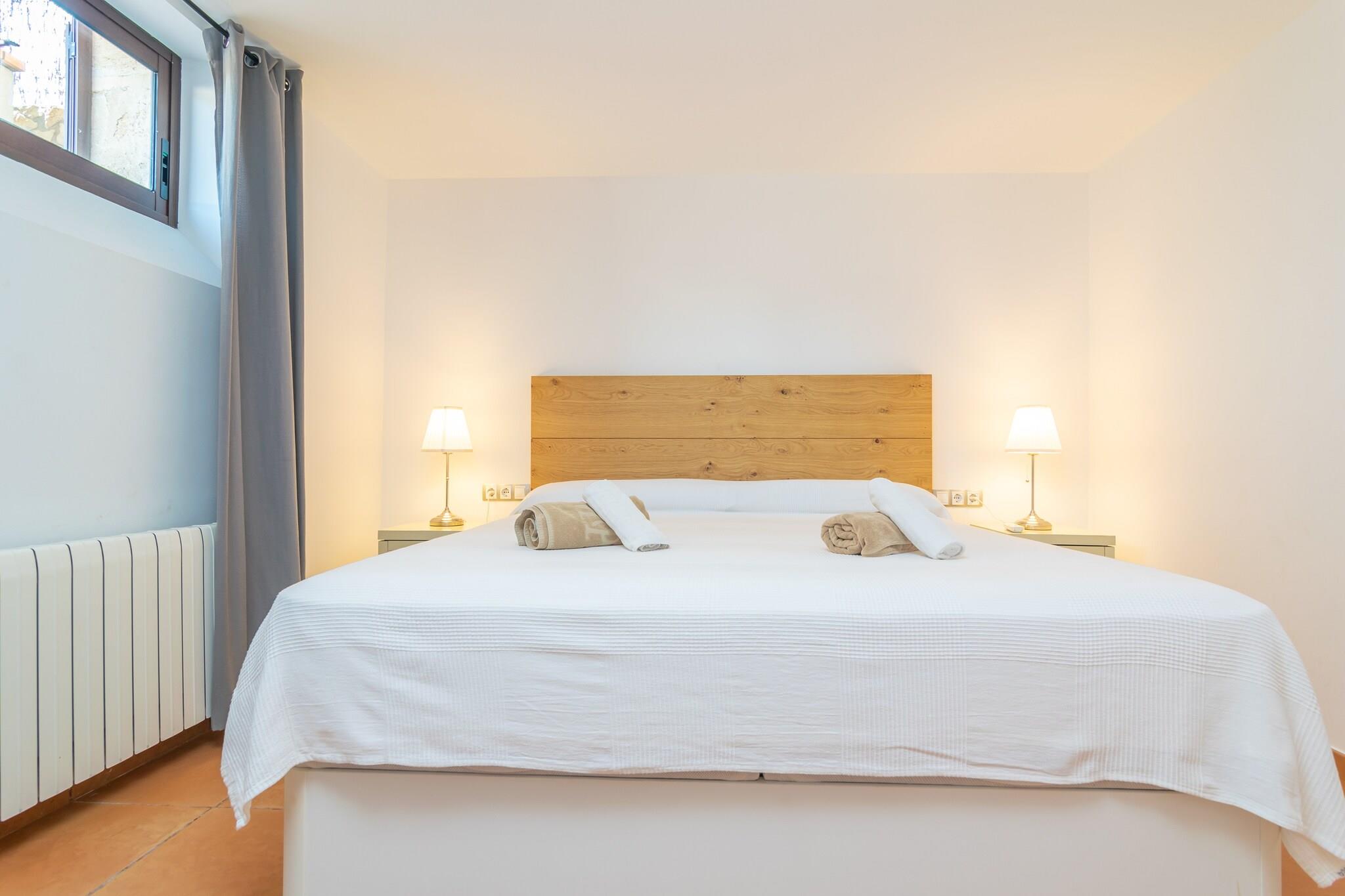 Denne fantastiske villa byder på betagende ydre med frodige grønne haver, landskab og udsigt over bjergene omkring ejendommen. Den private saltvandspool (9,4 x 4,2 m, dybde 1-1,7 m) er perfekt til en forfriskende dukkert. Omkring poolen er der 8 liggestole, et udendørs morgenmadsområde og en veranda med en grill, ideel til at nyde måltider under åben himmel. Hovedverandaen har en afslappende udendørs sofa til at slappe af eller spise om aftenen. For børn er der en legeplads i haven. Villaen er fordelt på to niveauer: stueetagen og -1 sal. I stueetagen finder du en rummelig stue med TV-SAT, åben til spisekøkkenet udstyret med gaskomfur. Hver etage har to soveværelser: et med to enkeltsenge og det andet med en dobbeltseng. Alle soveværelser har garderobeskabe, og der er en barneseng og høj stol til rådighed. Der er to badeværelser: et med bruser i stueetagen og et andet med badekar på -1 salen maskine, strygejern og strygebræt. Beliggende i udkanten af Alcúdia, kun 1,1 km fra byens centrum, finder du barer, restauranter og butikker i nærheden. Puerto de Alcúdia-stranden ligger kun 2,3 km væk, og Alcanada Golfbane ligger 5,5 km fra villaen. Turistlicens: VT/1960 Som reaktion på Coronavirus (COVID-19) er yderligere sikkerheds- og sanitetsforanstaltninger i kraft på denne ejendom.