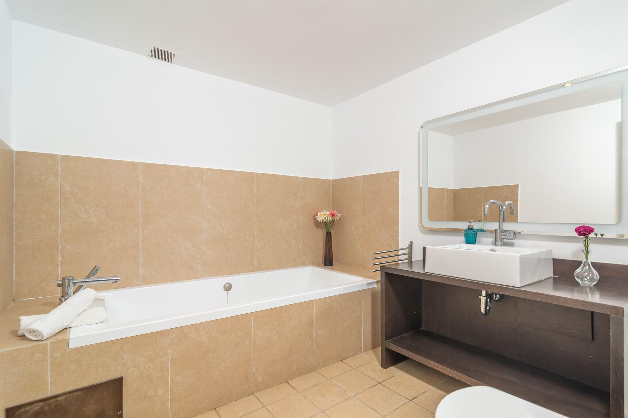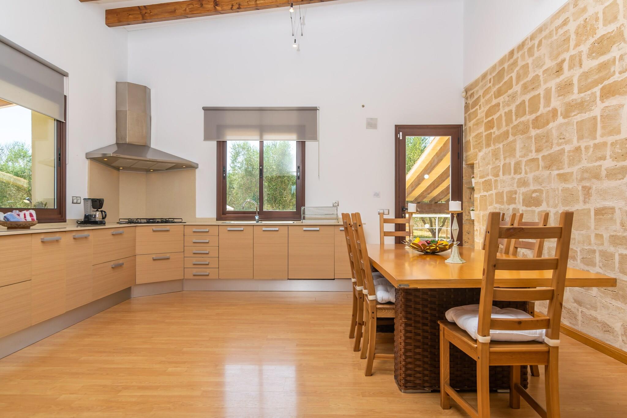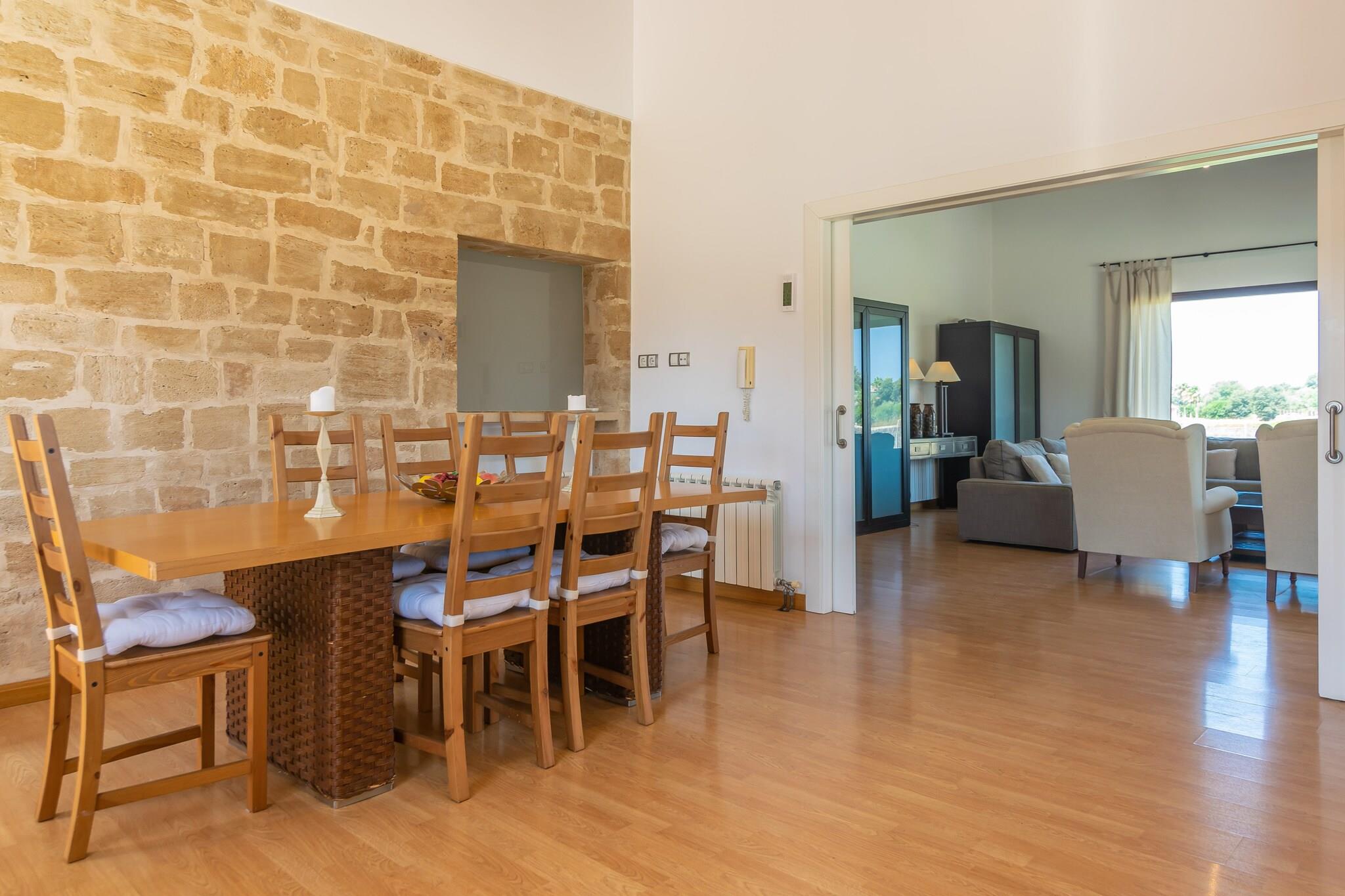 Denne fantastiske villa byder på betagende ydre med frodige grønne haver, landskab og udsigt over bjergene omkring ejendommen. Den private saltvandspool (9,4 x 4,2 m, dybde 1-1,7 m) er perfekt til en forfriskende dukkert. Omkring poolen er der 8 liggestole, et udendørs morgenmadsområde og en veranda med en grill, ideel til at nyde måltider under åben himmel. Hovedverandaen har en afslappende udendørs sofa til at slappe af eller spise om aftenen. For børn er der en legeplads i haven. Villaen er fordelt på to niveauer: stueetagen og -1 sal. I stueetagen finder du en rummelig stue med TV-SAT, åben til spisekøkkenet udstyret med gaskomfur. Hver etage har to soveværelser: et med to enkeltsenge og det andet med en dobbeltseng. Alle soveværelser har garderobeskabe, og der er en barneseng og høj stol til rådighed. Der er to badeværelser: et med bruser i stueetagen og et andet med badekar på -1 salen maskine, strygejern og strygebræt. Beliggende i udkanten af Alcúdia, kun 1,1 km fra byens centrum, finder du barer, restauranter og butikker i nærheden. Puerto de Alcúdia-stranden ligger kun 2,3 km væk, og Alcanada Golfbane ligger 5,5 km fra villaen. Turistlicens: VT/1960 Som reaktion på Coronavirus (COVID-19) er yderligere sikkerheds- og sanitetsforanstaltninger i kraft på denne ejendom.