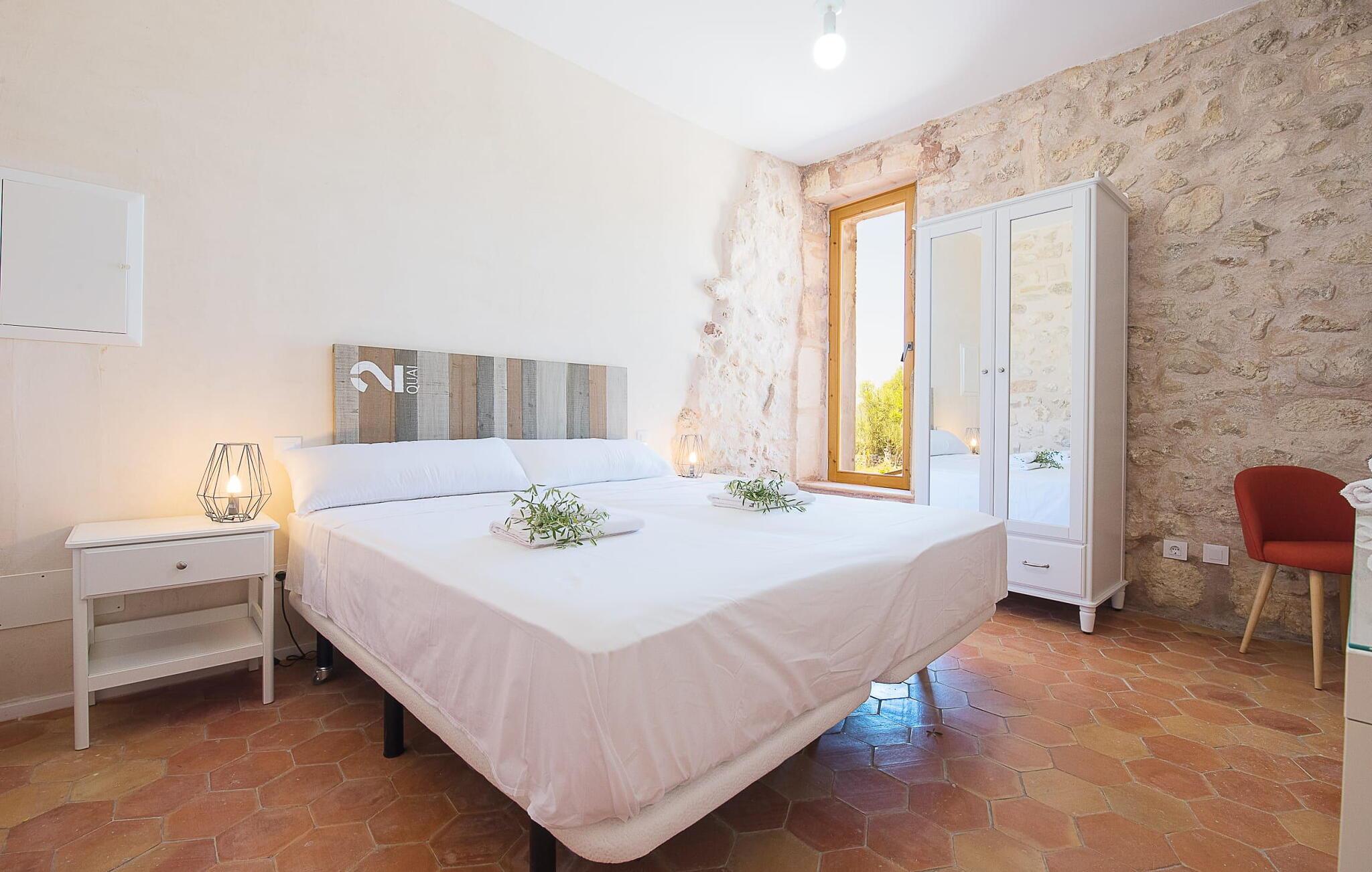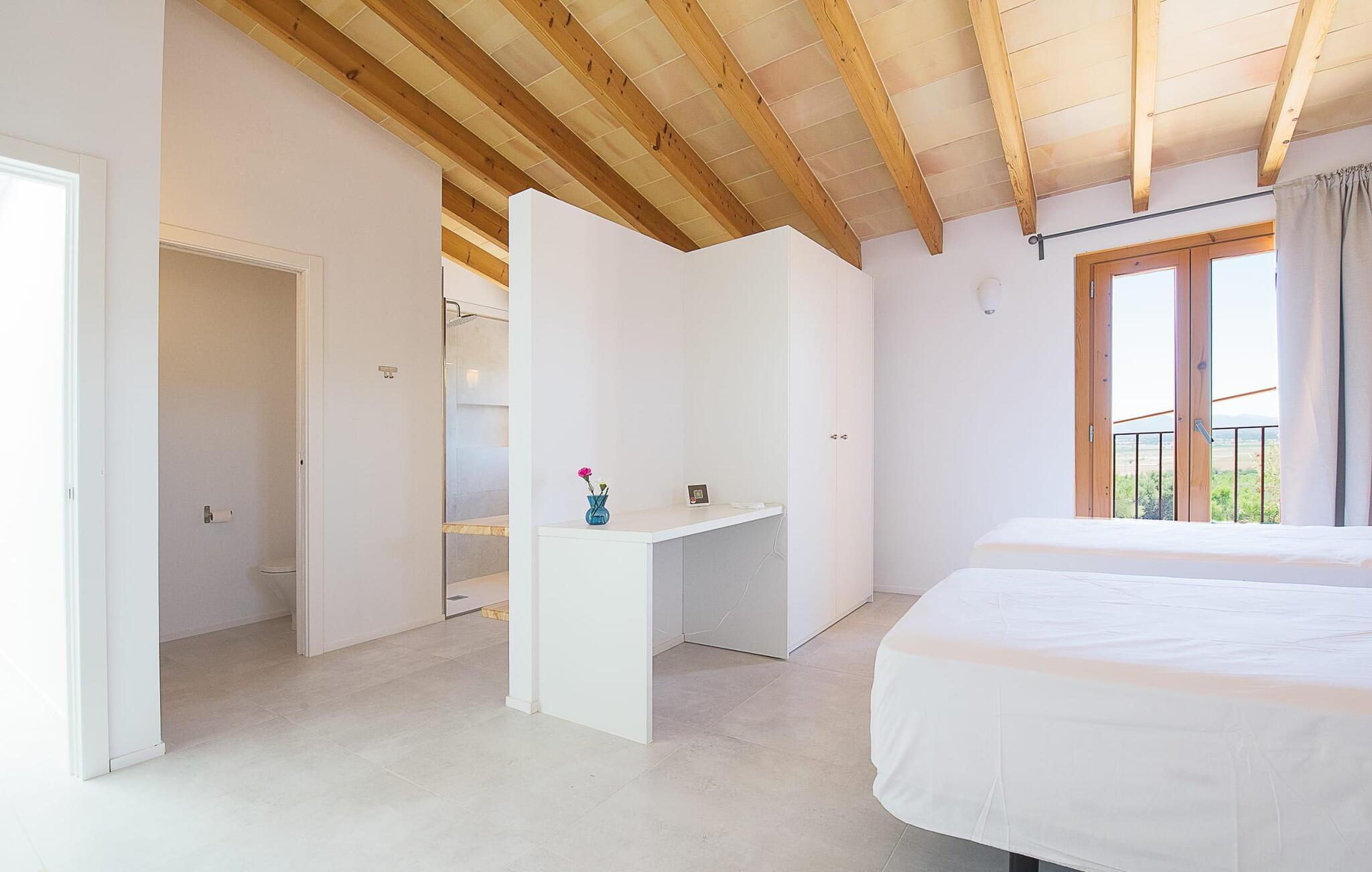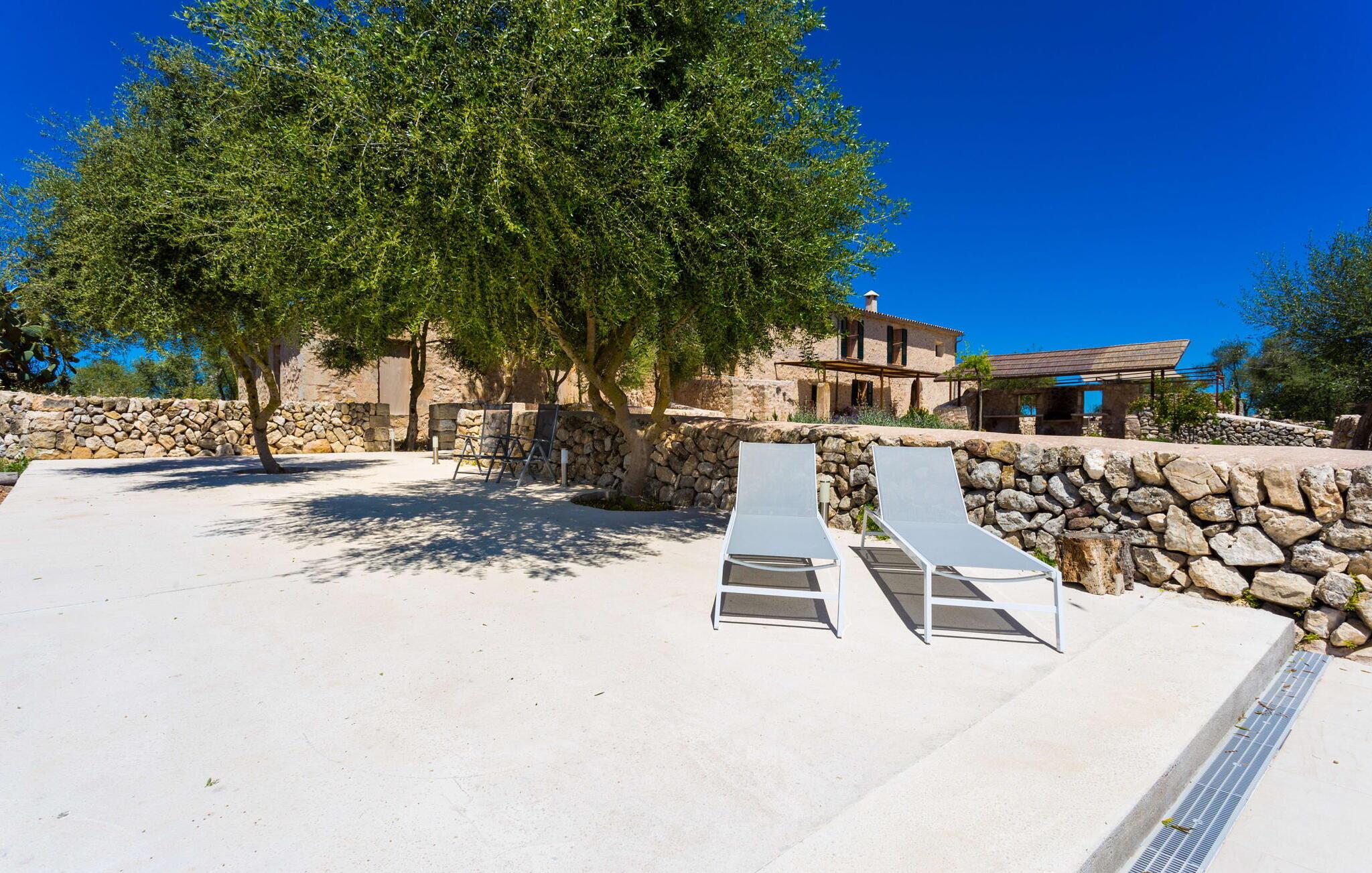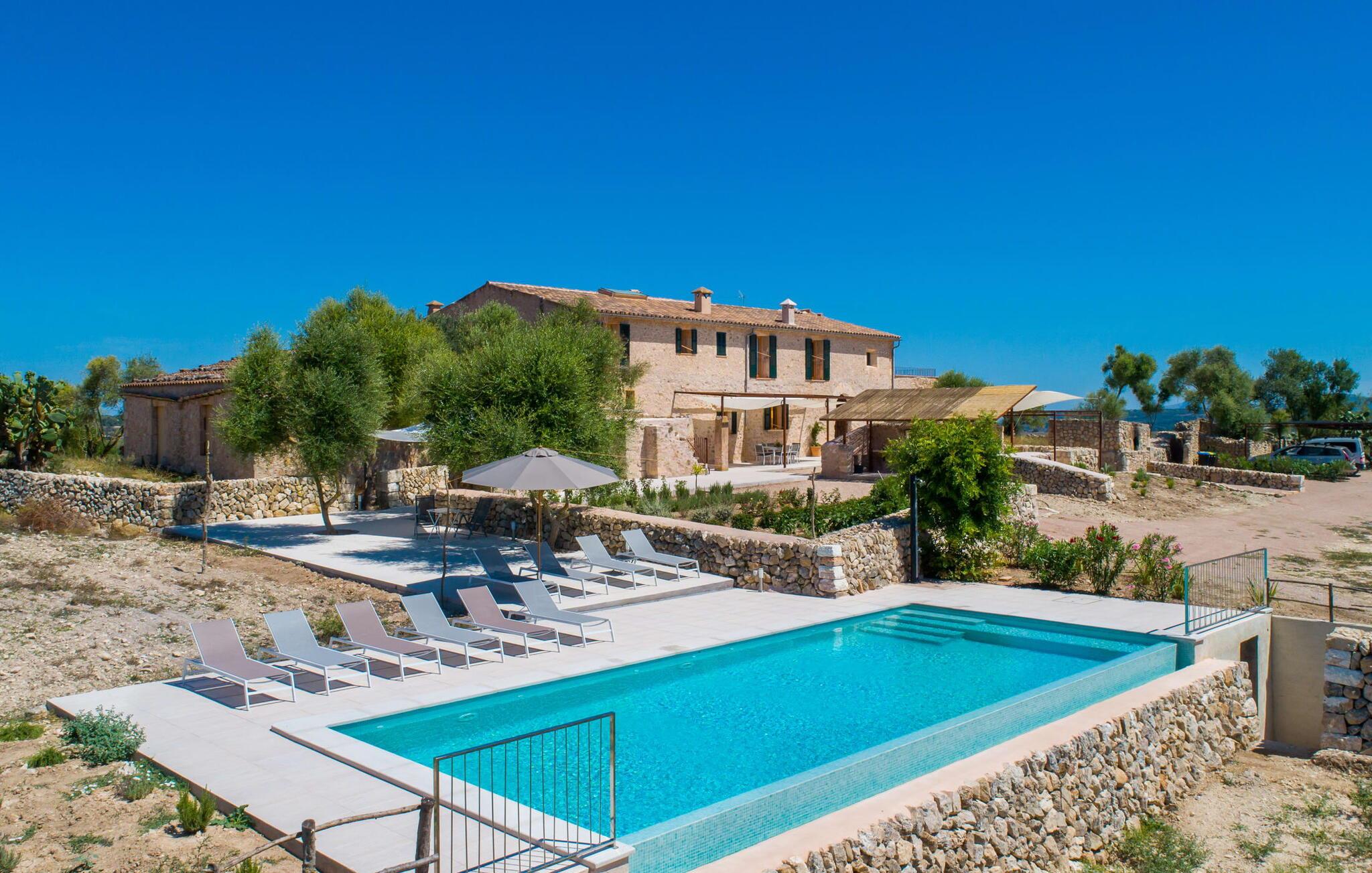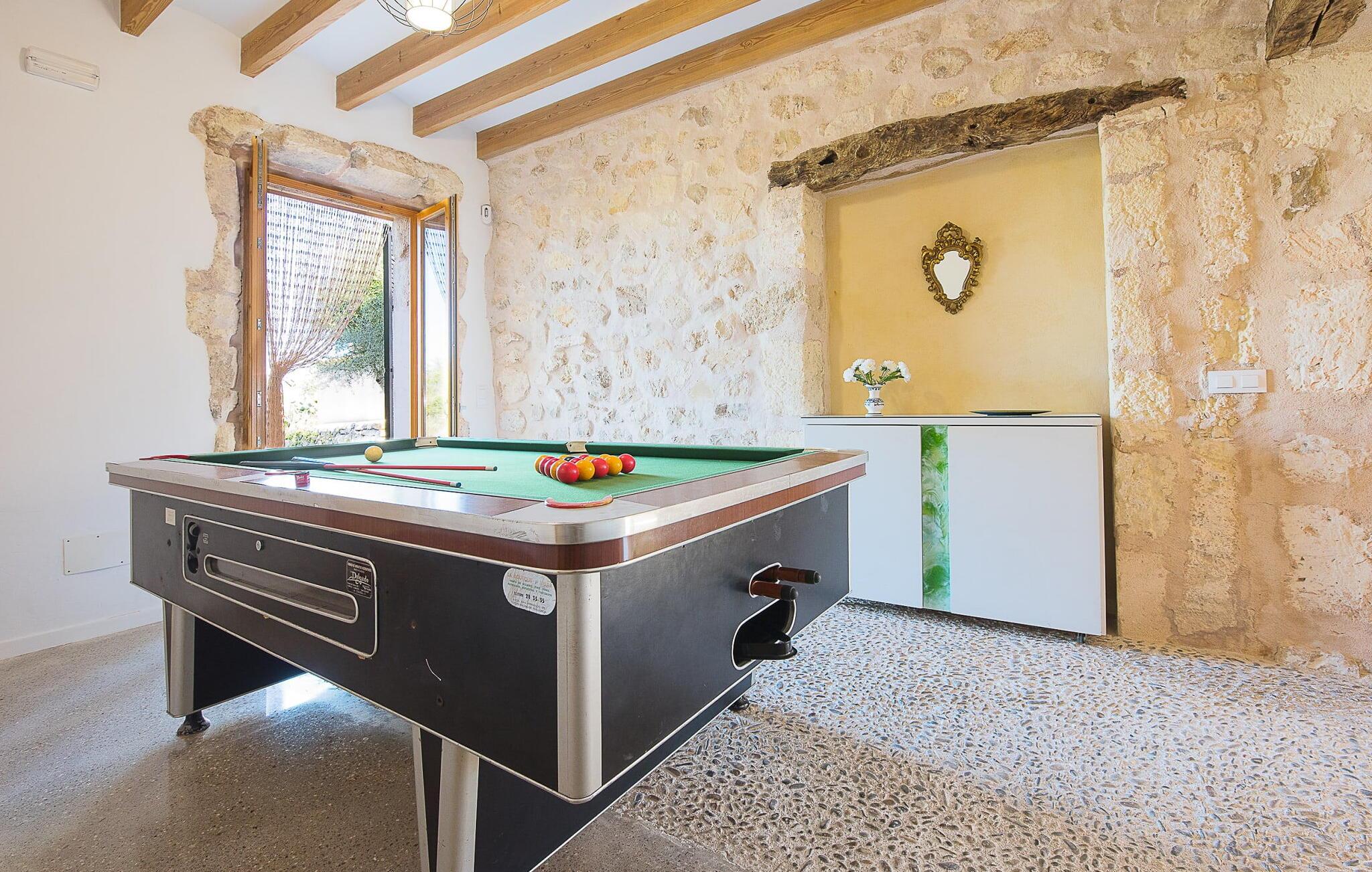 Beliggende på en blid bakke tilbyder feriefincaen "Alcudiarrom" en betagende panoramaudsigt over det landlige hjerte af øen. Det sydvendte udendørsområde byder på generøs plads til grill, spisning og solbadning. En iøjnefaldende funktion er den klorfrie infinity-pool, som inviterer jer til at slappe af og nyde den smukke natur. Solterrassen inviterer jer til at slappe af i de rolige omgivelser. Et rustikt udekøkken og grillplads supplerer en skyggefuld spiseplads med en fantastisk udsigt, mens en anden hyggelig spiseplads er bekvemt placeret ved siden af huset. Til siden er en charmerende, kølig terrasse med bordtennisbord og en halvåben terrasse med ekstra siddepladser. Stien til fincaen er fuldstændig asfalteret, med skyggefulde parkeringspladser og et opbevaringsrum til cykler. Indenfor finder I en dejlig blanding af rustik charme og moderne komfort. Den rummelige stueetage har en stor stue, en rustik spisestue, et fuldt udstyret køkken, et soveværelse med dobbeltseng med en-suite badeværelse, et billardrum og et gæstetoilet. Fem dobbeltværelser venter på jer på øverste etage, hver med sit eget moderne badeværelse en suite. Alle soveområder er airconditionerede og opvarmede for jeres komfort. Med fremragende mobiltelefonmodtagelse og stabilt WiFi overalt, kan I nemt arbejde eksternt, når det er nødvendigt. Den moderne villa "Cases d'Alcúdiarrom" ligger mellem Vilafranca de Bonany og Felanitx, midt i et smukt og ubebygget landskab. Det ugentlige marked ligger kun 15 minutter væk, og der er også andre indkøbsmuligheder i den lille, traditionelle landsby. En perlehvid strand med krystalklart vand kan nås via Felanitx på få minutter.