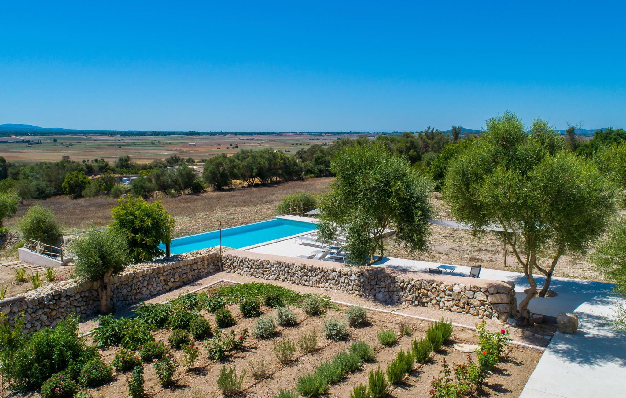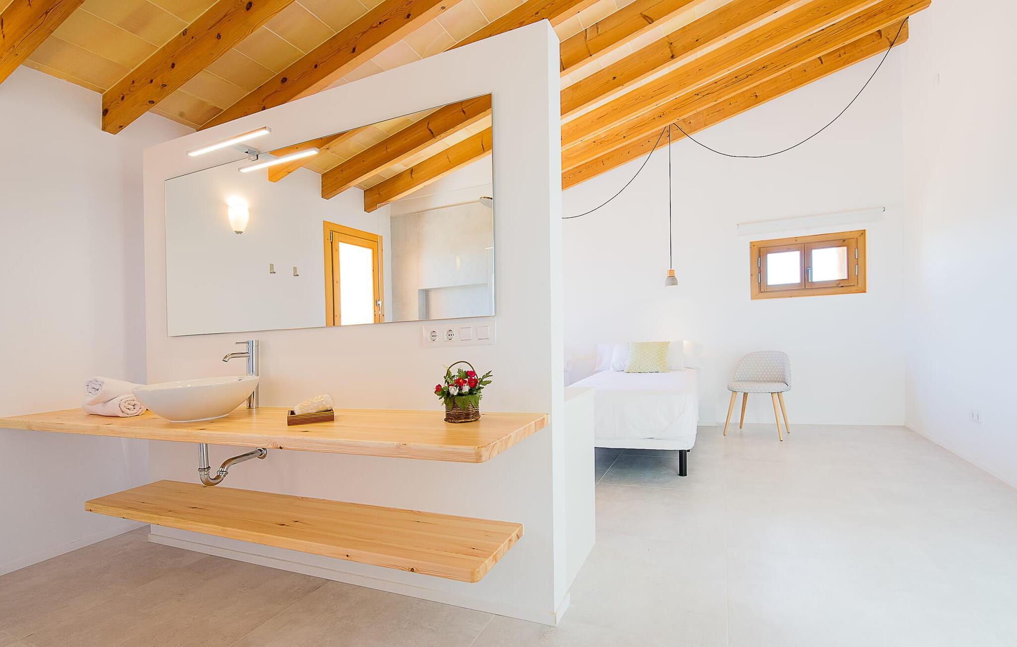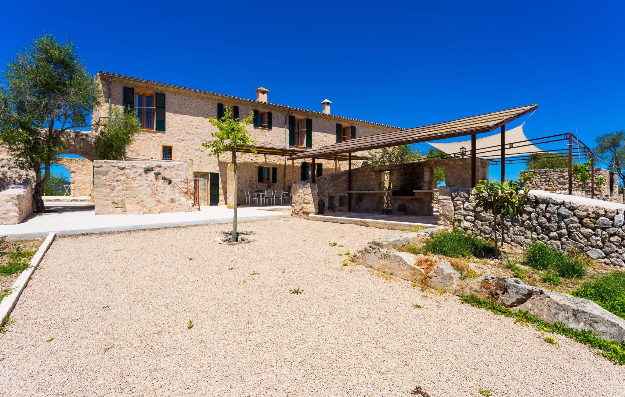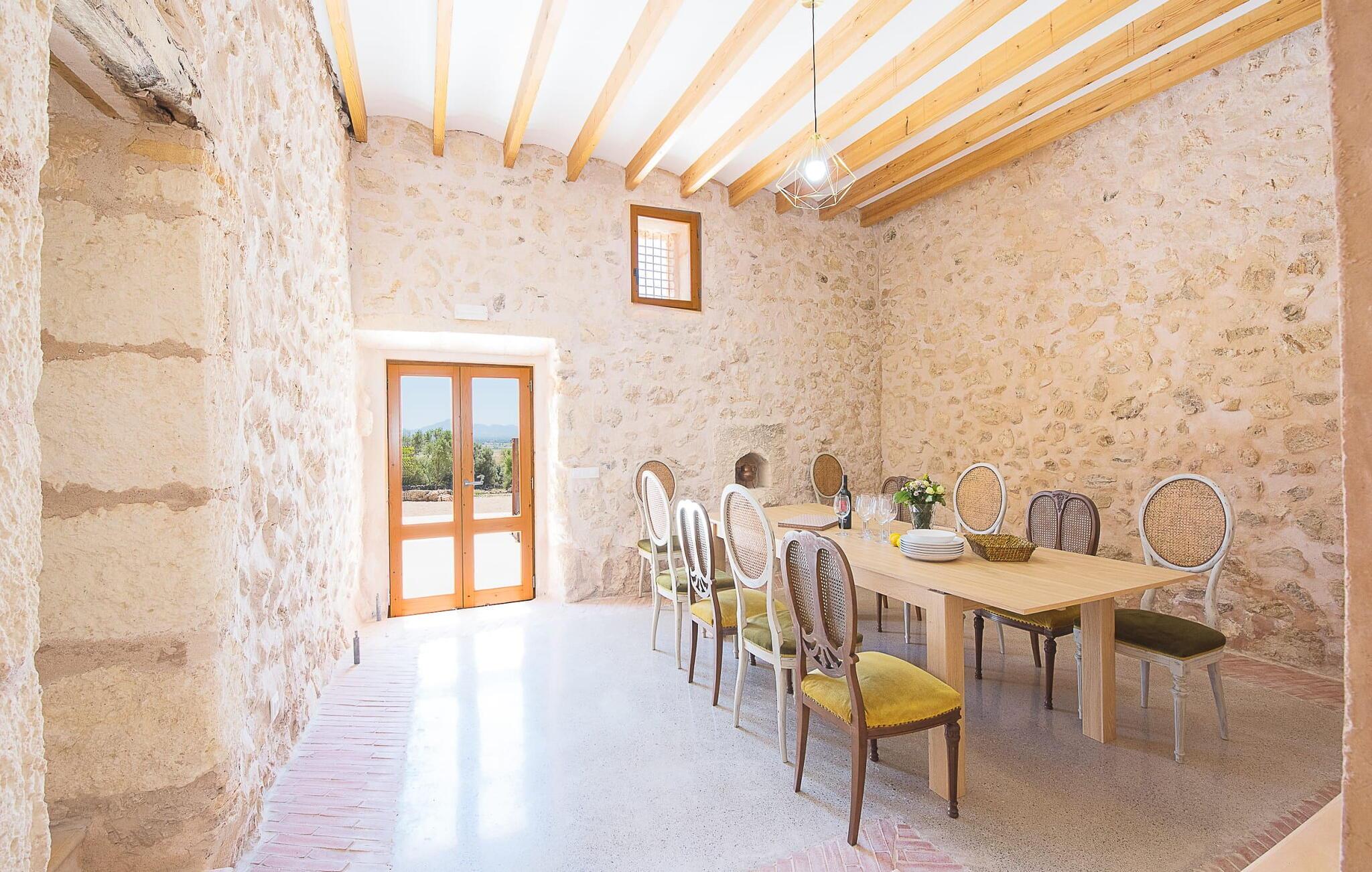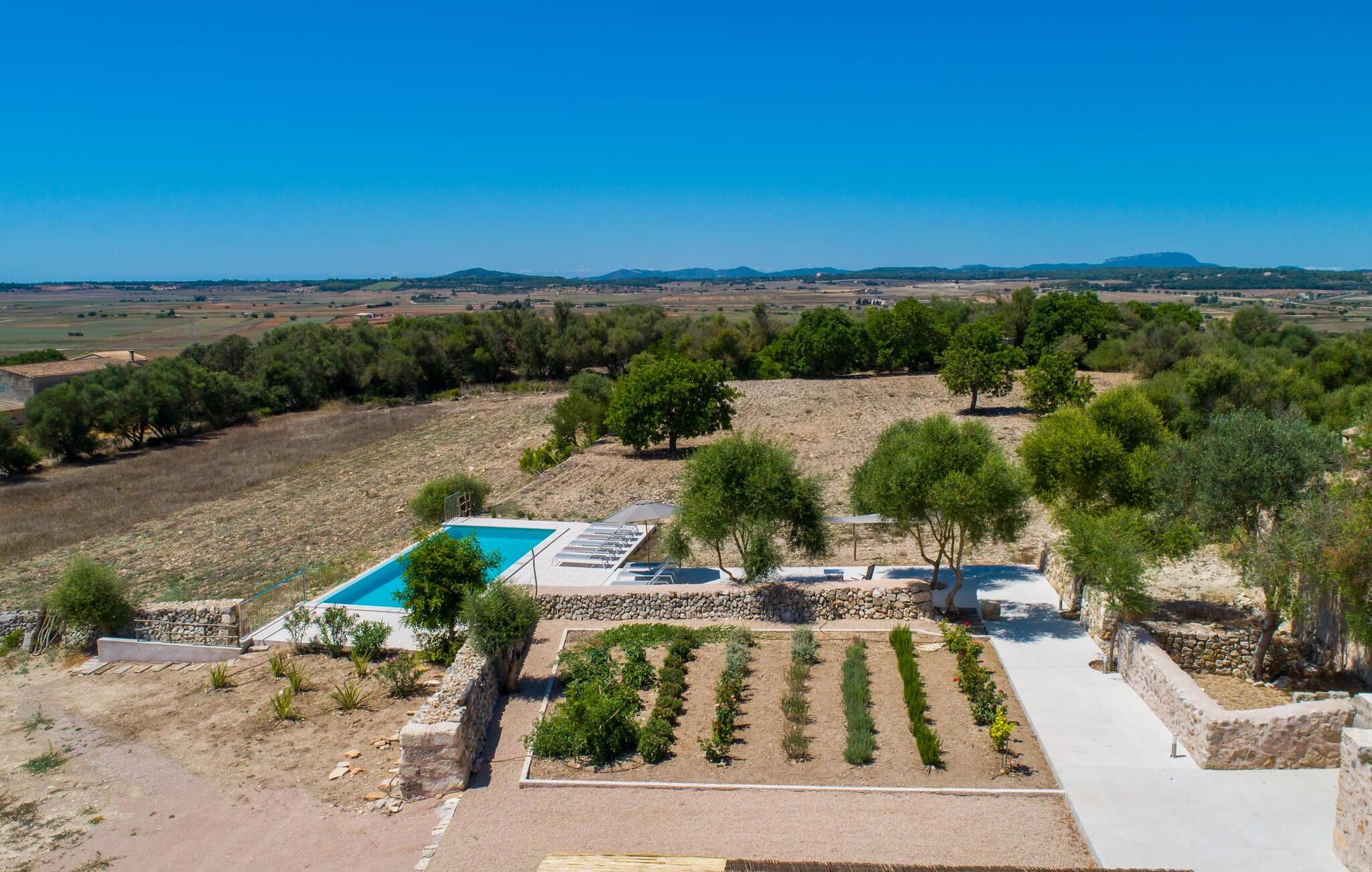 Beliggende på en blid bakke tilbyder feriefincaen "Alcudiarrom" en betagende panoramaudsigt over det landlige hjerte af øen. Det sydvendte udendørsområde byder på generøs plads til grill, spisning og solbadning. En iøjnefaldende funktion er den klorfrie infinity-pool, som inviterer jer til at slappe af og nyde den smukke natur. Solterrassen inviterer jer til at slappe af i de rolige omgivelser. Et rustikt udekøkken og grillplads supplerer en skyggefuld spiseplads med en fantastisk udsigt, mens en anden hyggelig spiseplads er bekvemt placeret ved siden af huset. Til siden er en charmerende, kølig terrasse med bordtennisbord og en halvåben terrasse med ekstra siddepladser. Stien til fincaen er fuldstændig asfalteret, med skyggefulde parkeringspladser og et opbevaringsrum til cykler. Indenfor finder I en dejlig blanding af rustik charme og moderne komfort. Den rummelige stueetage har en stor stue, en rustik spisestue, et fuldt udstyret køkken, et soveværelse med dobbeltseng med en-suite badeværelse, et billardrum og et gæstetoilet. Fem dobbeltværelser venter på jer på øverste etage, hver med sit eget moderne badeværelse en suite. Alle soveområder er airconditionerede og opvarmede for jeres komfort. Med fremragende mobiltelefonmodtagelse og stabilt WiFi overalt, kan I nemt arbejde eksternt, når det er nødvendigt. Den moderne villa "Cases d'Alcúdiarrom" ligger mellem Vilafranca de Bonany og Felanitx, midt i et smukt og ubebygget landskab. Det ugentlige marked ligger kun 15 minutter væk, og der er også andre indkøbsmuligheder i den lille, traditionelle landsby. En perlehvid strand med krystalklart vand kan nås via Felanitx på få minutter.
