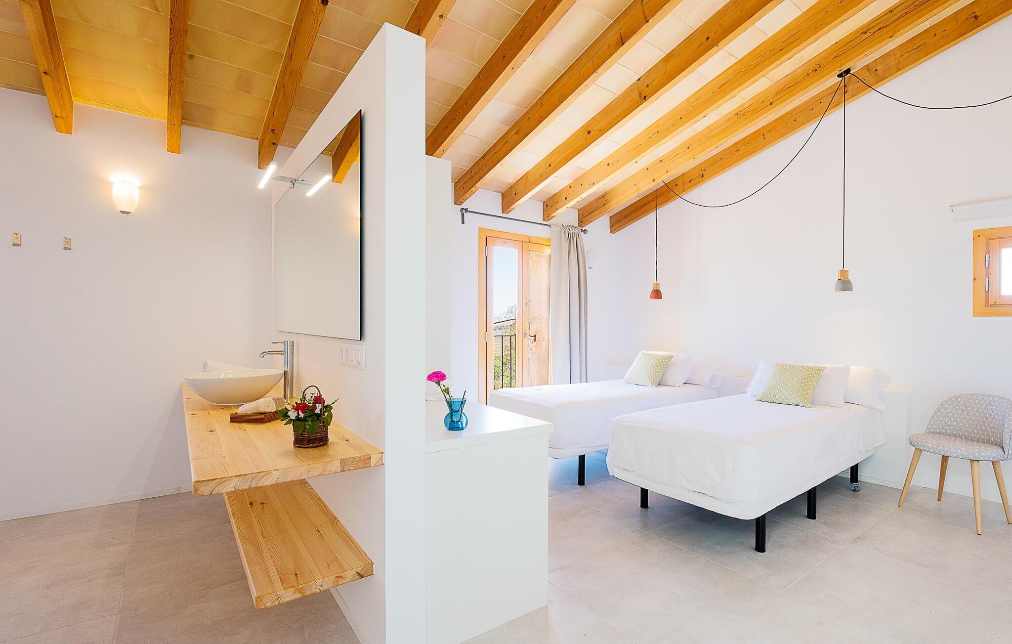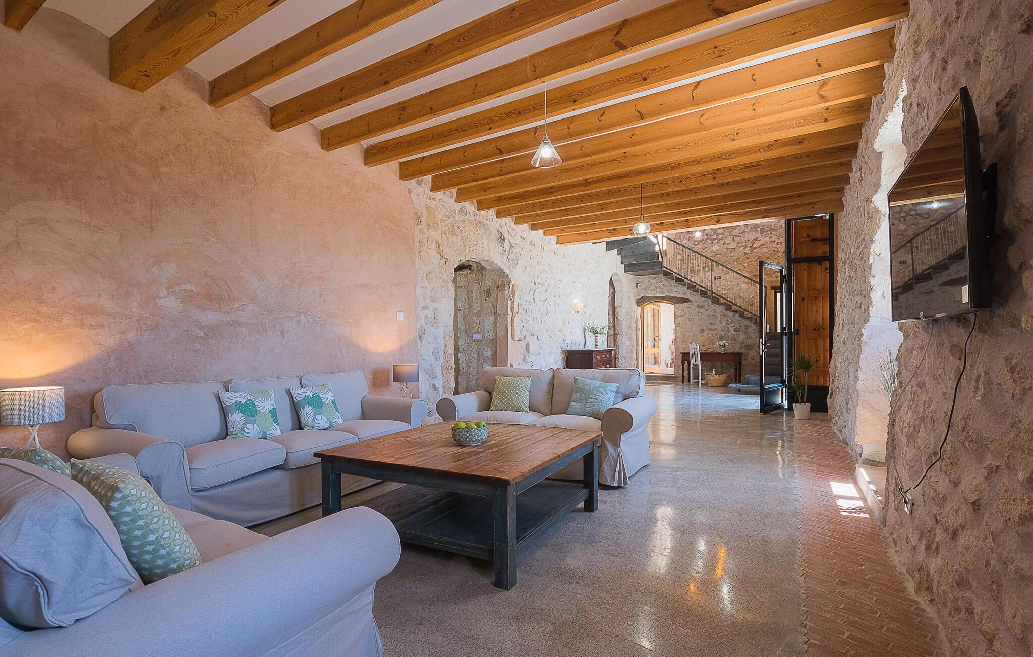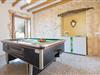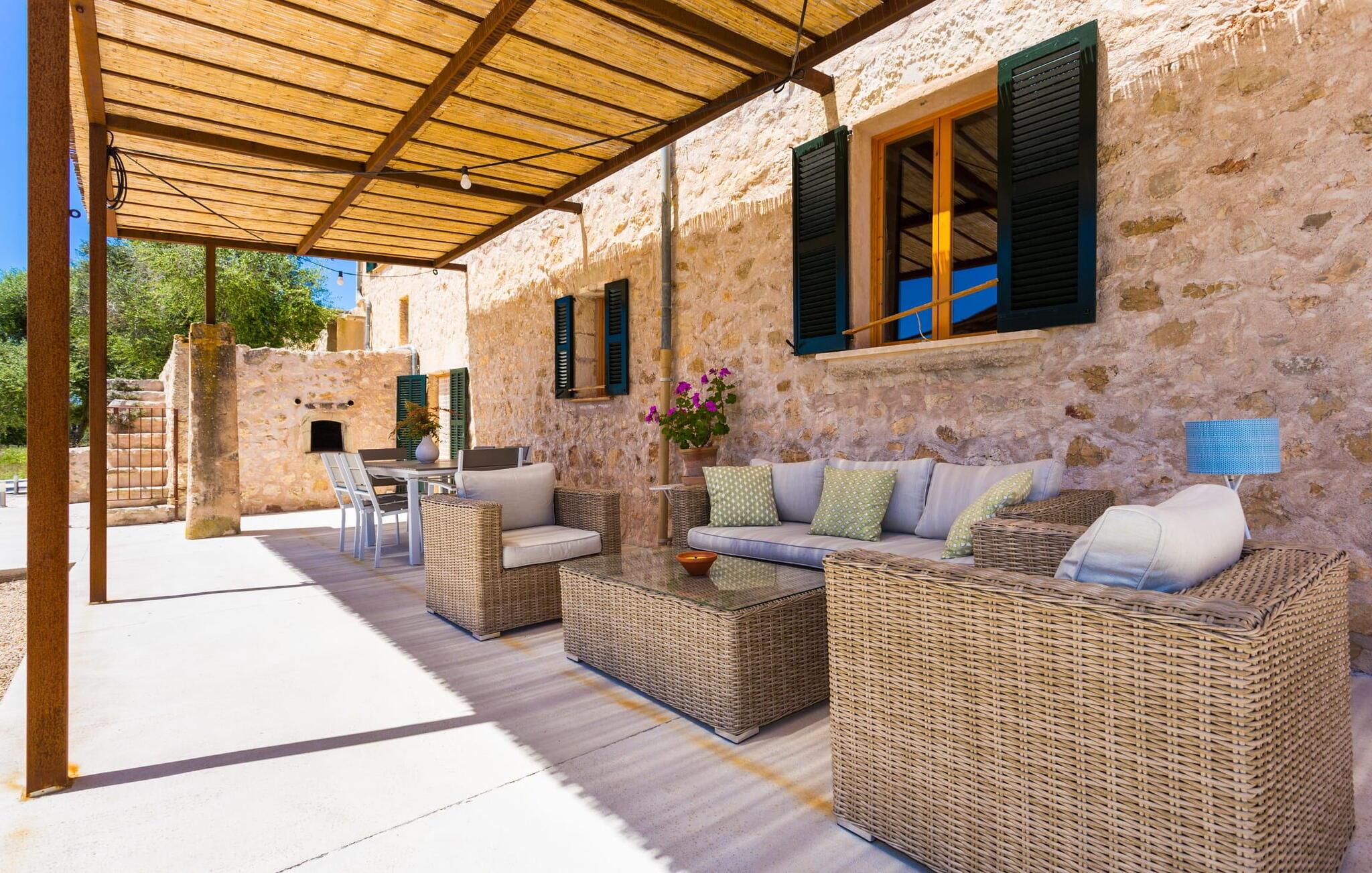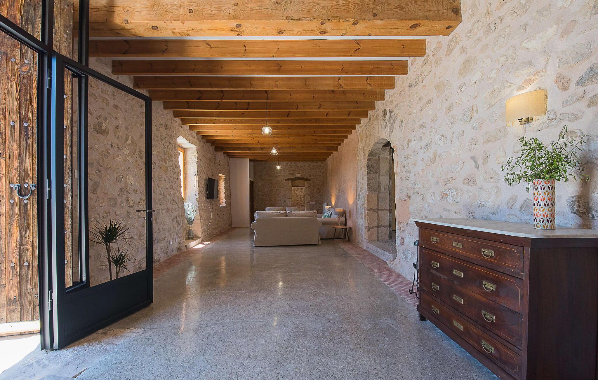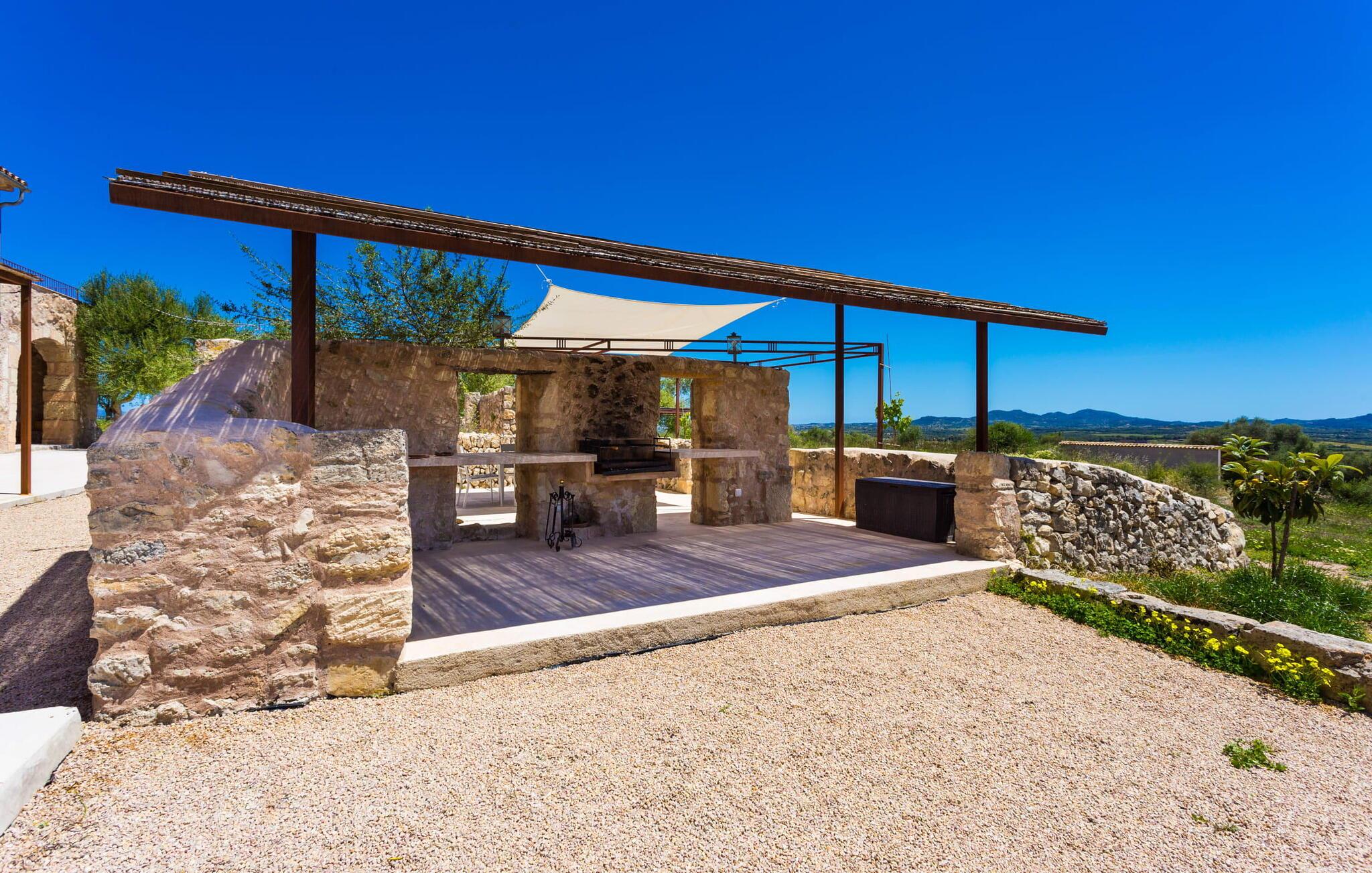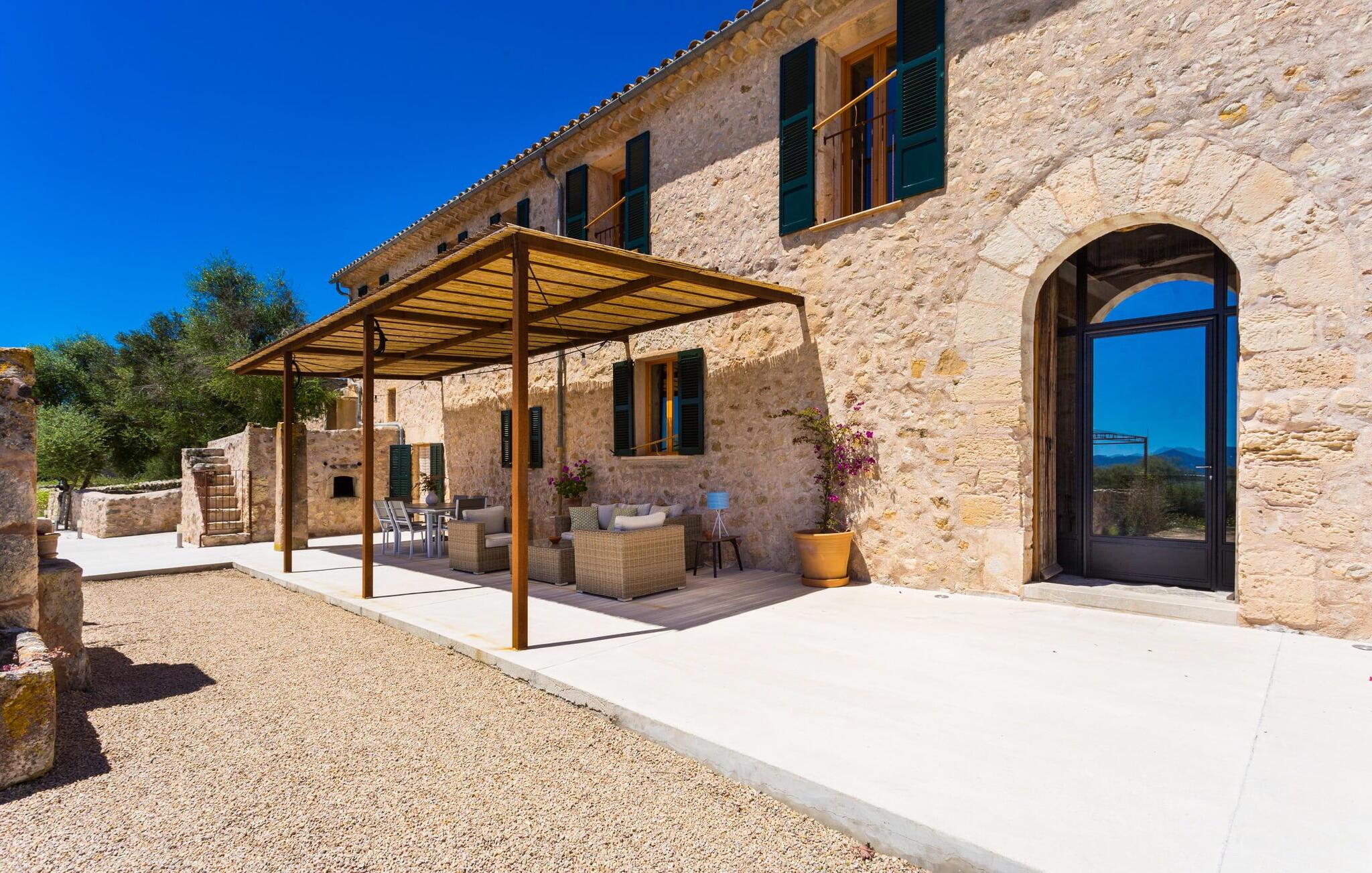Beliggende på en blid bakke tilbyder feriefincaen "Alcudiarrom" en betagende panoramaudsigt over det landlige hjerte af øen. Det sydvendte udendørsområde byder på generøs plads til grill, spisning og solbadning. En iøjnefaldende funktion er den klorfrie infinity-pool, som inviterer jer til at slappe af og nyde den smukke natur. Solterrassen inviterer jer til at slappe af i de rolige omgivelser. Et rustikt udekøkken og grillplads supplerer en skyggefuld spiseplads med en fantastisk udsigt, mens en anden hyggelig spiseplads er bekvemt placeret ved siden af huset. Til siden er en charmerende, kølig terrasse med bordtennisbord og en halvåben terrasse med ekstra siddepladser. Stien til fincaen er fuldstændig asfalteret, med skyggefulde parkeringspladser og et opbevaringsrum til cykler. Indenfor finder I en dejlig blanding af rustik charme og moderne komfort. Den rummelige stueetage har en stor stue, en rustik spisestue, et fuldt udstyret køkken, et soveværelse med dobbeltseng med en-suite badeværelse, et billardrum og et gæstetoilet. Fem dobbeltværelser venter på jer på øverste etage, hver med sit eget moderne badeværelse en suite. Alle soveområder er airconditionerede og opvarmede for jeres komfort. Med fremragende mobiltelefonmodtagelse og stabilt WiFi overalt, kan I nemt arbejde eksternt, når det er nødvendigt. Den moderne villa "Cases d'Alcúdiarrom" ligger mellem Vilafranca de Bonany og Felanitx, midt i et smukt og ubebygget landskab. Det ugentlige marked ligger kun 15 minutter væk, og der er også andre indkøbsmuligheder i den lille, traditionelle landsby. En perlehvid strand med krystalklart vand kan nås via Felanitx på få minutter.