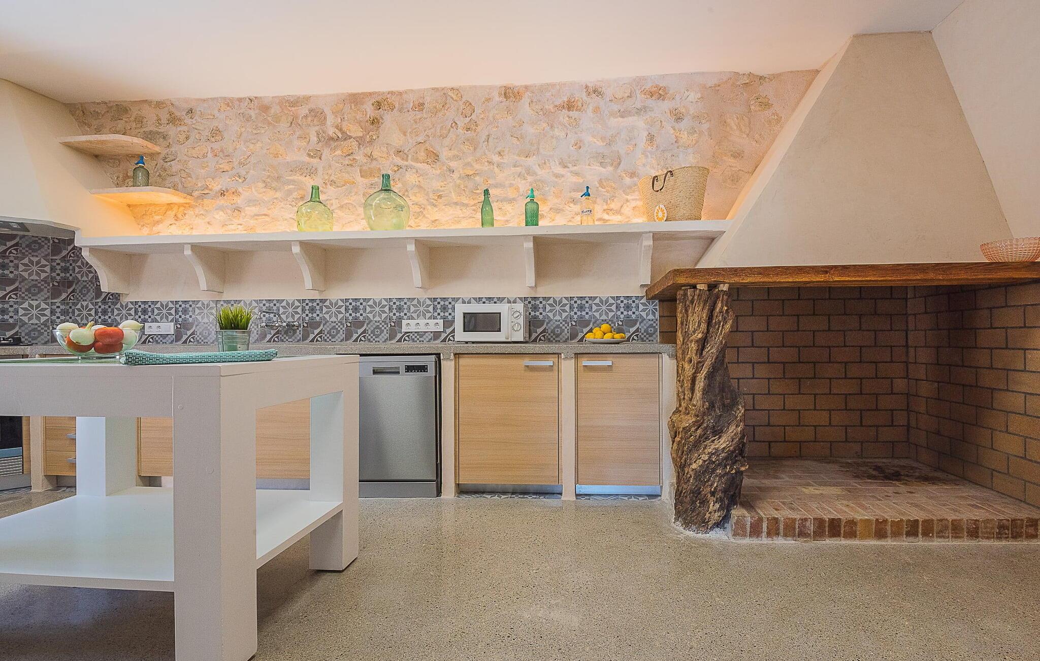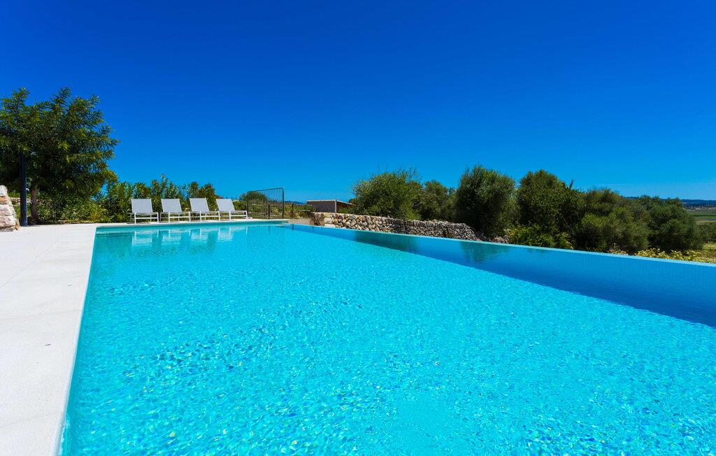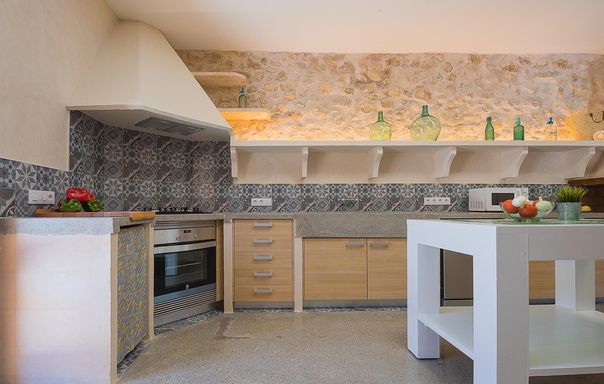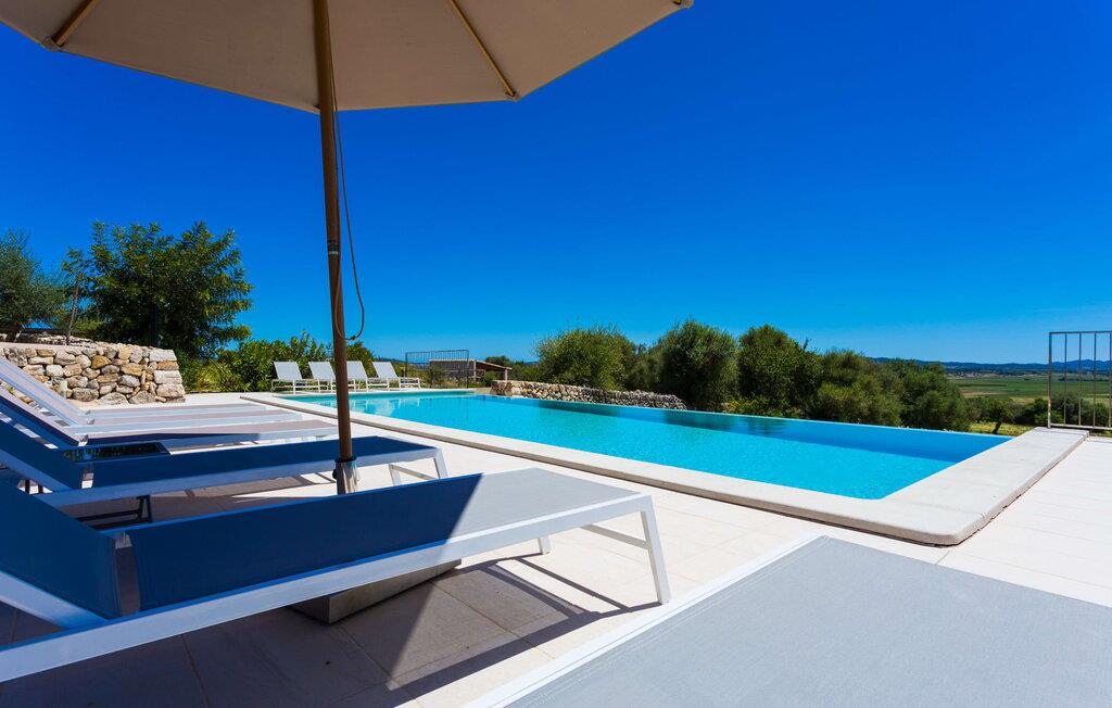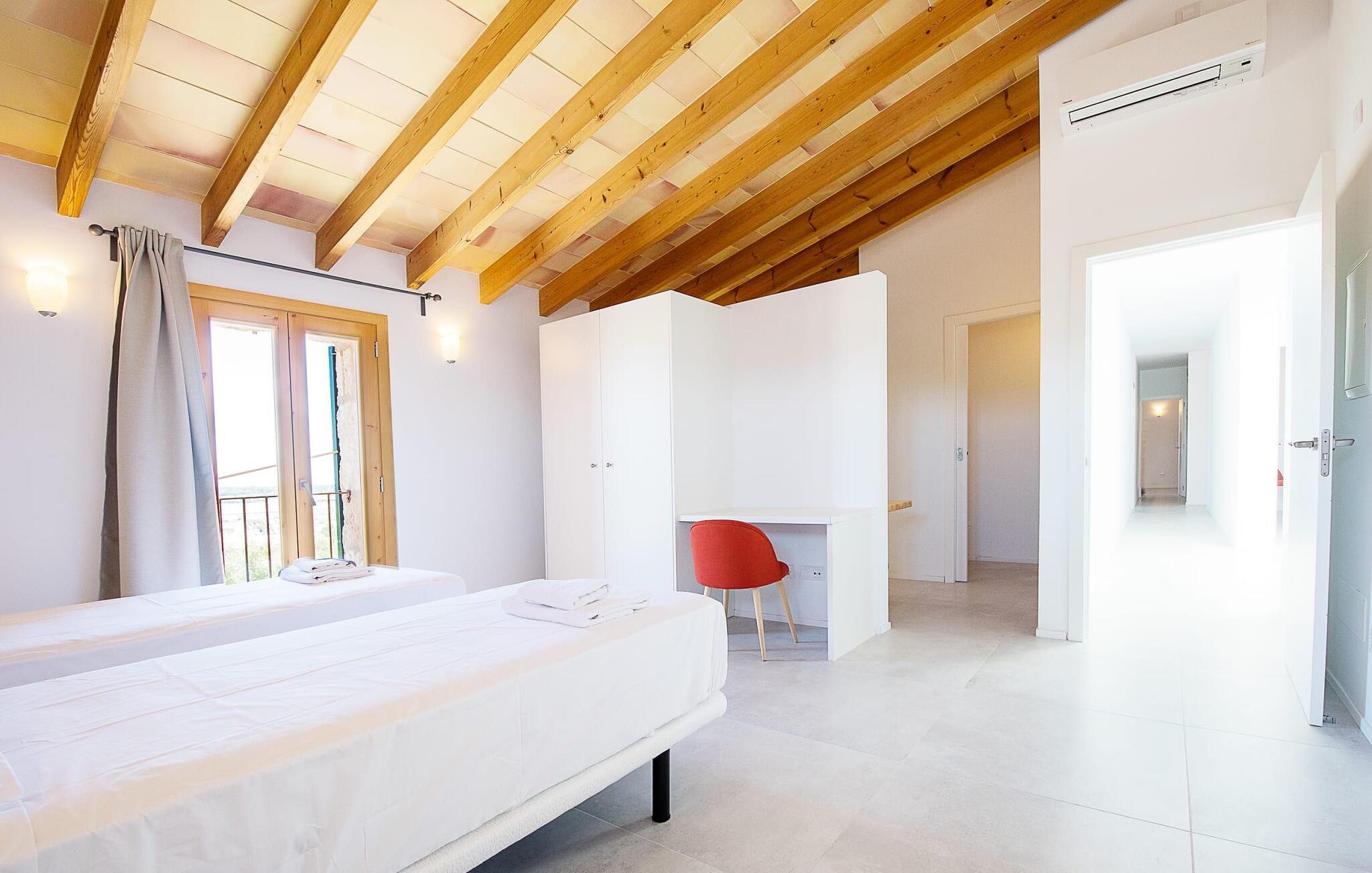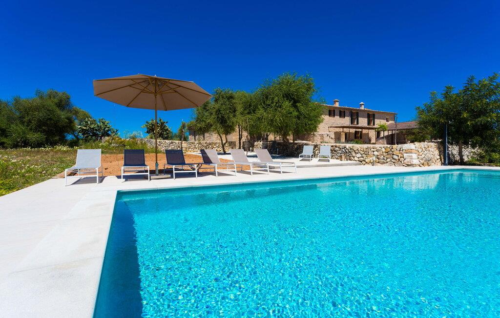 Beliggende på en blid bakke tilbyder feriefincaen "Alcudiarrom" en betagende panoramaudsigt over det landlige hjerte af øen. Det sydvendte udendørsområde byder på generøs plads til grill, spisning og solbadning. En iøjnefaldende funktion er den klorfrie infinity-pool, som inviterer jer til at slappe af og nyde den smukke natur. Solterrassen inviterer jer til at slappe af i de rolige omgivelser. Et rustikt udekøkken og grillplads supplerer en skyggefuld spiseplads med en fantastisk udsigt, mens en anden hyggelig spiseplads er bekvemt placeret ved siden af huset. Til siden er en charmerende, kølig terrasse med bordtennisbord og en halvåben terrasse med ekstra siddepladser. Stien til fincaen er fuldstændig asfalteret, med skyggefulde parkeringspladser og et opbevaringsrum til cykler. Indenfor finder I en dejlig blanding af rustik charme og moderne komfort. Den rummelige stueetage har en stor stue, en rustik spisestue, et fuldt udstyret køkken, et soveværelse med dobbeltseng med en-suite badeværelse, et billardrum og et gæstetoilet. Fem dobbeltværelser venter på jer på øverste etage, hver med sit eget moderne badeværelse en suite. Alle soveområder er airconditionerede og opvarmede for jeres komfort. Med fremragende mobiltelefonmodtagelse og stabilt WiFi overalt, kan I nemt arbejde eksternt, når det er nødvendigt. Den moderne villa "Cases d'Alcúdiarrom" ligger mellem Vilafranca de Bonany og Felanitx, midt i et smukt og ubebygget landskab. Det ugentlige marked ligger kun 15 minutter væk, og der er også andre indkøbsmuligheder i den lille, traditionelle landsby. En perlehvid strand med krystalklart vand kan nås via Felanitx på få minutter.