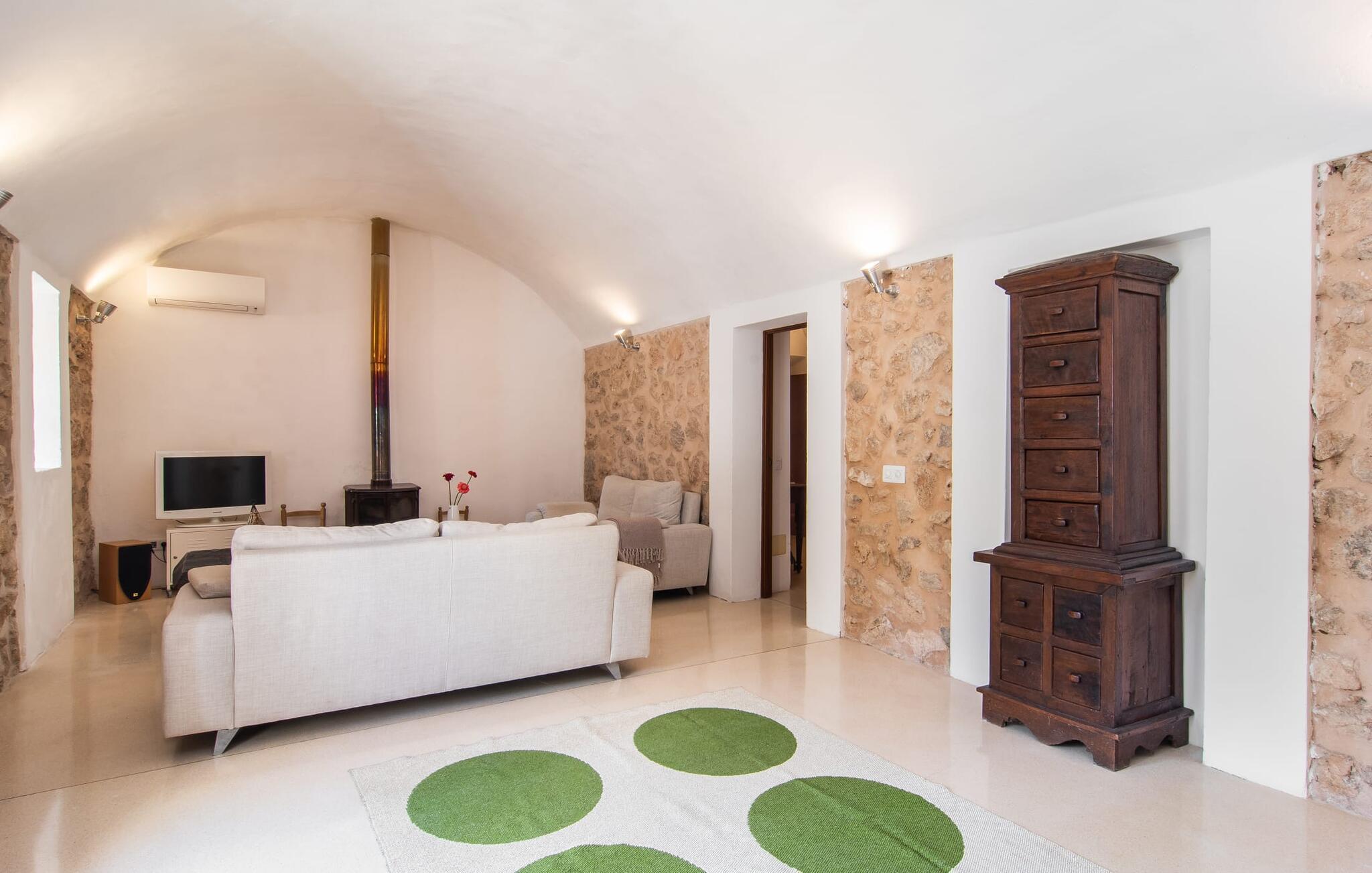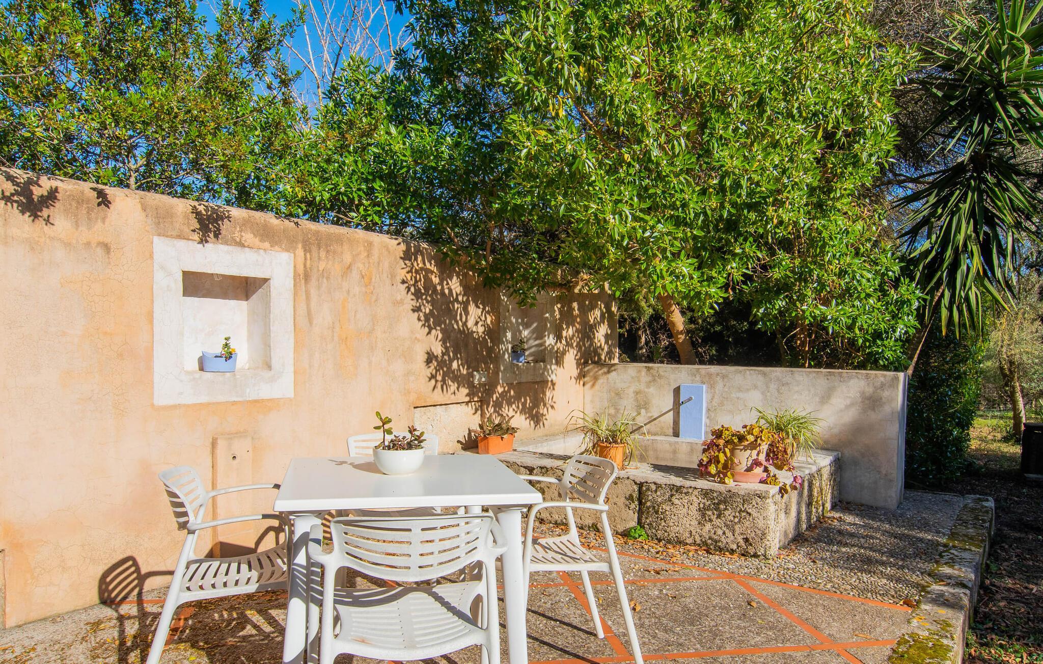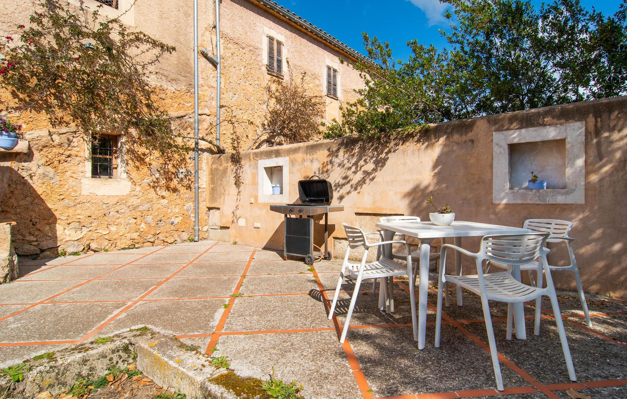 Hvordan forestiller I jer jeres ideelle ferie? Fred og ro? Natur og behageligt klima? Maksimal frihed og individuel rejse? Sport og kultur? Ingen masseturisme, men typisk autenticitet? Romantisk idyl og alligevel tæt på byen? Hvis ja, så vil vi med glæde byde jer og jeres familie velkommen til den ideelle villa "Alfaber". Den gamle, rustikke bygning blev omhyggeligt renoveret af ejerne, med ydermure lavet af stenbrud nænsomt bevaret. Her bor I i et dobbelthus, bevarer jeres privatliv og nyder jeres egen have og pool. Beskyttet af talrige værdige oliventræer og palmer snor sig frodige blomstrende planter rundt om muren. I dette smukke landskab finder I mange attraktive siddepladser med delikate jernborde og stole i træernes naturlige skygge. Følg solen, når den bevæger sig hen over himlen, og find et solrigt eller skyggefuldt sted, der passer bedst til tidspunktet på dagen. Mens I allerede forvarmer grillen, kan børnene stadig svømme i jeres ret store 14 meter store swimmingpool. Når maden er klar, hopper børnene hurtigt ud i udendørsbruseren, og aftensmaden kan serveres. Når I er færdig, er det måske det rigtige tidspunkt for en fodboldturnering sammen. Når de yngre gæster allerede er i seng, kan I nyde den dyrebare tid for to i landlig fred og ro med et glas god mallorcansk rødvin. Og når jeres aften langsomt slutter, så træd ind i det overraskende moderne interiør i den smukke villa. Et smukt åbent område med hvælvet loft og det fritlagte murværk afslører alderen på det totalrenoverede hus. Hvælvingen er malet lys hvid, og det funktionelle område forbinder opholds- og spiseafdelingen. Opholdsstuen har pejs, moderne fladskærms-tv og lyse sofaer. På den anden side af rummet er en spisestue med møbler i vintage-stil. En typisk spansk gyngestol og en topmoderne designerlampe understreger det overordnede vellykkede samspil mellem modernitet og tradition, som kan mærkes i hvert hjørne af huset. For eksempel i det fuldt udstyrede køkken, som samtidig er reduceret til det væsentlige. Dette hjem kræver ikke et køkken af høj kvalitet for at give jer den funktionalitet, I har brug for til en afslappende ferie. Det enkelt indrettede køkken byder på opvaskemaskine, stort køle-fryseskab, gaskomfur, kaffemaskine og meget mere. En lille passage fører til det store soveværelse i maisonette-stil. I det uformelle nederste område er der to enkeltsenge til børn. En metaltrappe med trætrin fører til galleriet, hvor der er et mastersoveområde med en king-size seng og et smukt skriveområde. Også her vil I blive overrasket over den spændende kombination af moderne og antikke elementer med et lidt alternativt præg. Takket være den åbne sovefløj er huset ideelt til en familie på fire, men også attraktivt for et par, der ikke ønsker at blive begrænset af pladsen. Apropos tiltrækningskraft: Det er essensen af denne region omkring den charmerende lille by Sant Llorenc - idylliske landskaber og meget god infrastruktur er karakteristiske træk ved den nordøstlige del af øen. I en by kun 1 km væk kan I gøre jeres daglige indkøb i supermarkederne, købe friskbagt varer fra bageriet og afslutte denne morgenudflugt med en "hurtig" Café Cortado i en af de caféer, der er populære blandt de lokale. Denne lille by ligger cirka halvvejs mellem Manacor og Artà - begge landsbyer er omkring 10 km væk. I den maleriske by Artà er der et smukt marked om tirsdagen, hvor I kan købe mallorcanske specialiteter og friske produkter til jeres grillaften eller bare nyde senere i det hyggelige opholdsområde efter jeres individuelle valg i denne smukke villa. Udover familievenlige bademuligheder byder de smukke lokale strande også på talrige vandsportsaktiviteter, som udover muligheden for cykel- og vandreture også kunne appellere til jer som sportsentusiast eller par. Valget er op til jer - og I træffer et godt valg, fordi I har booket villaen "Alfaber". Den fortryllende villa "Alfaber" er den perfekte destination for en familie med to børn, der drømmer om en afslappende ferie i et typisk mallorcansk landsted med en meget stor pool og en uberørt have. Denne moderne villa har en rolig beliggenhed nær boligområdet Sant Llorenc, hvor I finder forskellige indkøbsmuligheder samt caféer og restauranter. Der er smukke sandstrande, herunder Cala Bona eller Costa de los Pinos, omkring 10 km væk.