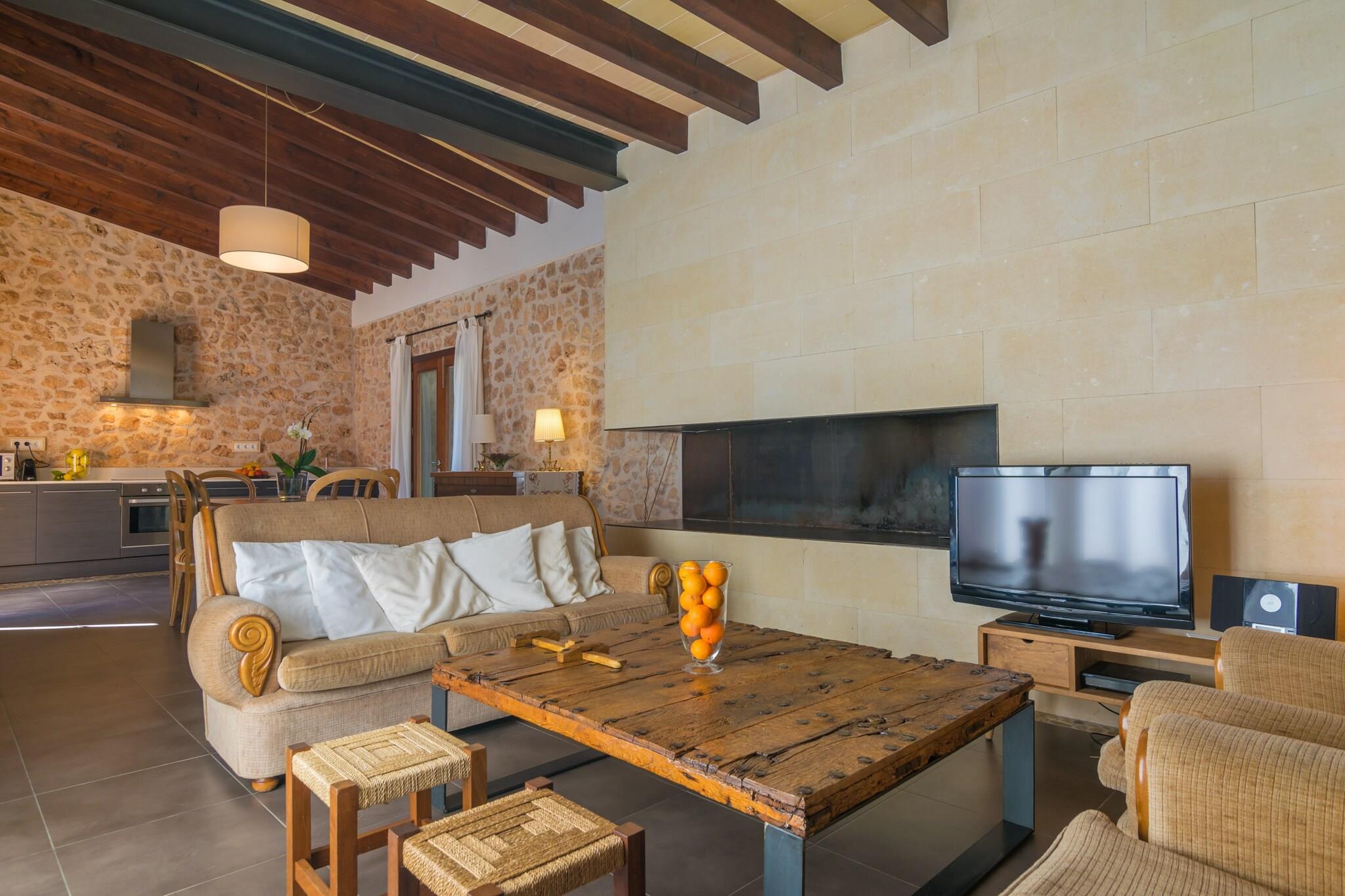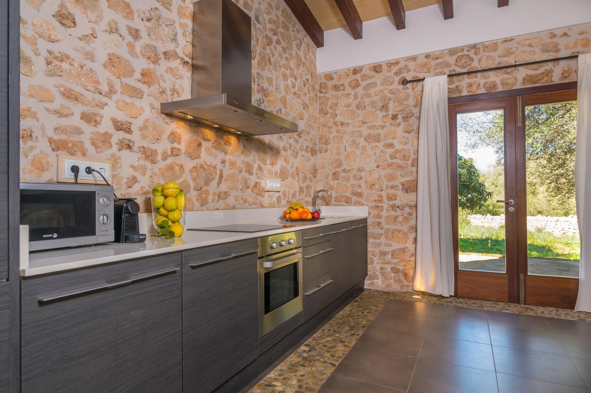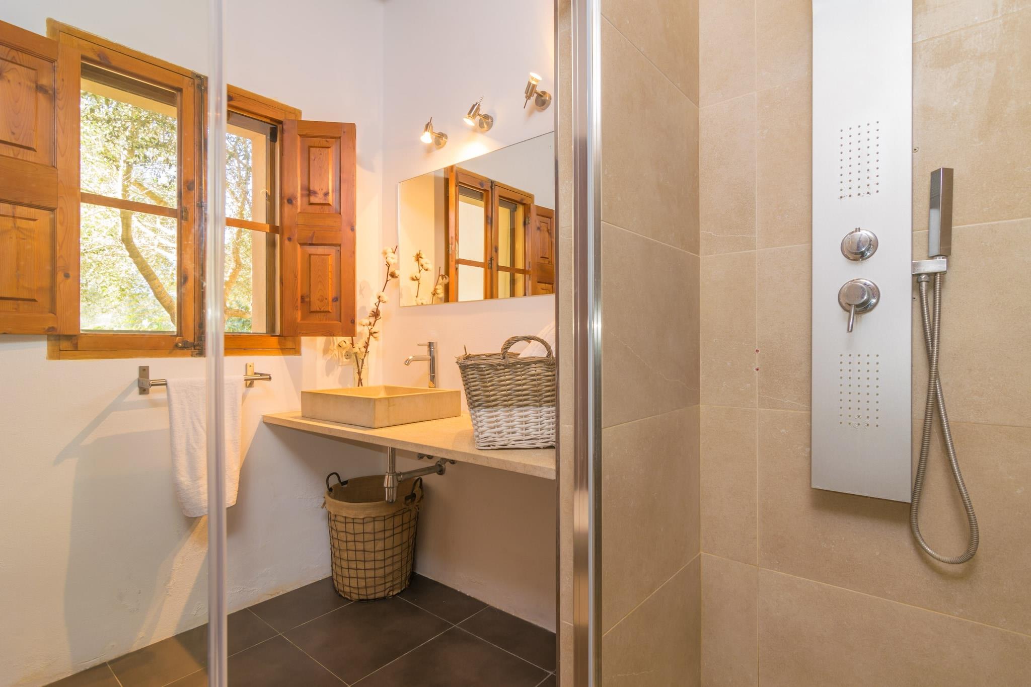 Denne finca fanger øens autentiske charme med indbydende udendørsrum. Slap af på verandaen eller den dejlige bagterrasse perfekt til alfresco-grill efter en forfriskende svømmetur i den 6 x 4 m saltvandspool, omgivet af kunstig græsplæne og 4 liggestole. Vanddybden varierer fra 1 til 1,7 meter, ideel til at køle af og nyde naturens fred. Ejendommen består af et rustikt men moderne hovedhus i to etager og et hyggeligt anneks ved poolen. Opholds-/spisestue-køkkenområdet har aircondition, keramisk kogeplade, spisebord og satellit-tv. Ovenpå er to soveværelser med dobbeltsenge med AC og skabe, plus et tredje soveværelse med dobbeltseng med en-suite badeværelse placeret i annekset. En barneseng, høj stol, vaskemaskine, strygejern og strygebræt er også til rådighed. Beliggende 4,8 km fra den autentiske by Algaida, med butikker og restauranter, og omkring 20,8 km fra den nærmeste strand ved Can Pastilla. Udforsk nærliggende fantastiske strande som es Trenc og Cala Mondragó. Bemærk: Gæster under 30 skal være familie; paskopier påkrævet. Kæledyr og arrangementer er forbudt. Parkering til 3 biler til rådighed.