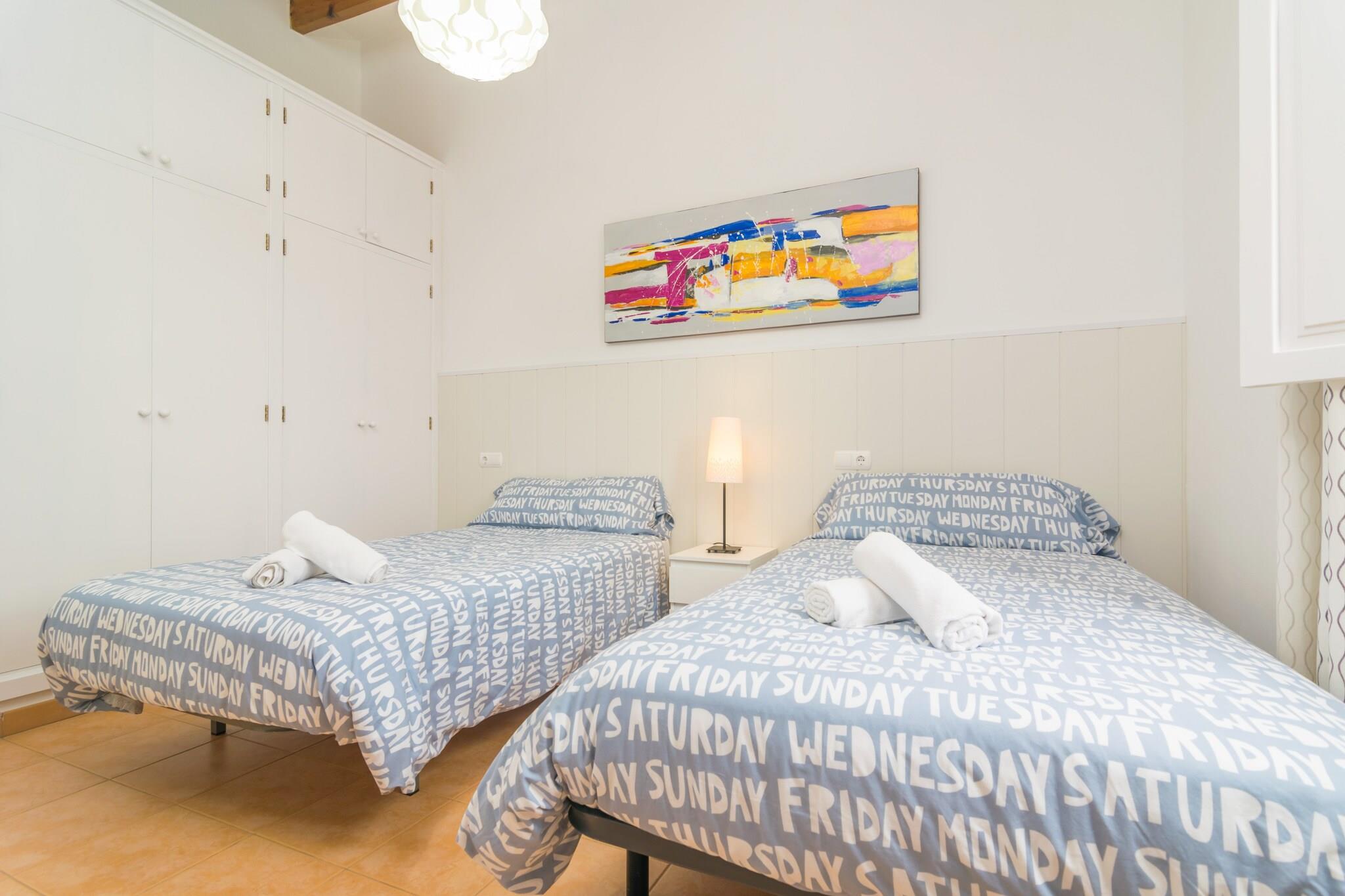 In dit mooie en comfortabele huis kunt u genieten van de rust van het verblijf aan de rand van een stadje in het binnenland, maar toch van alle gemakken voorzien. Buiten kunt u heerlijk afkoelen in het prachtige chloorbad van 5 x 3 meter en een diepte van 1,5 meter. Na het baden gaat er niets boven zonnebaden op een van de ligstoelen, of een drankje drinken onder de veranda terwijl wij de barbecue klaarmaken. Naast de ingang van het huis vindt u nog een ruimte waar u met uw gezin kunt eten en dineren terwijl u geniet van het ongelooflijke Mallorcaanse klimaat. Het huis ligt in de stad en er zijn directe buren. Het huis van 130 m2 is verdeeld over twee verdiepingen die zijn gerestaureerd zodat u tijdens uw verblijf van alle gemakken kunt genieten. In de woonkamer kunt u heerlijk uitrusten op een van de banken, televisie kijken of een kort dutje doen. Vervolgens is er de eethoek die plaats biedt aan 4 personen. Tenslotte de keuken, uitgerust met de benodigdheden om op vakantie te koken, waaronder een keramische kookplaat, vaatwasser en een kleine tafel met stoelen voor het ontbijt. Naast de keuken bevindt zich de wasruimte met een wasmachine, strijkijzer en strijkplank. Op de begane grond vindt u de eerste twee slaapkamers, één met een tweepersoonsbed en de andere met twee eenpersoonsbedden, beide voorzien van een ventilator en kledingkast. De begane grond wordt compleet gemaakt met twee badkamers, één met ligbad en de andere met douche, die het hele huis bedienen. Als u de trap op gaat, vindt u de laatste slaapkamer, eveneens met twee eenpersoonsbedden, ventilator en kledingkast. Als u met een baby reist, kunnen wij een wieg en een kinderstoel voor u klaarmaken. Het huis is gelegen in de stad Algaida, waar u alle basisvoorzieningen voor een zelfstandig verblijf kunt vinden: een supermarkt, bars en restaurants met traditionele Mallorcaanse gerechten. Vanaf hier kunt u de glasfabriek Can Gordiola bezoeken, of ook naar Puig de Randa gaan en genieten van een prachtig uitzicht over het eiland. Het dichtstbijzijnde strand is El Arenal, met alle voorzieningen en een geweldige sfeer. Als u een golfliefhebber bent: de dichtstbijzijnde golfbaan ligt op slechts 13,6 km afstand. Opmerking: deze huuraccommodatie accepteert geen klanten jonger dan 30 jaar, behalve in gevallen waarin het om een ??gezinsverblijf gaat. We hebben kopieën van het identiteitsbewijs van elke persoon nodig om de reservering te kunnen accepteren. Voor eventuele extra kosten kunt u contact opnemen met de adverteerder. Wij accepteren geen huisdieren. Het vieren van evenementen is niet toegestaan. Er is 1 parkeerplaats in de garage. Afstanden Strand: 17,9 km - Plajta de s'Arenal, Palma Luchthaven: 18,2 km - Son Sant Joan, Palma Golfbaan: 13,6 km - Golf Son Gual, Palma Stad: 0,001 km - Algaida Treinstation: 21 km - Parc de les Estacions, Palma Bushalte: 0.400 km - Crta Manacor, Algaida Veerboot: 24,4 km - Haven van Palma Ziekenhuis: 17,5 km - Ziekenhuis Son Llà tzer, Palma Toeristenvergunning: ETV/8477 Op de Balearen geldt een toeristenbelasting, Ecotasa genaamd, die door de gast moet worden betaald. Het bedrag varieert tussen EURO 0,55 / per nacht per persoon in het laagseizoen en EURO 2,2 / per nacht per persoon in het hoogseizoen. Vanaf de negende dag wordt het met de helft verminderd. Personen onder de 16 jaar uitgesloten.