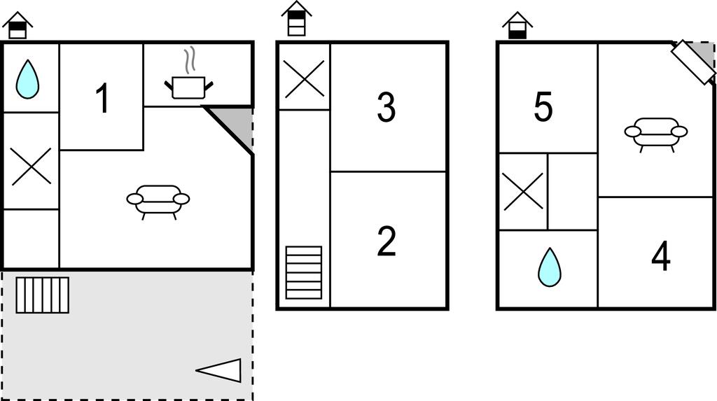 Badeværelse 3m2 (nr. 1) - WC. Varmt og koldt vand. Bruser