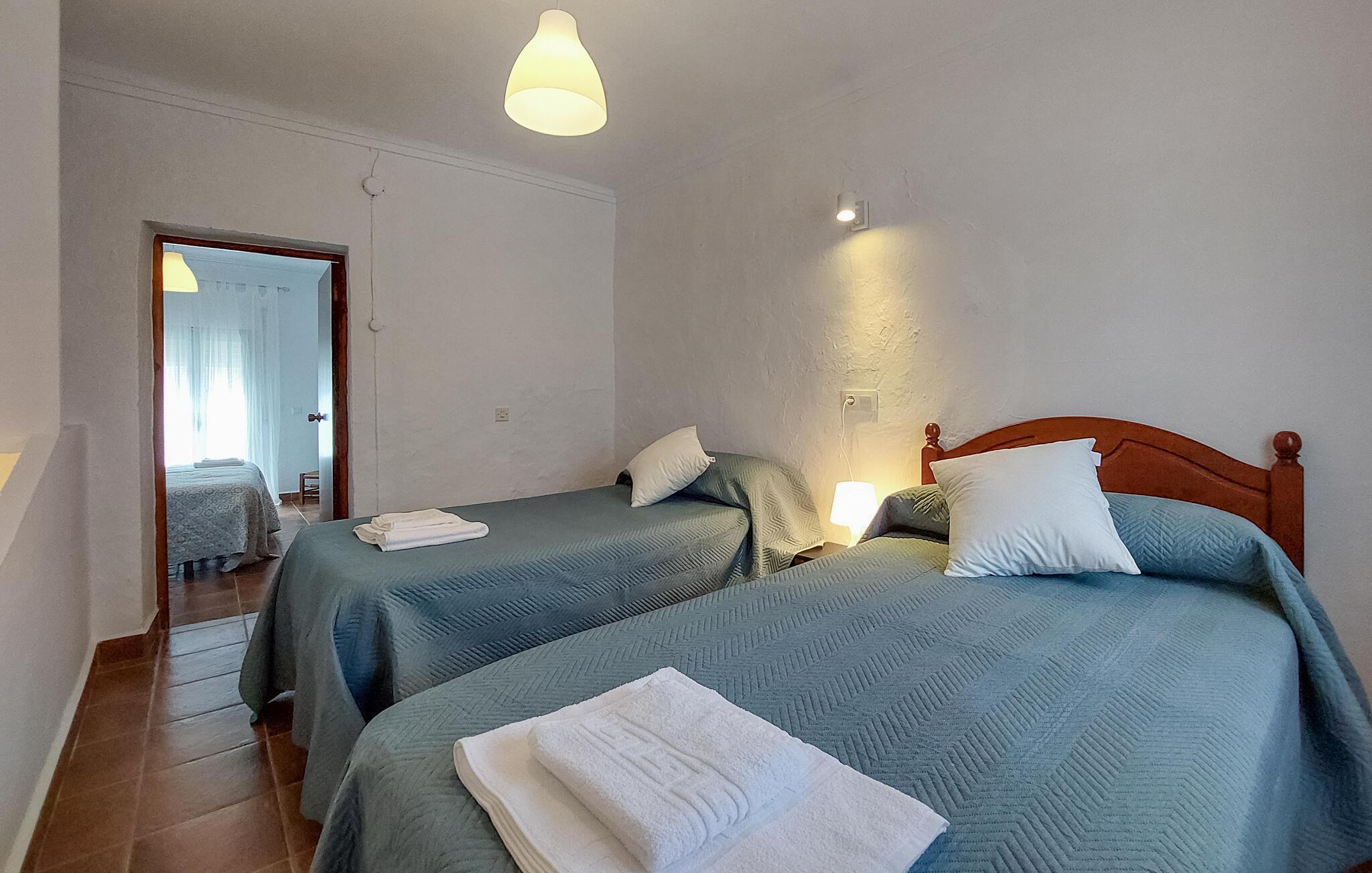 Denne charmerende bolig forener rustik charme med moderne komfort. Indendørsområderne er kærligt indrettet og byder på en indbydende atmosfære. Den behagelige og venlige stue indbyder til afslapning, mens det praktiske køkken tilbyder gode betingelser for kulinariske eventyr. Soveværelserne er hyggelige og sørger for, at I får en god nats søvn, så I kan starte jeres feriedage veludhvilet.