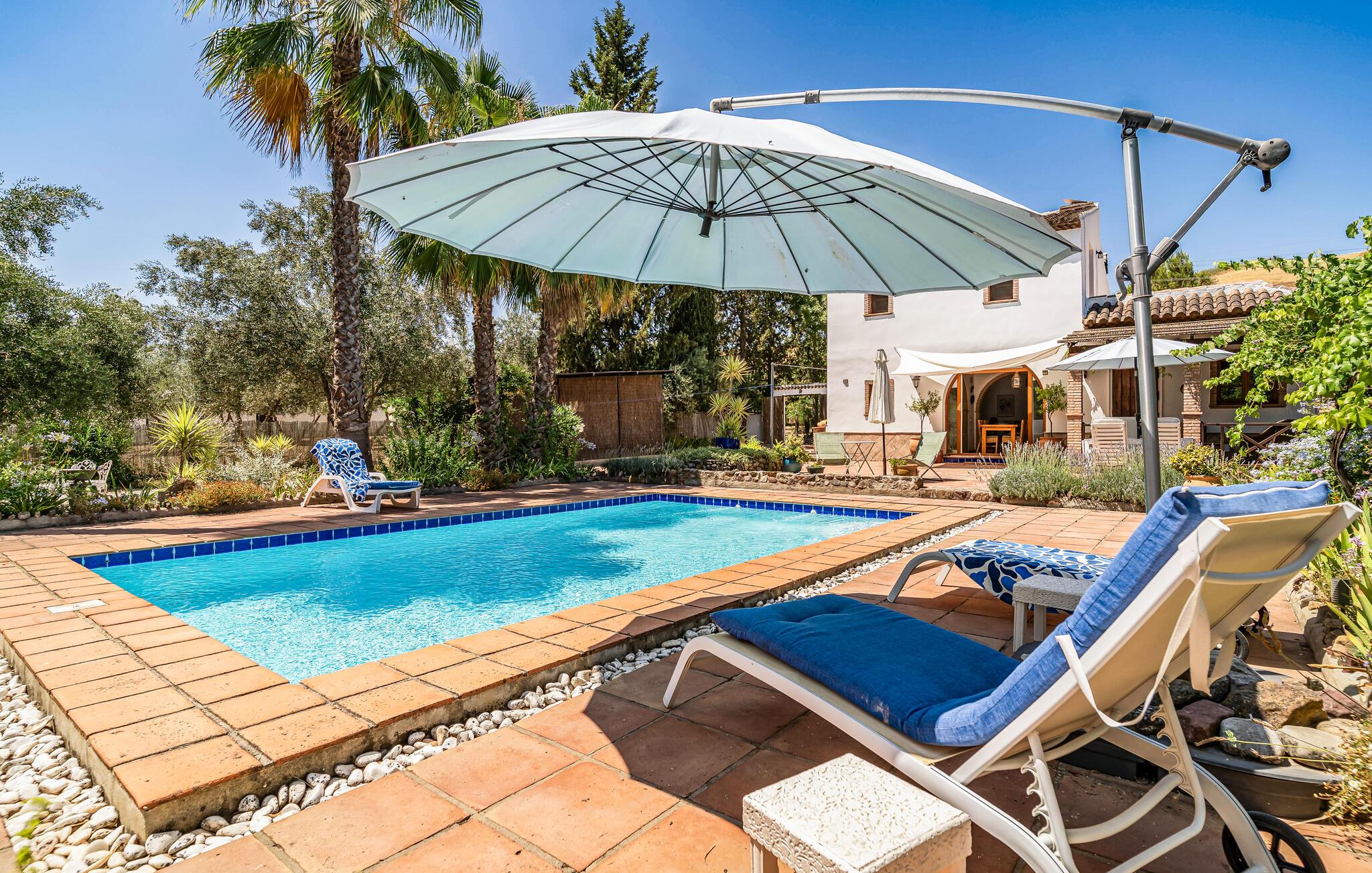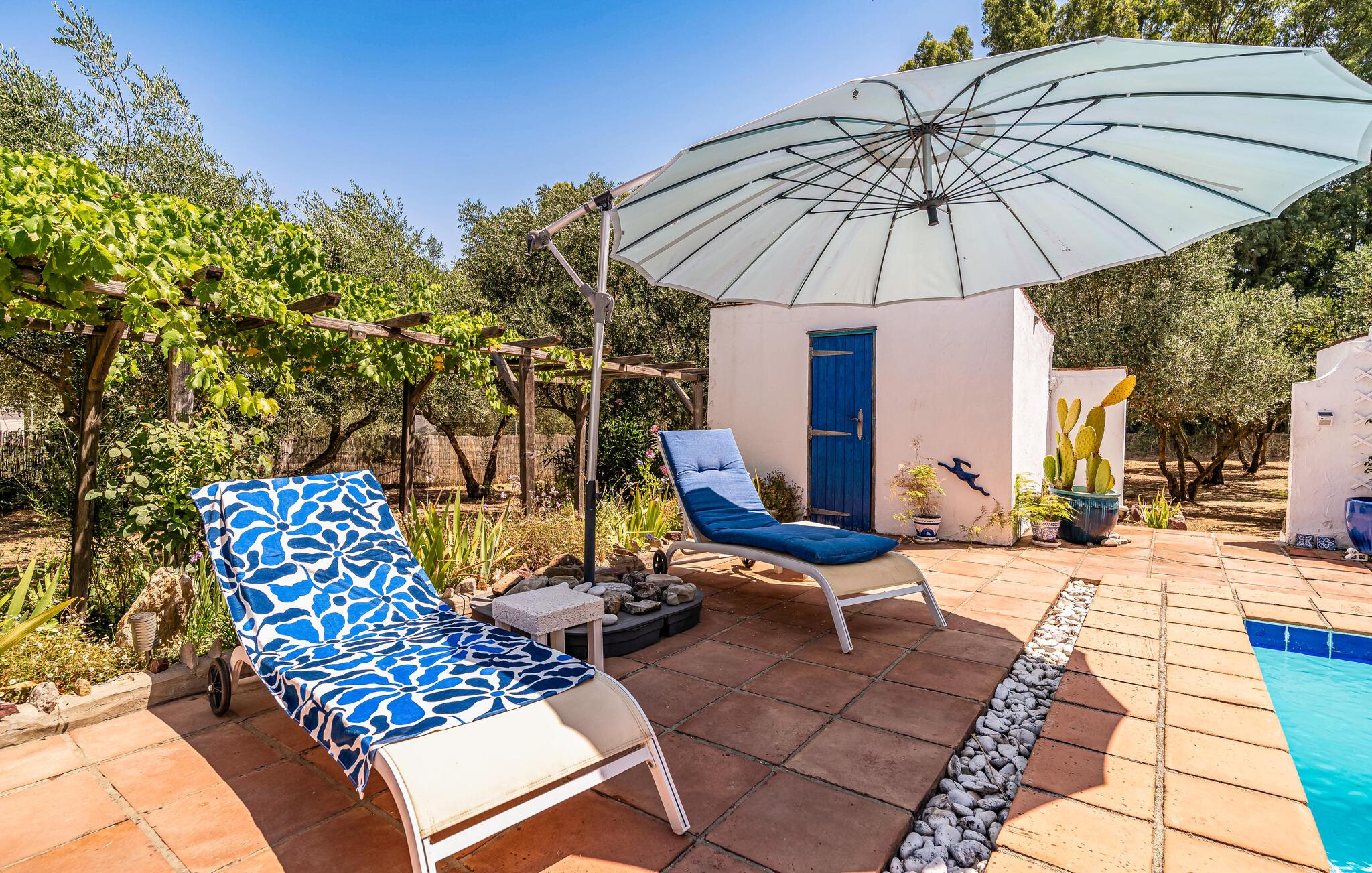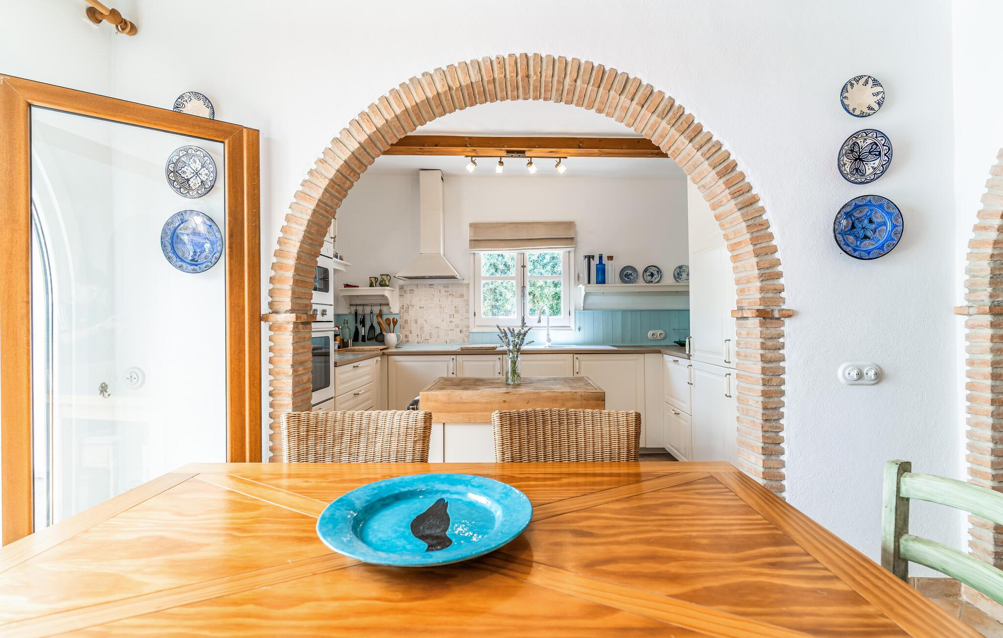 Nyd en betagende udsigt fra dette komfortable feriehus med pool. Dette indbydende hus byder jer velkommen til en fantastisk beliggenhed midt i malerisk landskab. I værelserne, med smukke klinkegulve og synlige loftsbjælker, og møbleret i moderne landlig stil, kan I virkelig nyde jeres tid sammen. Vågn op til udsigt over landskabet og glæd jer til hyggelige aftener ved pejsen. Tilbring dejlige timer på terrassen, solbad, læs i skyggen og forfrisk jer i poolen. Nyd lune sommeraftener med kolde drikke udendørs mod en magisk baggrund. Tag en slentretur gennem den hvide landsby, nyd duften af appelsinblomster, og nyd friskbagt kage på en af de traditionelle caféer. Bestig de omkringliggende bjerge på en guidet vandretur eller udforsk området på cykel; den panoramaudsigt over olivenlunde og kalkstensklipper vil forbløffe jer.