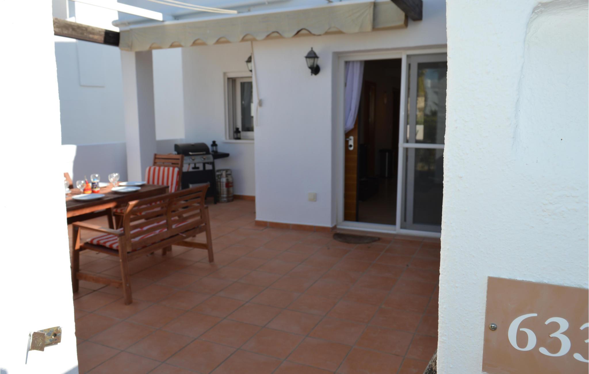 Lejligheden har plads til 6 personer. Der er 3 soveværelser og 1 badeværelse. Fra lejligheden har I udsigt over den fælles pool. Der er en lille have foran huset, hvor I kan grille og slappe af på liggestole. En hæk beskytter privatlivets fred.