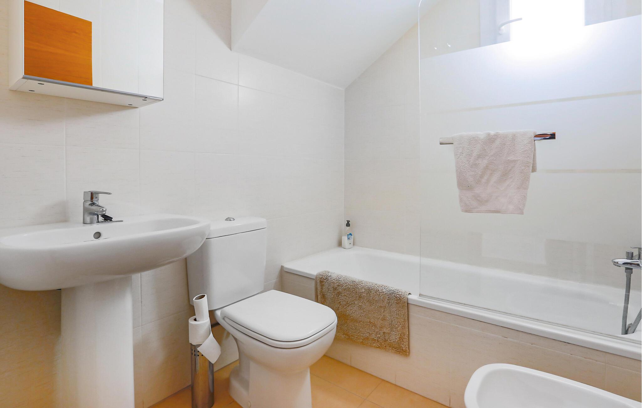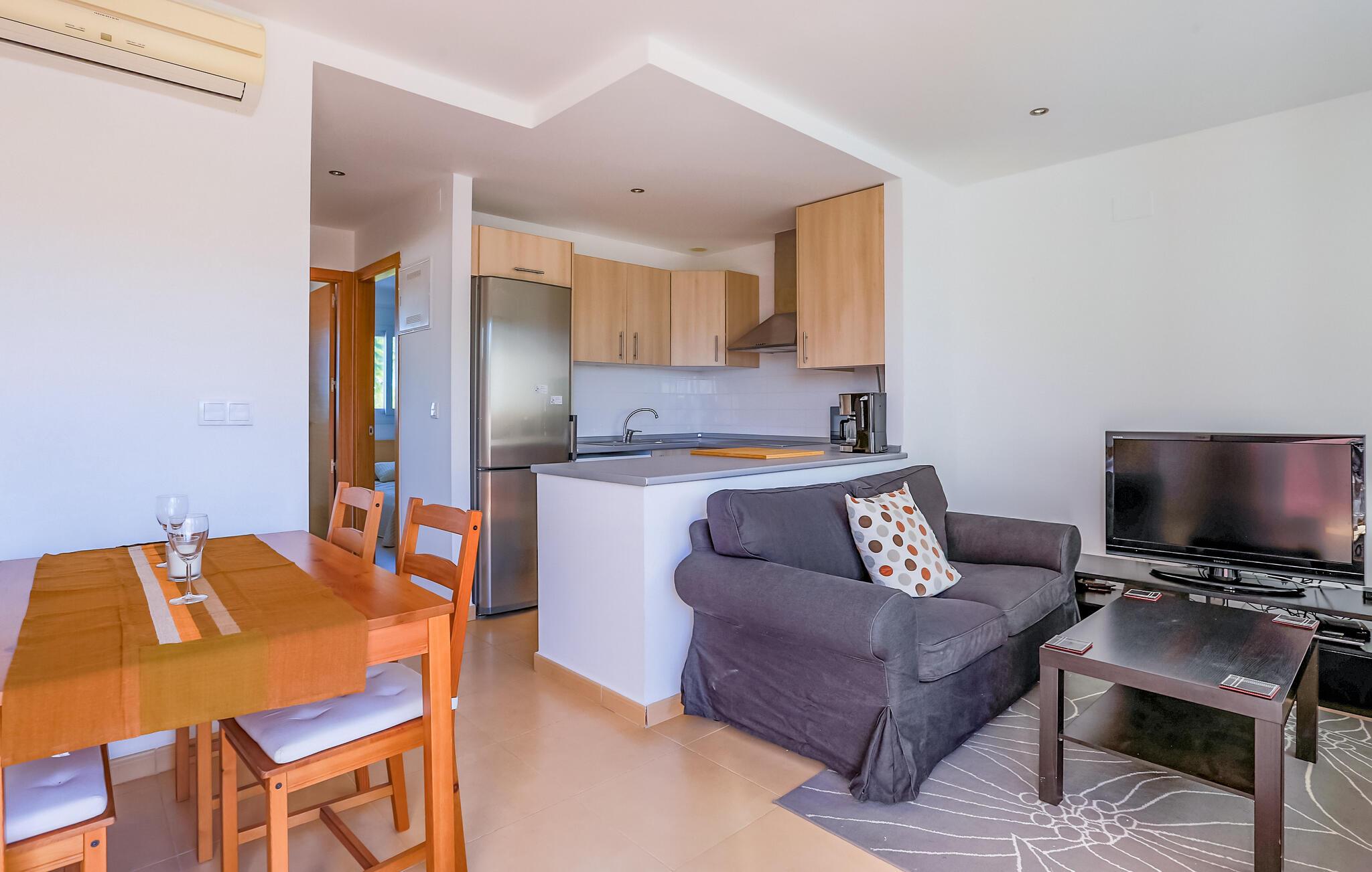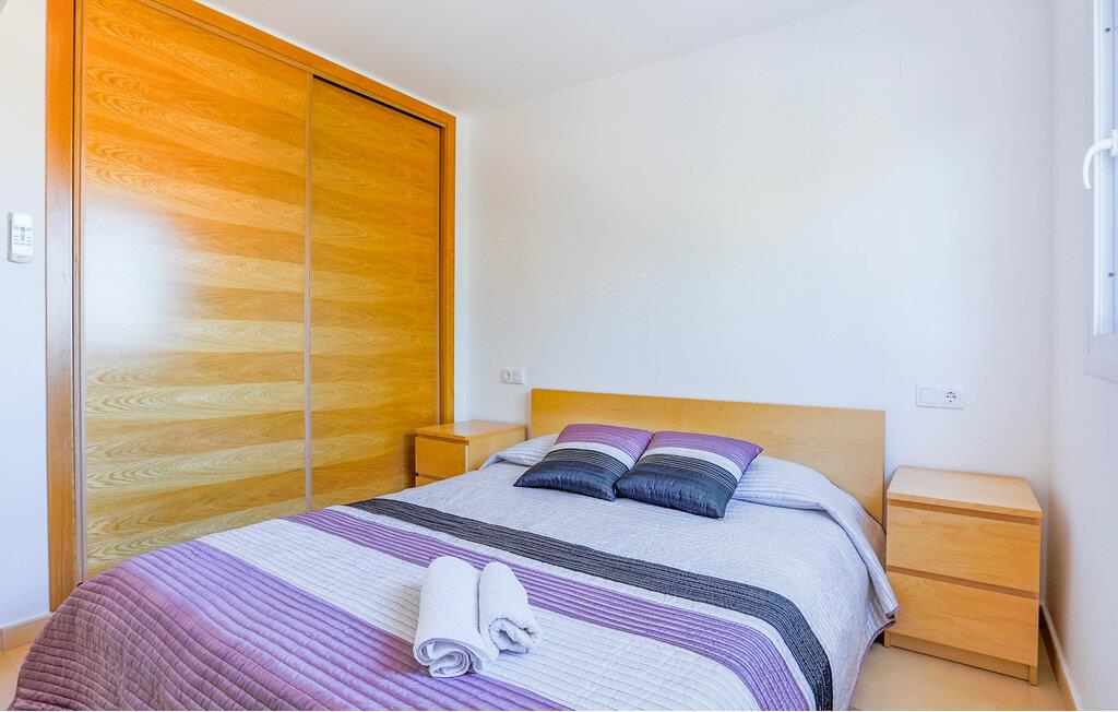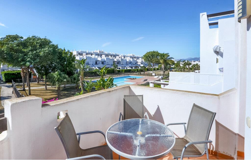 Denne lejlighed har adgang til en fælles pool og ligger meget tæt på golfbanen og i kort afstand fra strandene i Guadalentín. Den er derfor helt ideel, hvis I gerne vil spille golf og nyde naturen på jeres ferie. Boligen byder på en hyggelig og hjemlig atmosfære, hvor I ikke kan undgå at slappe af. Fra stuen er der adgang til altanen, hvor I kan spise morgenmad og nyde solens første stråler og duften af friskbrygget kaffe. Efter dagens golfdyst er der ikke noget bedre end at lade sig køle helt af i poolen.