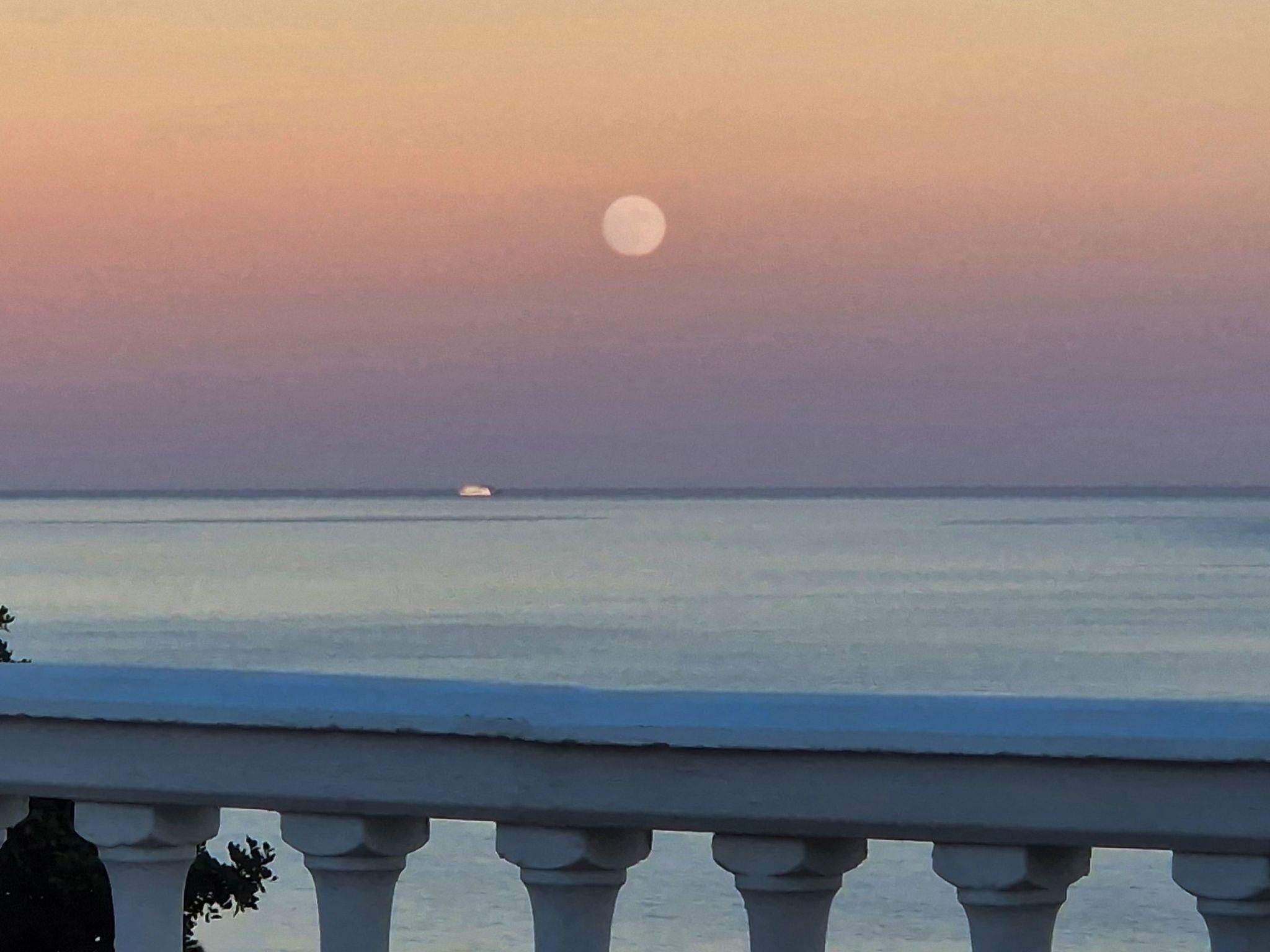 The terrace, private pool (10 x 6 m) and the bar area with barbecue adjoining the pool are located on the sea side with panoramic sea views and direct beach views.