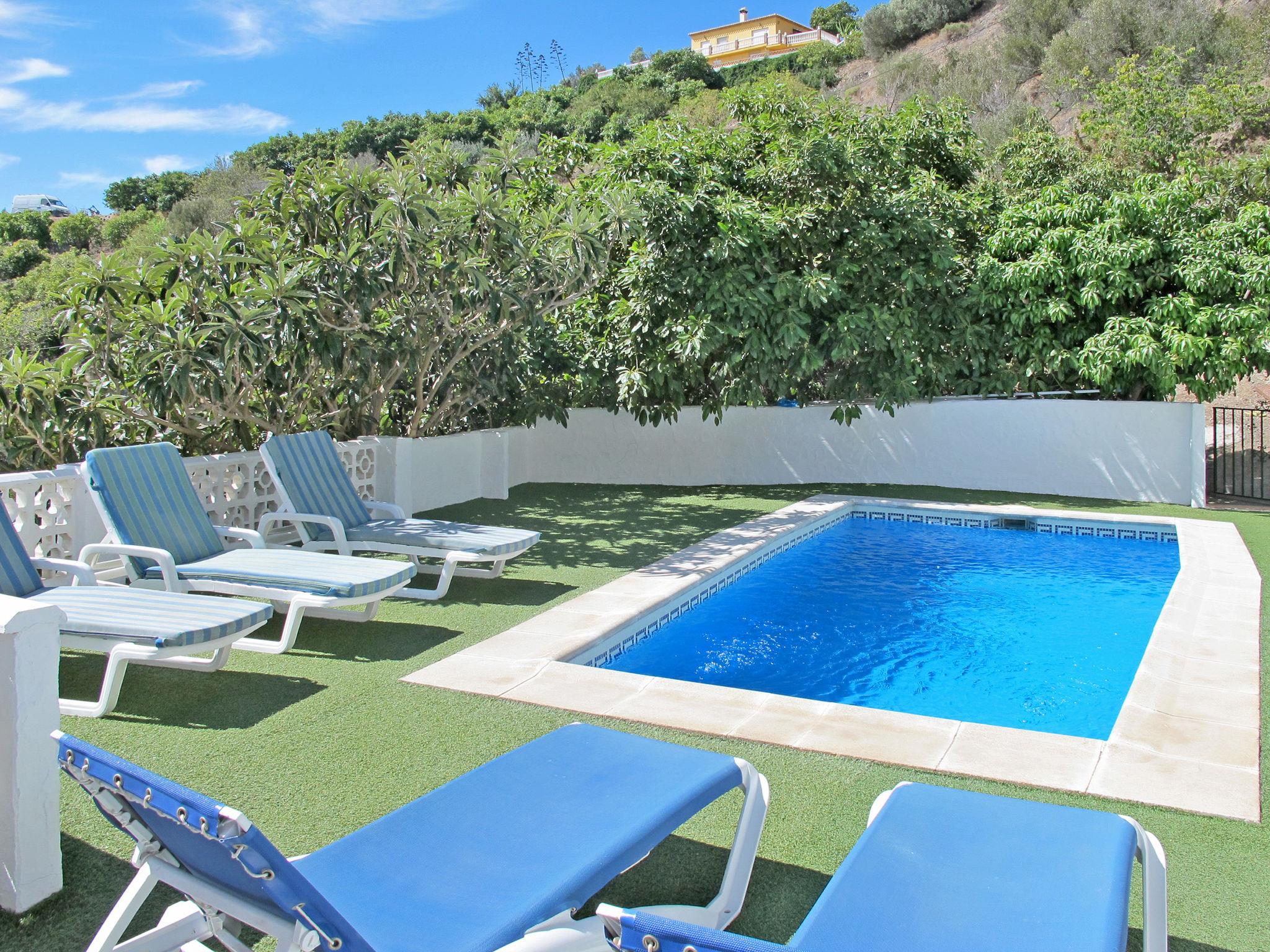 Cosy, comfortable farmhouse "El Zapo", surrounded by trees and meadows. 3 km from the centre of La Herradura, 4 km from the centre of Almuñécar, in a secluded, quiet, sunny position on a slope, 1.6 km from the sea. Private: property 4'000 m2 with wildlife garden and trees, orchard, swimming pool (6 x 3 m, depth 140 - 250 cm, seasonal availability: 20.Mar. - 01.Nov.). WC in the pool area, outdoor shower, barbecue. 250 m long bumpy, narrow motor access (via unmade road). Parking (for 2 cars) on the premises. Shop 3 km, restaurant 2 km, bus stop "Carretera de Almería" 4 km, pebble beach 1.6 km. Please note: car recommended. The owner does not accept any groups. The owner does not accept any youth groups.