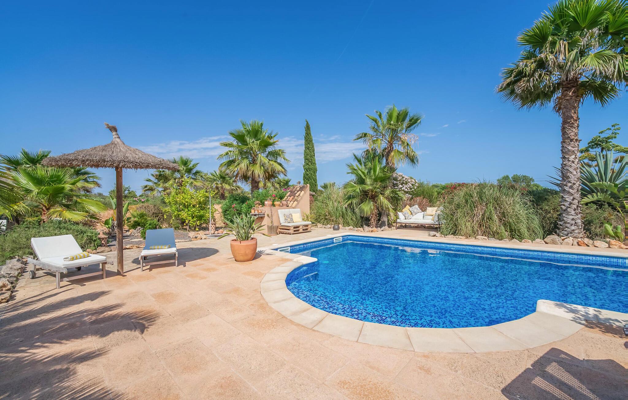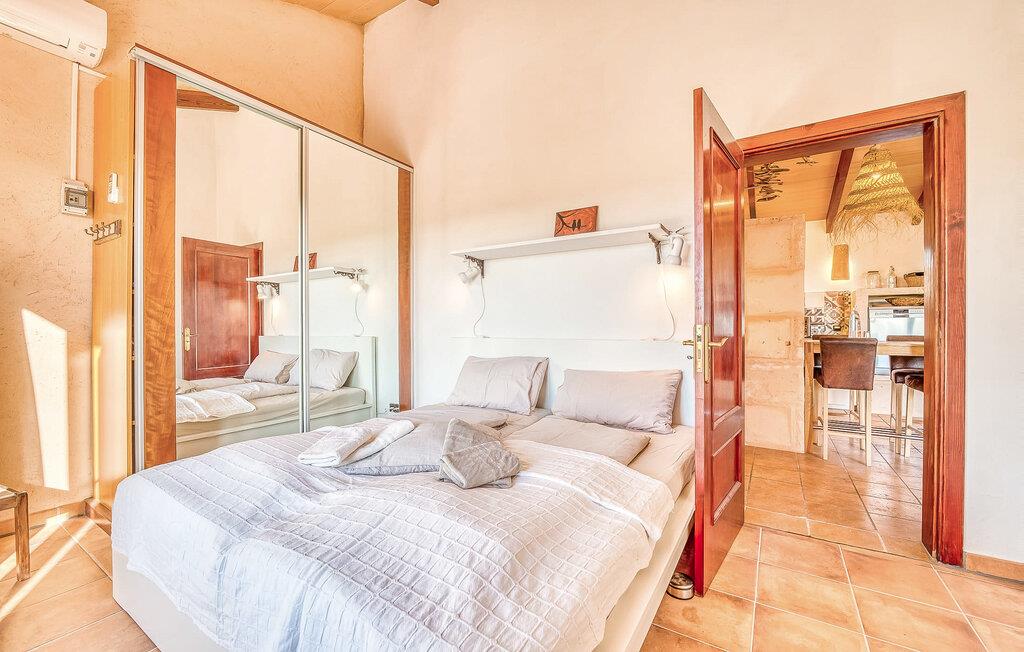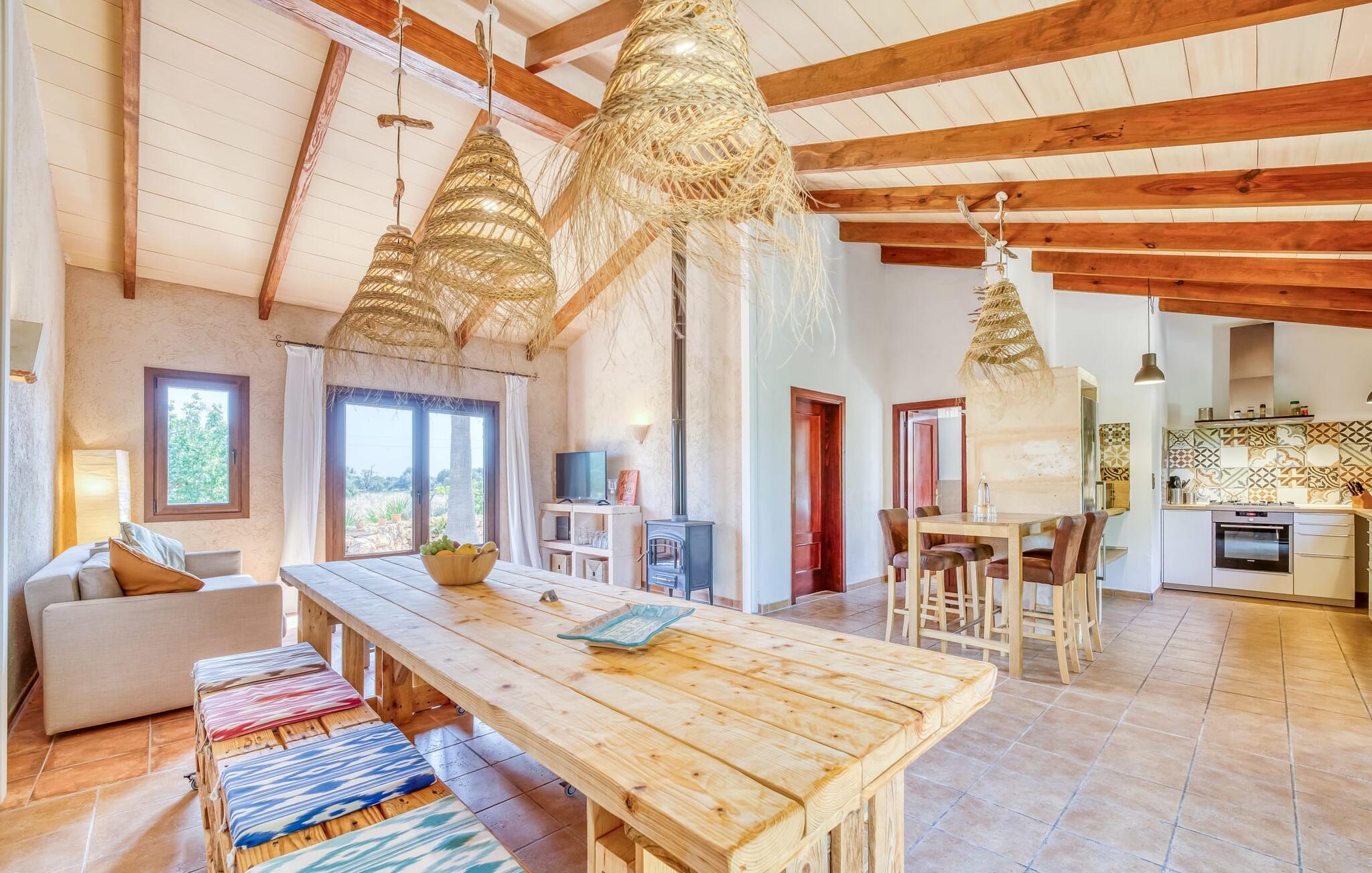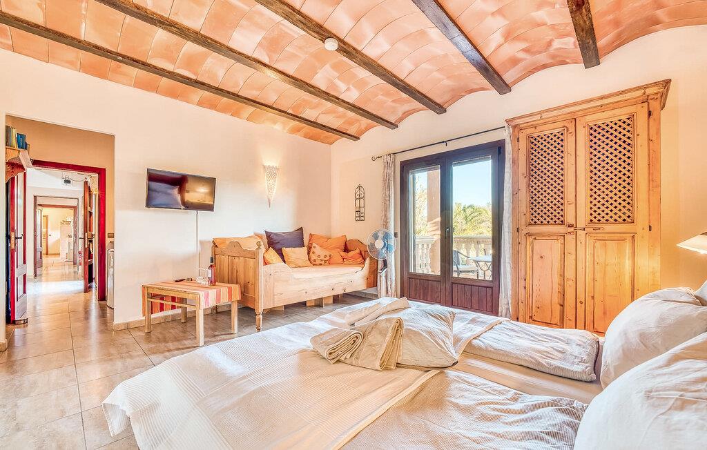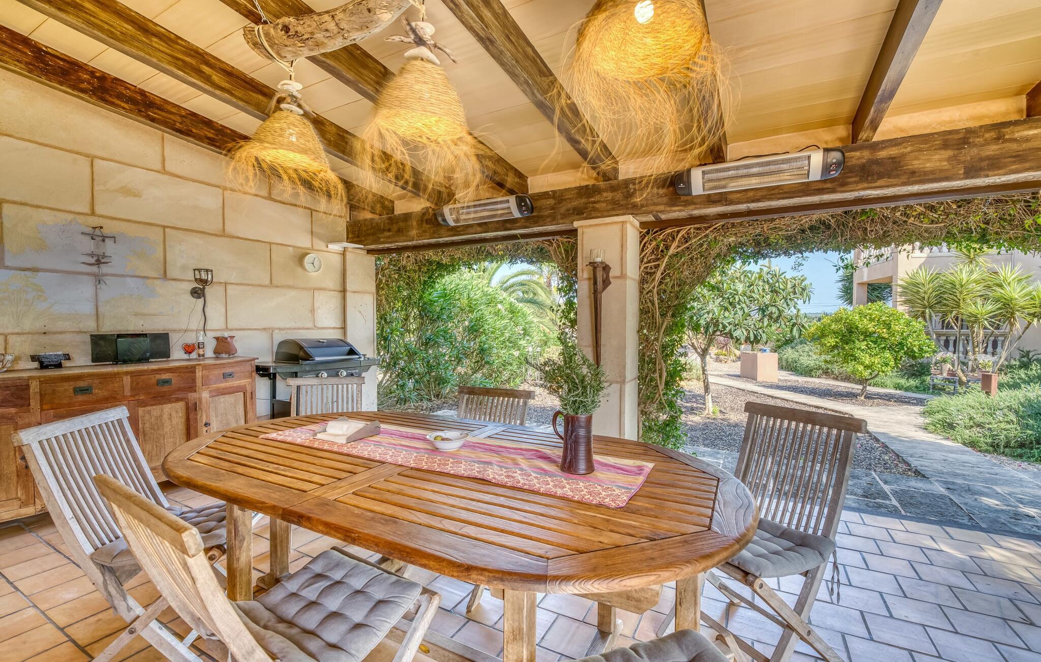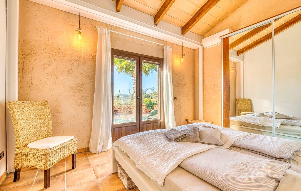 "Alqueria Fosca" er en fantastisk bondegård, smukt designet med kærlighed og sans for detaljer af sine venlige værter. Udendørsområdet er en fortryllende oase med palme-, appelsin- og mandeltræer, lyse bougainvillea og oleanderbuske. Udover mange afslappende steder finder I et loungeområde, skyggefulde siddepladser omgivet af grønne områder og komfortable liggestole ved den klorfrie pool, perfekt til at køle af og nyde feriehyggen. Et højdepunkt er det overdækkede udekøkken med grill, gasblus, vask og køleskab, samt en spiseplads, der giver følelsen af jeres egen private bodega. Talrige altaner og en tagterrasse tilbyder en fantastisk udsigt over denne smukke del af det sydlige Mallorca. De fem dobbeltværelser, alle udstyret med aircondition, åbner hver ud til en balkon. De fleste værelser har deres eget køleskab, masser af opbevaringsplads og et privat brusebad, hvilket gør "Alqueria Fosca" ideel til 10 personer. Hjemmets puristiske indretning bruger naturlige farver og materialer til at skabe en rolig atmosfære, med minimal udsmykning for at forstærke følelsen af sammenhæng med naturen. De rummelige opholds-, spise- og køkkenområder afspejler denne stil, og pejsen, gulvvarmen og hjemmekontorets egnethed gør dette landsted til et perfekt tilflugtssted året rundt. Landstedet "Alqueria Fosca" er indlejret i en oase-lignende have med poolområde og et fantastisk udekøkken. Det skønne feriehus har en førsteklasses beliggenhed lige syd for Campos, hvor I kan gøre jeres indkøb. Drømmestranden Es Trenc ligger kun 15 minutter væk i bil.