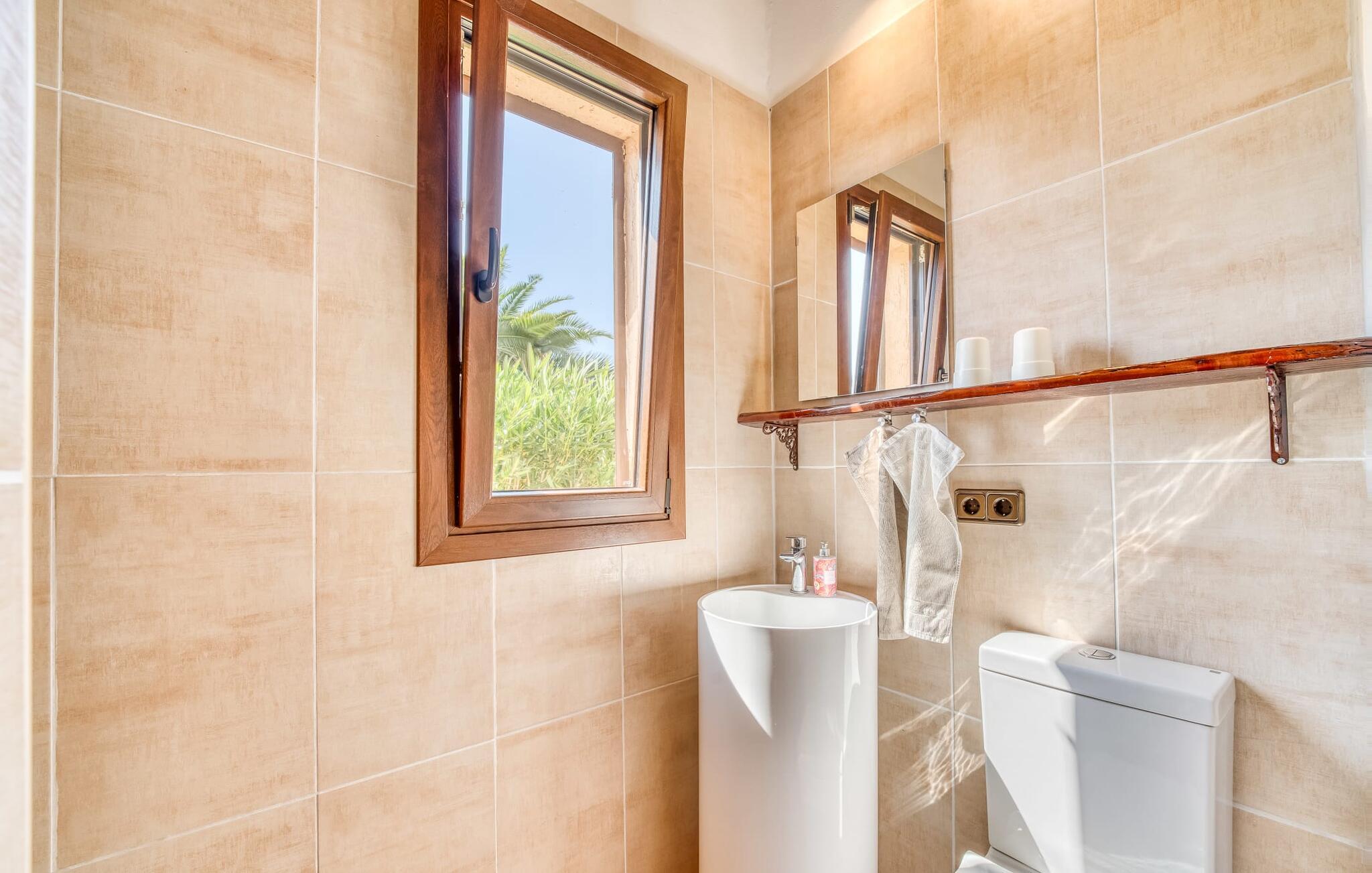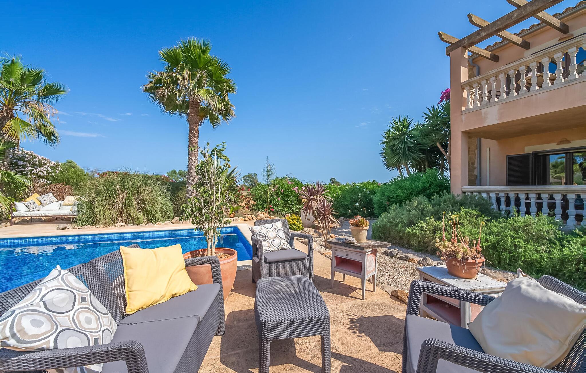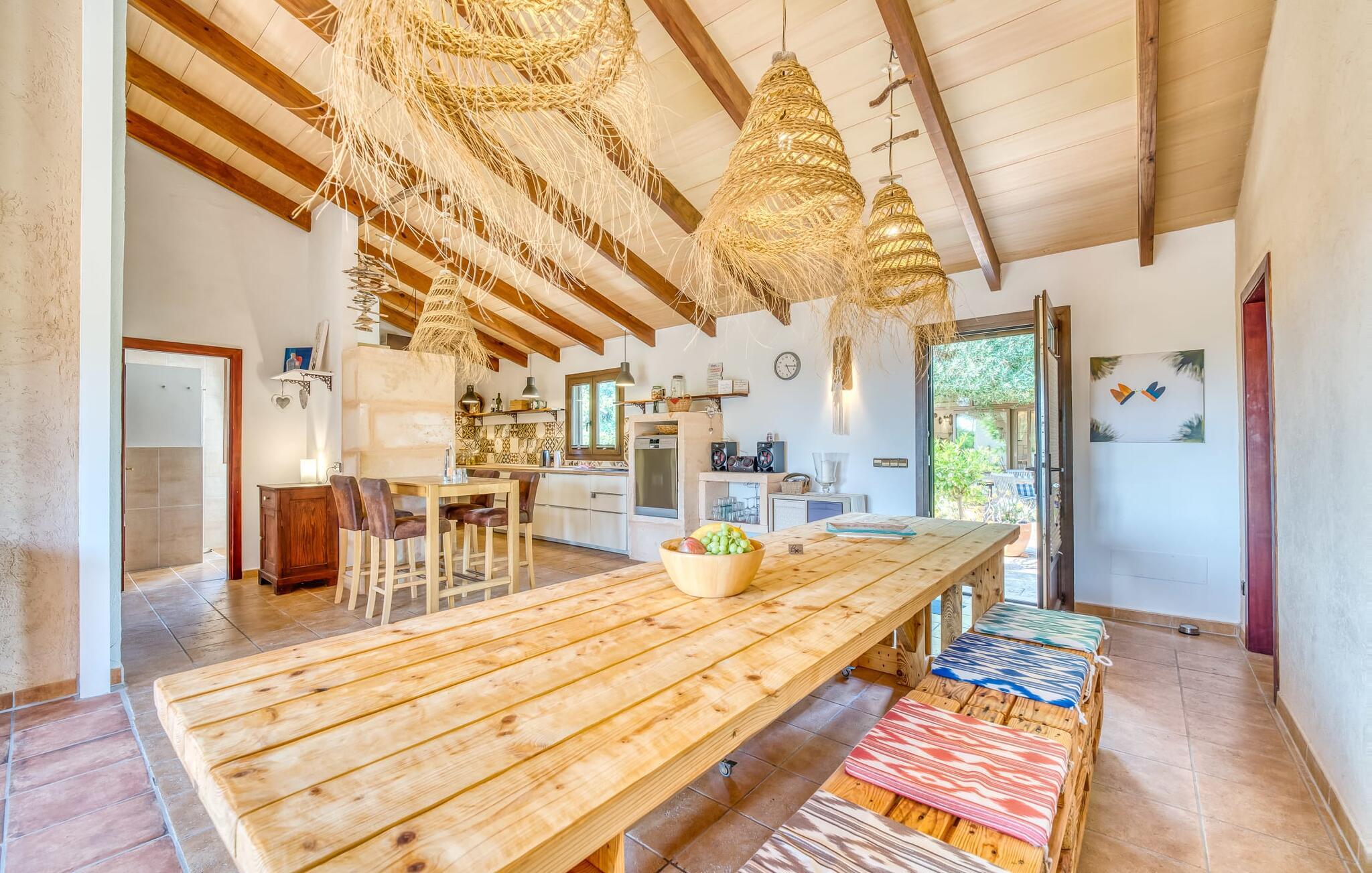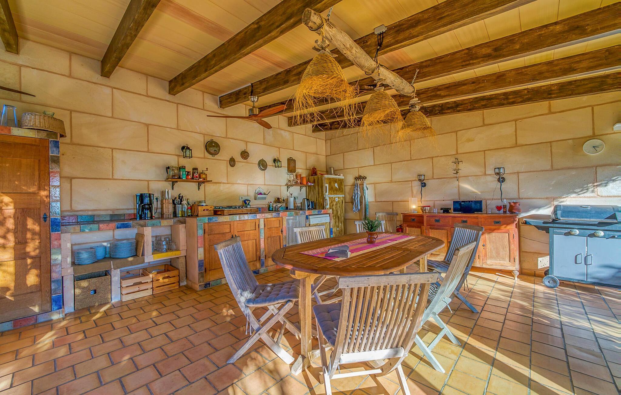 "Alqueria Fosca" er en fantastisk bondegård, smukt designet med kærlighed og sans for detaljer af sine venlige værter. Udendørsområdet er en fortryllende oase med palme-, appelsin- og mandeltræer, lyse bougainvillea og oleanderbuske. Udover mange afslappende steder finder I et loungeområde, skyggefulde siddepladser omgivet af grønne områder og komfortable liggestole ved den klorfrie pool, perfekt til at køle af og nyde feriehyggen. Et højdepunkt er det overdækkede udekøkken med grill, gasblus, vask og køleskab, samt en spiseplads, der giver følelsen af jeres egen private bodega. Talrige altaner og en tagterrasse tilbyder en fantastisk udsigt over denne smukke del af det sydlige Mallorca. De fem dobbeltværelser, alle udstyret med aircondition, åbner hver ud til en balkon. De fleste værelser har deres eget køleskab, masser af opbevaringsplads og et privat brusebad, hvilket gør "Alqueria Fosca" ideel til 10 personer. Hjemmets puristiske indretning bruger naturlige farver og materialer til at skabe en rolig atmosfære, med minimal udsmykning for at forstærke følelsen af sammenhæng med naturen. De rummelige opholds-, spise- og køkkenområder afspejler denne stil, og pejsen, gulvvarmen og hjemmekontorets egnethed gør dette landsted til et perfekt tilflugtssted året rundt. Landstedet "Alqueria Fosca" er indlejret i en oase-lignende have med poolområde og et fantastisk udekøkken. Det skønne feriehus har en førsteklasses beliggenhed lige syd for Campos, hvor I kan gøre jeres indkøb. Drømmestranden Es Trenc ligger kun 15 minutter væk i bil.