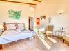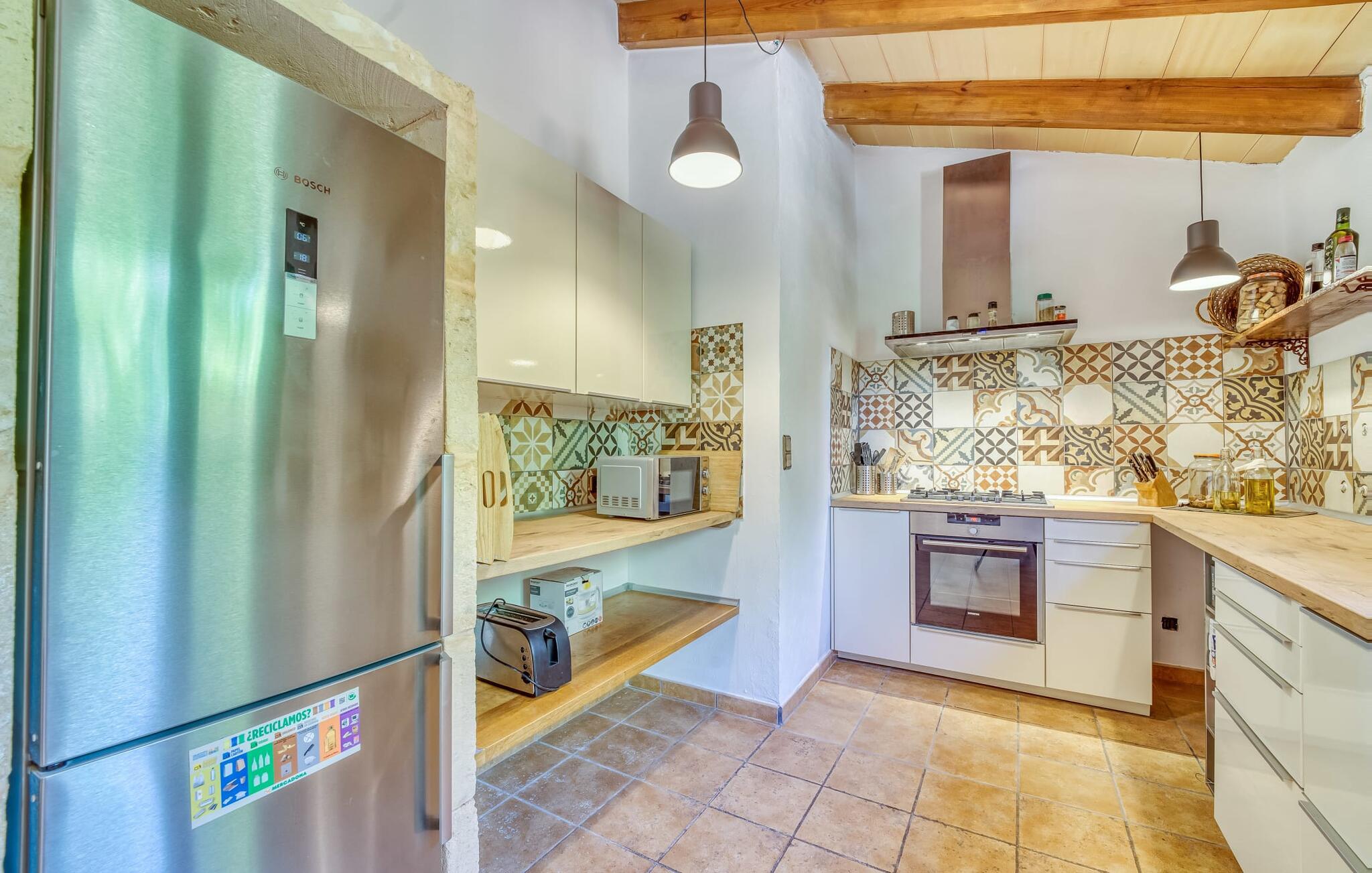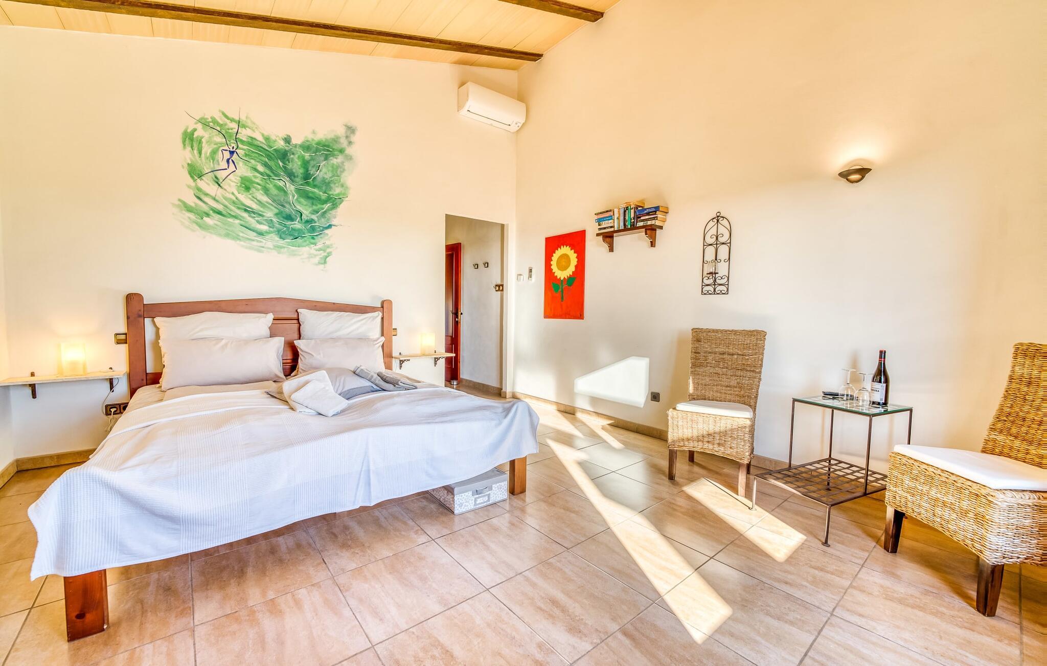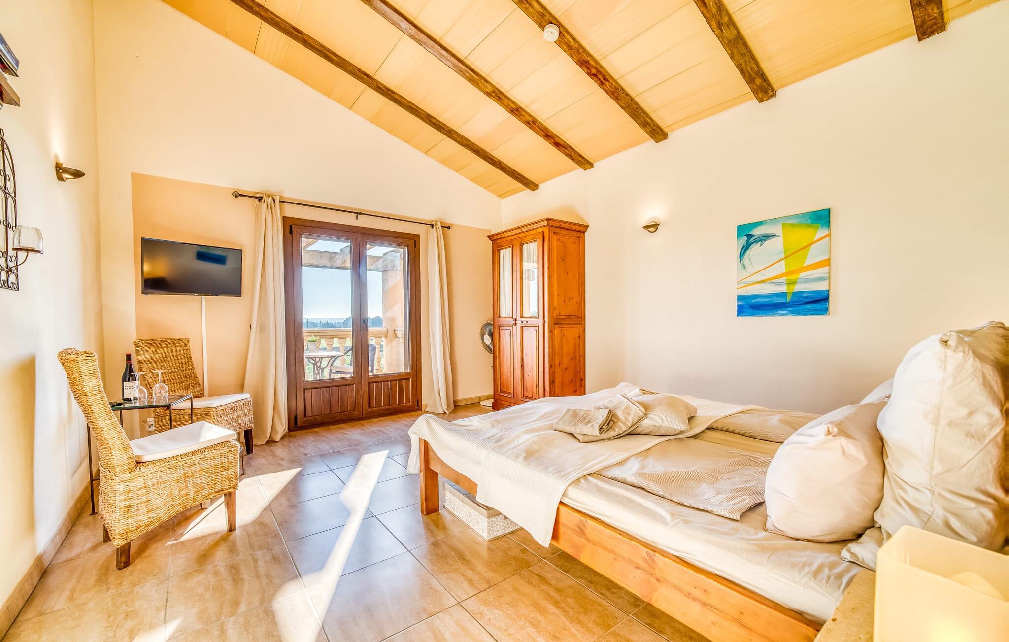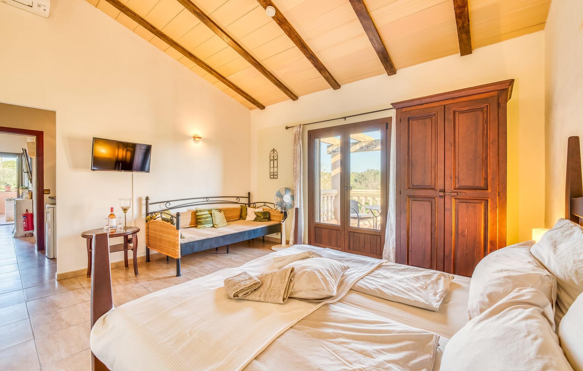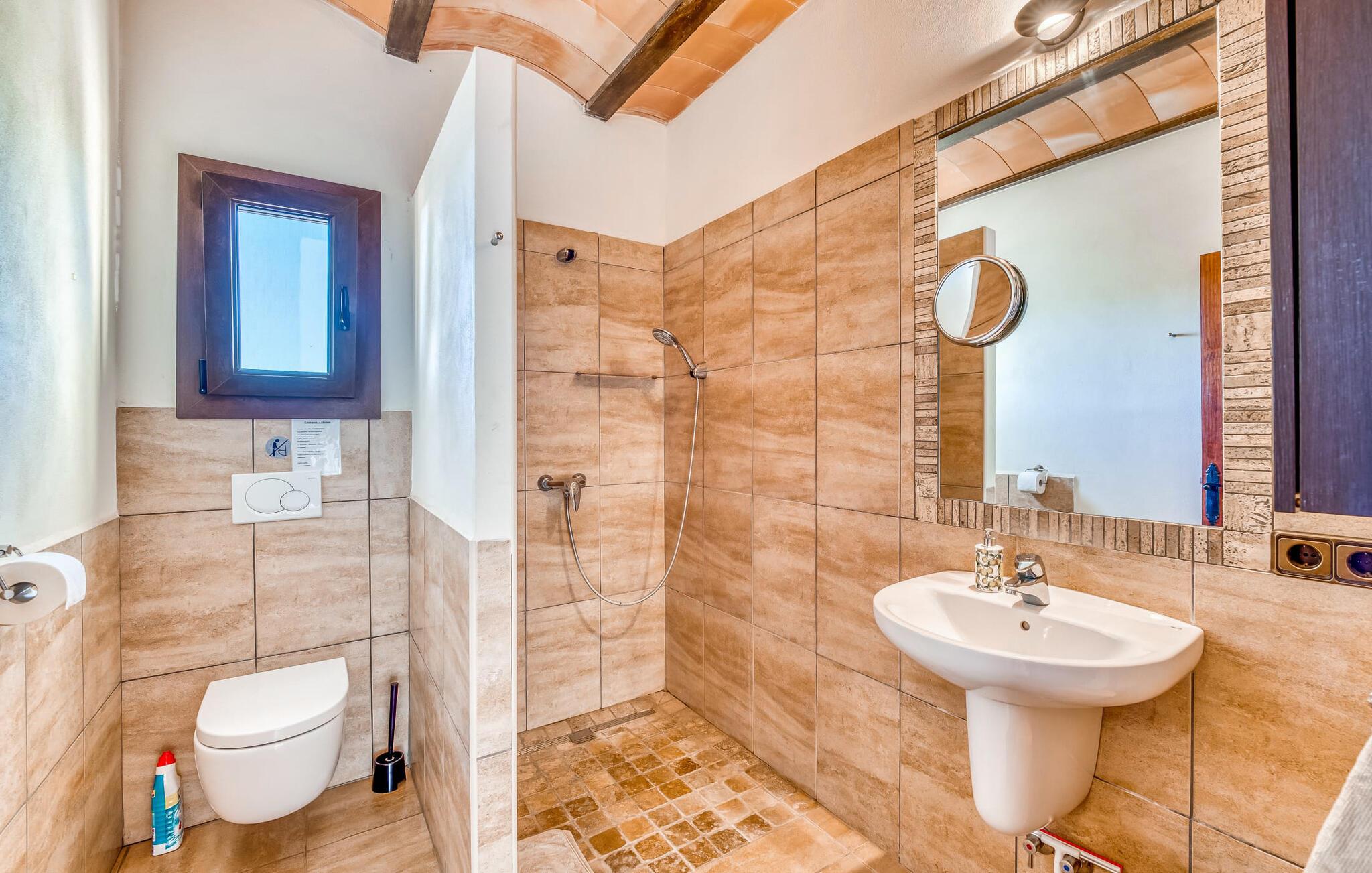 "Alqueria Fosca" er en fantastisk bondegård, smukt designet med kærlighed og sans for detaljer af sine venlige værter. Udendørsområdet er en fortryllende oase med palme-, appelsin- og mandeltræer, lyse bougainvillea og oleanderbuske. Udover mange afslappende steder finder I et loungeområde, skyggefulde siddepladser omgivet af grønne områder og komfortable liggestole ved den klorfrie pool, perfekt til at køle af og nyde feriehyggen. Et højdepunkt er det overdækkede udekøkken med grill, gasblus, vask og køleskab, samt en spiseplads, der giver følelsen af jeres egen private bodega. Talrige altaner og en tagterrasse tilbyder en fantastisk udsigt over denne smukke del af det sydlige Mallorca. De fem dobbeltværelser, alle udstyret med aircondition, åbner hver ud til en balkon. De fleste værelser har deres eget køleskab, masser af opbevaringsplads og et privat brusebad, hvilket gør "Alqueria Fosca" ideel til 10 personer. Hjemmets puristiske indretning bruger naturlige farver og materialer til at skabe en rolig atmosfære, med minimal udsmykning for at forstærke følelsen af sammenhæng med naturen. De rummelige opholds-, spise- og køkkenområder afspejler denne stil, og pejsen, gulvvarmen og hjemmekontorets egnethed gør dette landsted til et perfekt tilflugtssted året rundt. Landstedet "Alqueria Fosca" er indlejret i en oase-lignende have med poolområde og et fantastisk udekøkken. Det skønne feriehus har en førsteklasses beliggenhed lige syd for Campos, hvor I kan gøre jeres indkøb. Drømmestranden Es Trenc ligger kun 15 minutter væk i bil.