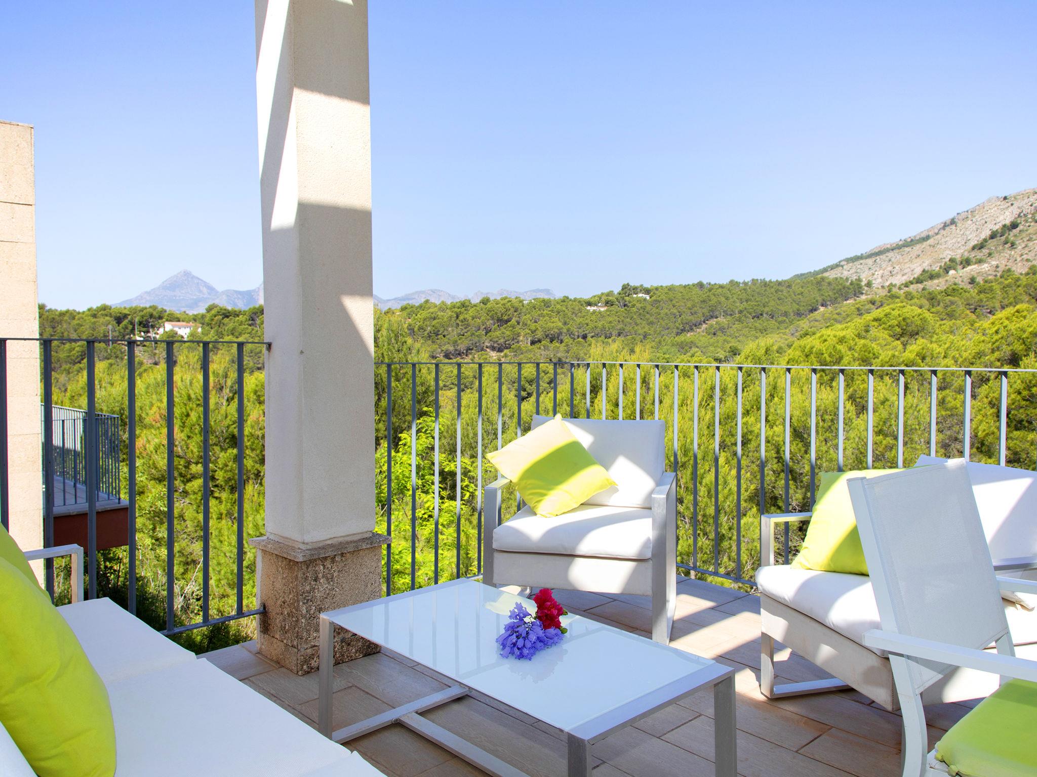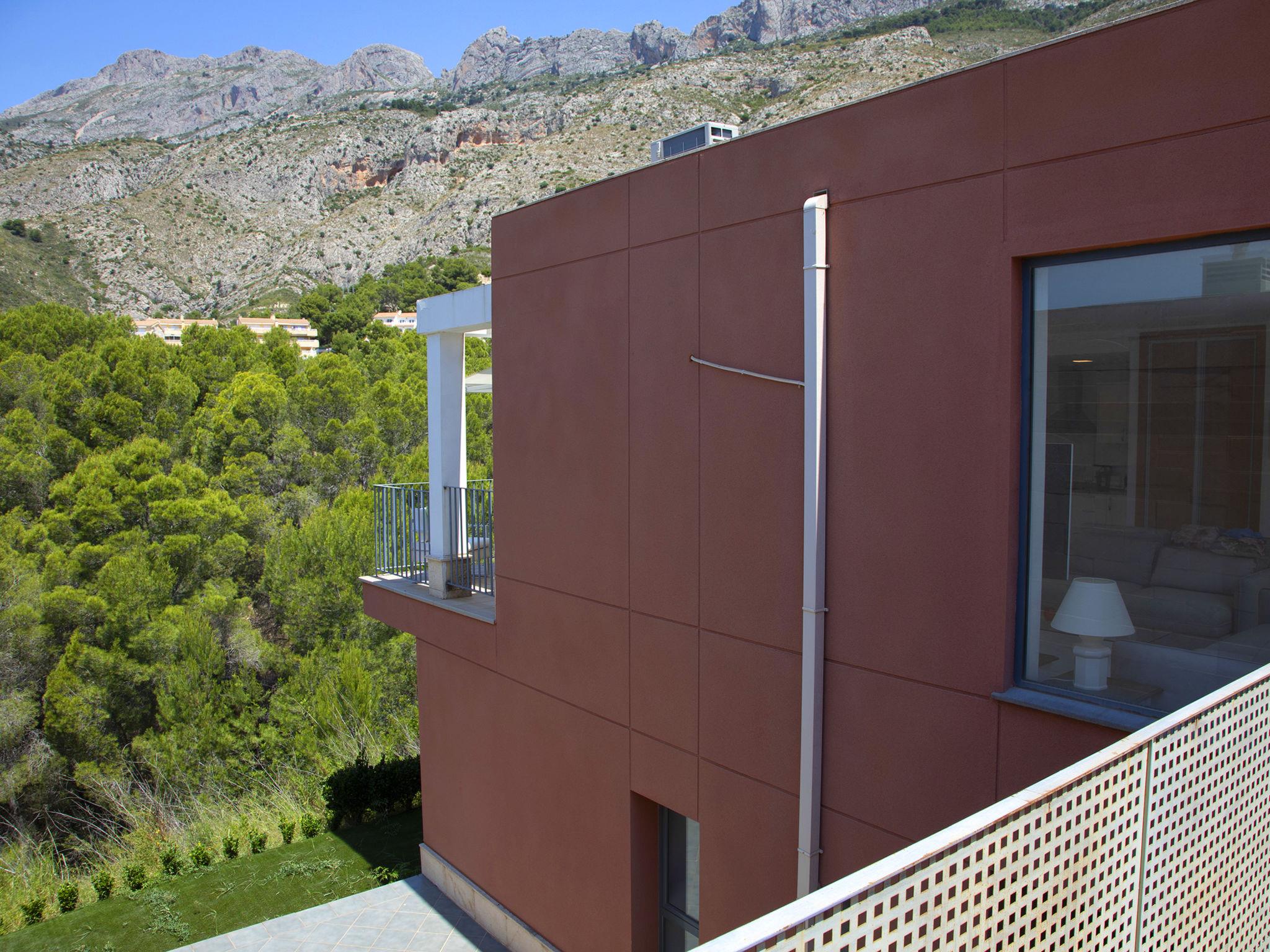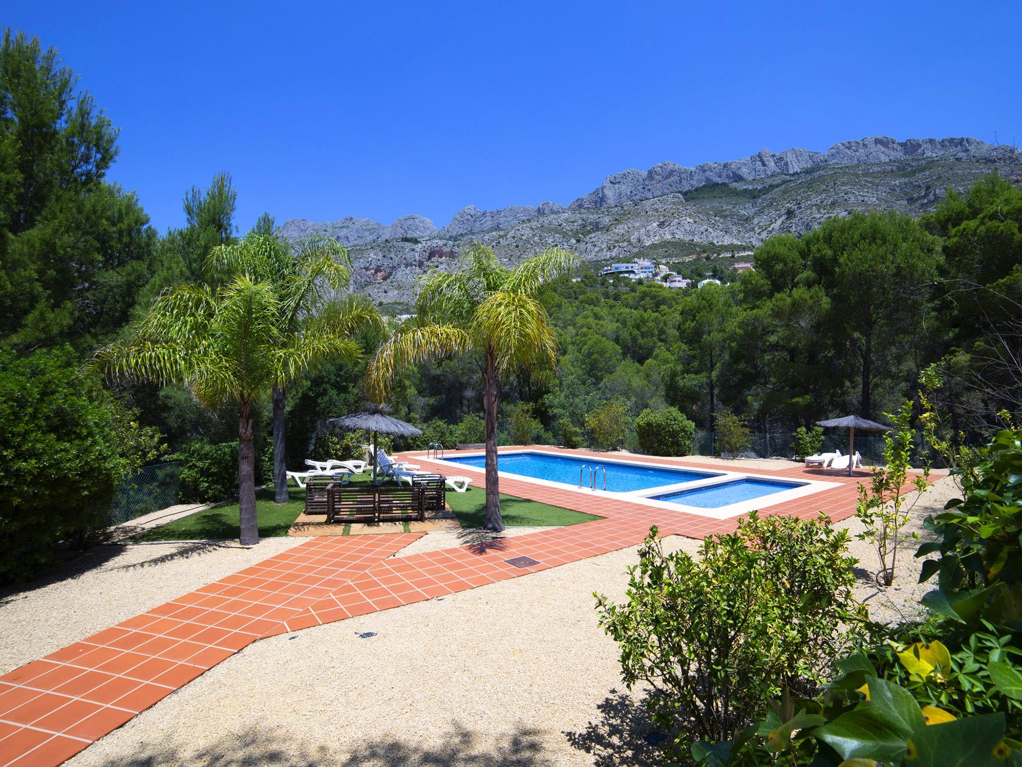 Modern, beautiful terraced house "Mont Verd", 2 storeys. 16 houses in the resort. On the outskirts, 6 km from the centre of Altea, in a quiet position residential area (villas), traffic calmed area, 4 km from the sea, 4 km from the beach. For shared use: property (fenced), garden, swimming pool (10 x 6 m, seasonal availability: 01.Jan. - 31.Dec.). Children's pool, outdoor shower. Supermarket 2 km, restaurant 2 km, bus stop 2.2 km, rocky beach "Playa L´Olla" 4 km. Sports harbour 5 km, marina 7 km, golf course (9 hole) 2.3 km. Nearby attractions: Aqualandia Benidorm 20 km, Mundomar Benidorm 19 km, Terra Mitica Benidorm 22 km, Terra Natura Benidorm 19 km, Guadalest 22 km, Fuentes del Algar 14 km. Please note: car recommended. The owner does not accept any youth groups.