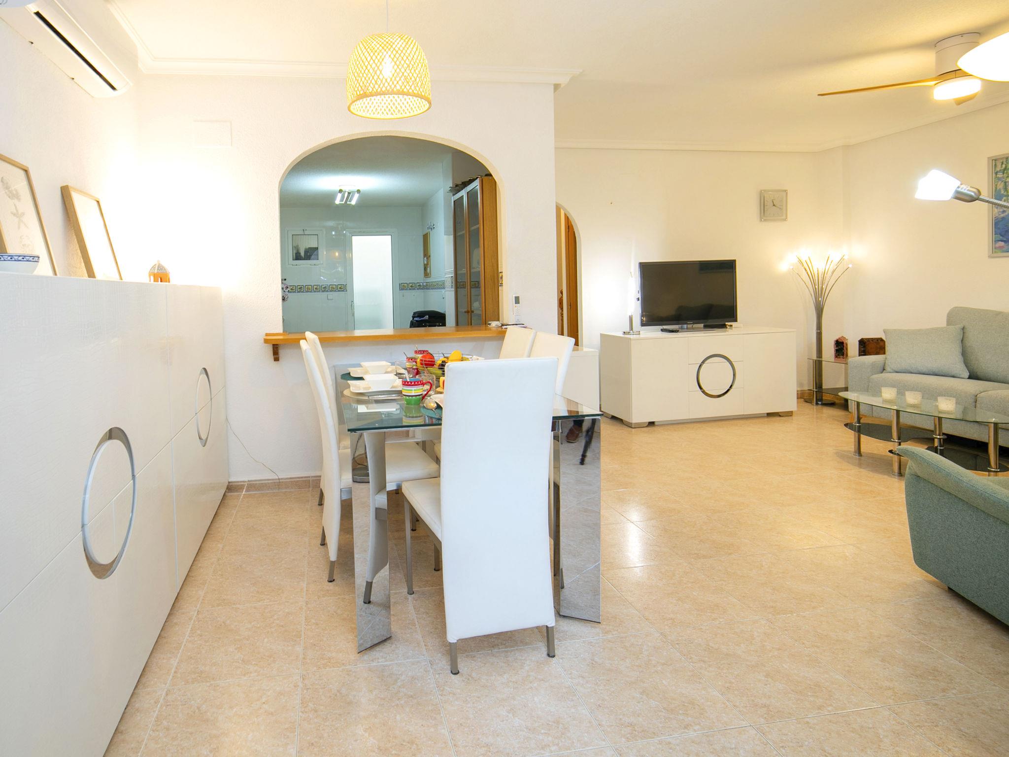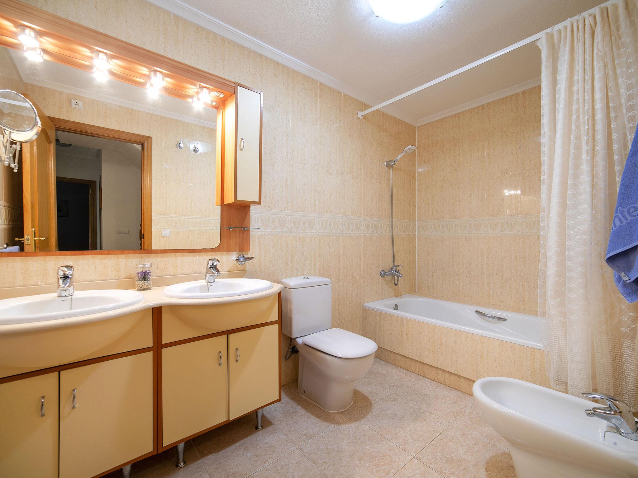 "Ca Rossinyol", 4-room apartment 115 m2 on 2 levels, on the ground floor. Object suitable for 4 adults + 2 children. Spacious and bright, comfortable and cosy furnishings: living/dining room with digital TV, air conditioning, fan and forced-air heating. Exit to the terrace. Kitchen (oven, dishwasher, 4 ceramic glass hob hotplates, toaster, kettle, microwave, electric coffee machine). Shower/WC. Upper floor: 1 room with 1 french bed (1 x 180 cm, length 200 cm), air conditioning and fan. Exit to the terrace. 1 room with 1 french bed (1 x 160 cm, length 200 cm), air conditioning and fan. 1 room with 2 beds (80 cm, length 200 cm), air conditioning and fan. Exit to the terrace. Bath/bidet/WC, double hand-basin. Terrace furniture, barbecue. Beautiful view of the resort. Facilities: washing machine, dryer, iron, children's high chair, baby cot for up to 2 year olds, hair dryer. Internet (WiFi, free). Parking space n 31 (roofed). Please note: non-smoking house. CV-VUT0518506-A // Reg. Nr.: ESFCTU0000030530003271860000000000000CV-VUT0518506-A2