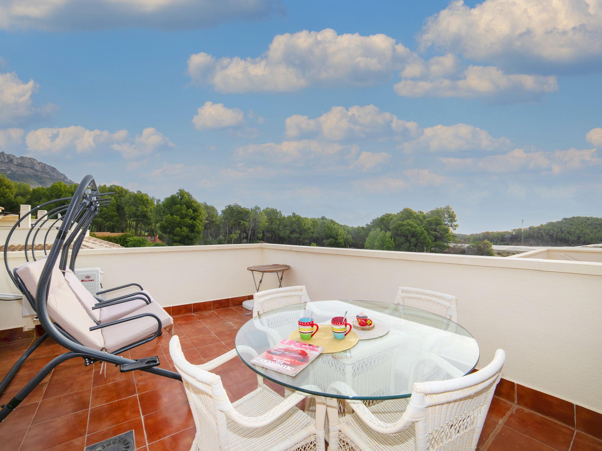 Santa Clara: Beautiful resort "Altea Natura". 2.3 km from the centre of Altea la Vieja, 5 km from the sea. For shared use: swimming pool (18 x 9 m, depth 90 - 180 cm, seasonal availability: 01.May. - 30.Oct.). WC in the pool area, shower/WC in the pool area, outdoor shower. Private: property (fenced), garden. In the house: sauna, fitness room. Supermarket 2 km, restaurant 2 km, bar 2 km, bus stop 2 km, pebble beach 5 km. Sports harbour 5 km, marina 5 km, golf course 3.7 km. Nearby attractions: Aqualandia, Mundomar, Terra Mítica, Terra Natura, y Benidorm Palace (Benidorm). The owner does not accept any youth groups. From October to May, the swimming pool will be covered and heated.