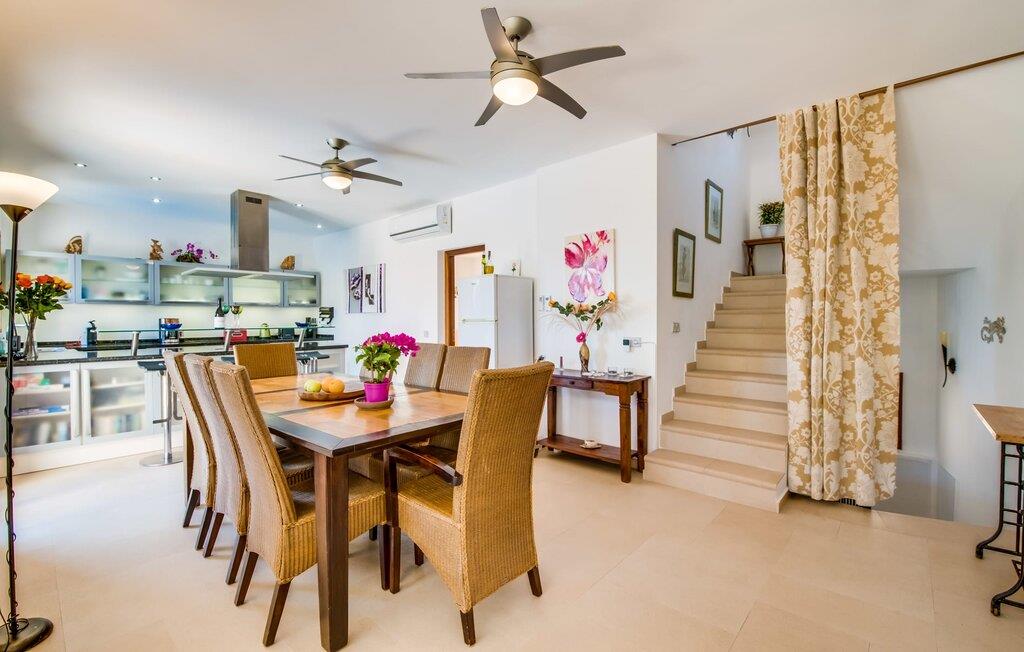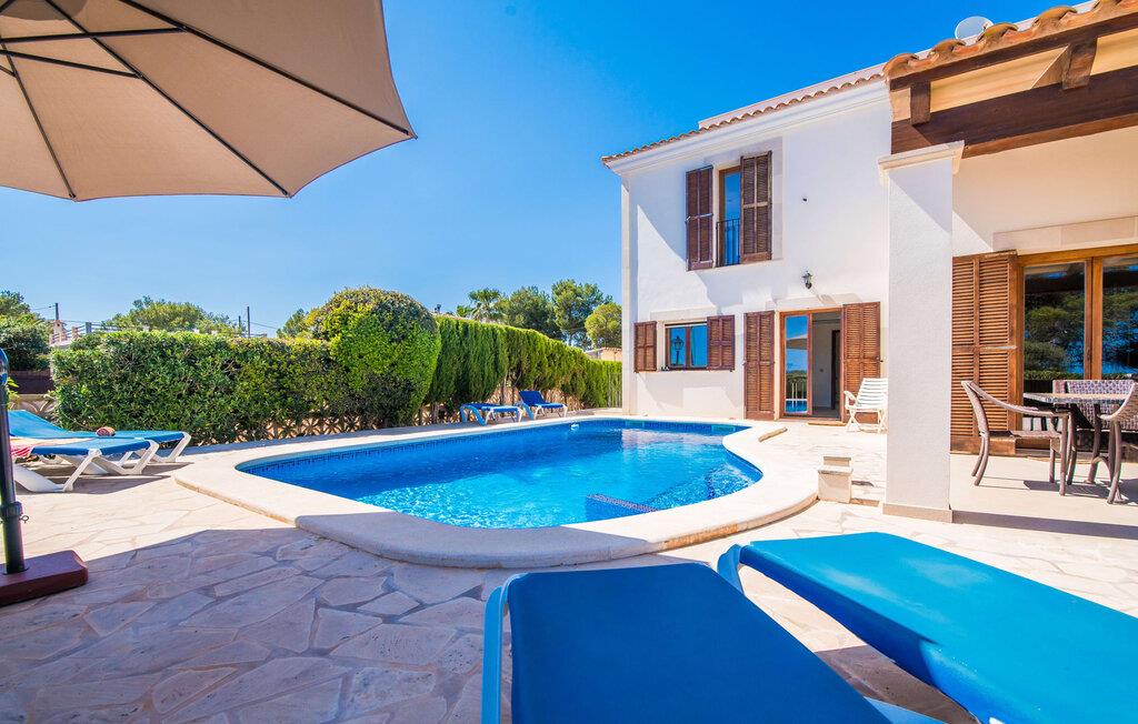 Denne typiske mallorcanske finca "Amarador" tilbyder en betagende udsigt over havet og er beliggende i hjertet af S'Amarador Natural Park, beliggende mellem kystklipper og sandstrande. Parkeringspladser er bekvemt placeret lige foran døren. Den smukke have og terrasse inviterer jer til at slappe af, med forskellige delvist overdækkede områder perfekt til afslapning. Den runde pool, dekoreret med en delfinmosaik, har et moderne lyssystem til magiske aftener. Efter svømning kan I slappe af på liggestolene. En overdækket grillplads giver den perfekte plads til al fresco spisning. Tagterrassen byder på en betagende panoramaudsigt over havet, poolen og bjergene, perfekt til uforglemmelige aftener. Indenfor sikrer villaens luksuriøse faciliteter et behageligt ophold. Den rummelige opholdsstue i åbent plan er ideel til at slappe af, se en film eller nyde et måltid, mens det moderne køkken er fuldt udstyret til ferie. Tre indbydende soveværelser med dobbeltsenge og tre badeværelser garanterer privatlivets fred og gør denne villa perfekt til par eller små familier. Denne villa har en rolig beliggenhed på første linje af havet på Mallorcas sydkyst. Det byder på en fantastisk udsigt over det dybe blå hav lige foran huset samt klipperne spredt ud ved siden af. Santanyí (10 minutter væk i bil) byder på gode indkøbsmuligheder til hverdagsbehov samt adskillige fremragende restauranter og barer. Den utrolige fiskerihavn Cala Figuera med sine indkøbsmuligheder, restauranter og barer ligger kun 7 minutter væk i bil. De smukkeste naturlige sandstrande på Mallorca ligger kun få minutter væk i bil. Området omkring villaen er perfekt til cykling langs kysten.