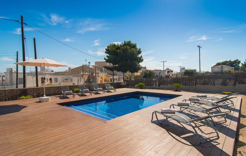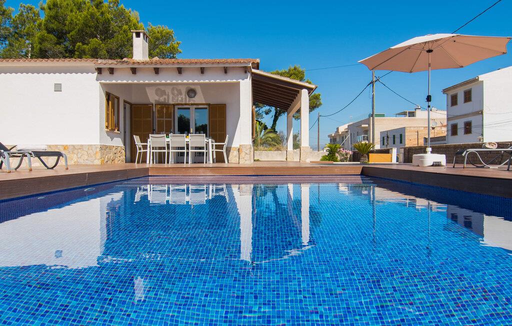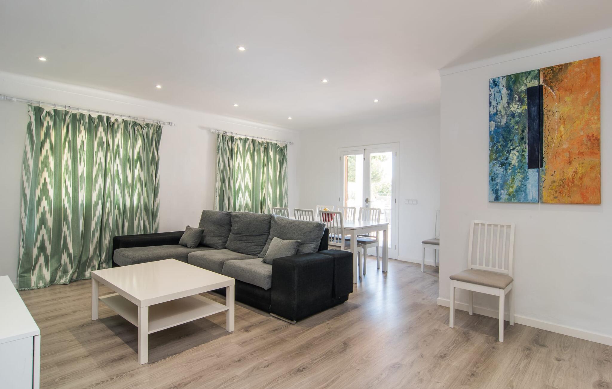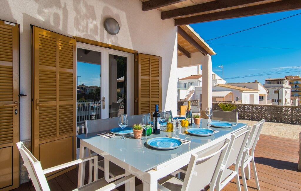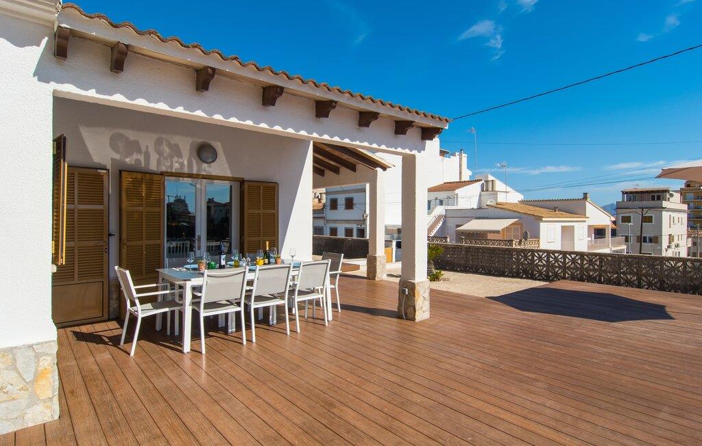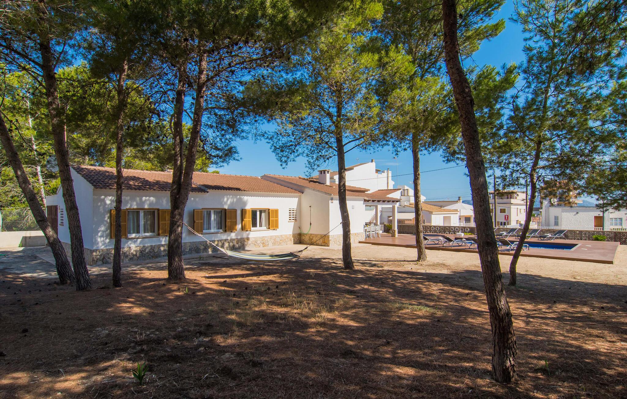 Tæt på stranden, med en barfodet følelse og havudsigt, er villaen "Anglesos" jeres perfekte feriedrøm, der går i opfyldelse. På næsten 1.200 m² tilbyder denne ejendom en række muligheder for afslapning under den mallorcanske himmel. Nyd terrassen ved huset, solterrassen ved poolen eller de naturlige sandområder, alle udstyret med stole, liggestole og hængekøjer til lange timers fritid. Poolen med brede trin og lyseblå mosaikfliser, suppleret med en praktisk udendørs bruser, sikrer forfriskende kølighed på varme dage. Om aftenen samles I til en grill og laver middelhavsdelikatesser, mens andre tilbereder deres yndlingsdrinks. Denne et-etagers villa kan rumme op til otte gæster i venlige og praktiske omgivelser. Interiøret imponerer med en klar, diskret atmosfære med hvide toner og kontrasterende accenter. Den åbne stue/spisestue har en rummelig sofa og et stort bord, mens det fuldt udstyrede køkken har direkte adgang til terrassen. Med fire soveværelser og tre badeværelser (to en suite), er privatlivets fred garanteret. Denne villa er et fremragende feriehus på Mallorca, der kombinerer fremragende infrastruktur og nærhed til havet uden at gå på kompromis med komforten - næsten som et bondehus, lige i hjertet af byen! Velkommen til villaen "Anglesos", i udkanten af Can Picafort, det populære feriested i det nordlige Mallorca. Flere nærliggende restauranter, barer og diskoteker ser frem til jeres besøg, ligesom det ugentlige marked om fredagen og den smukke strandpromenade. Næsten hele landsbyen er omgivet af en lang sandstrand, og andre strande er også nemme at nå.