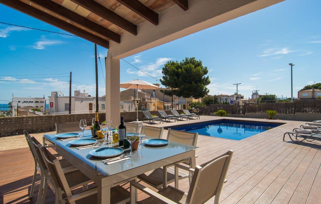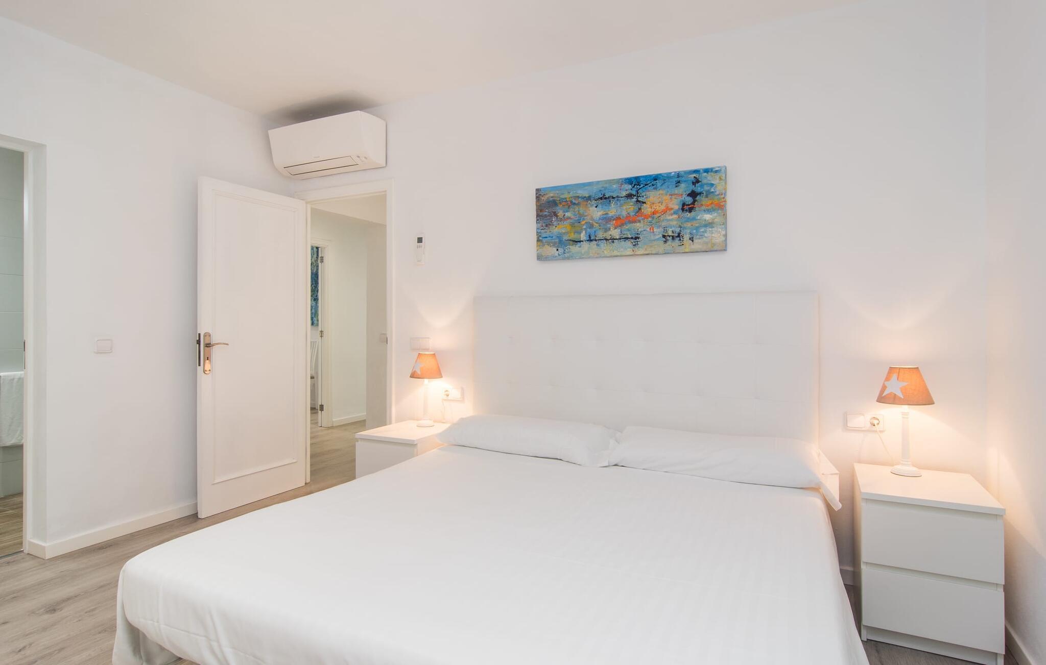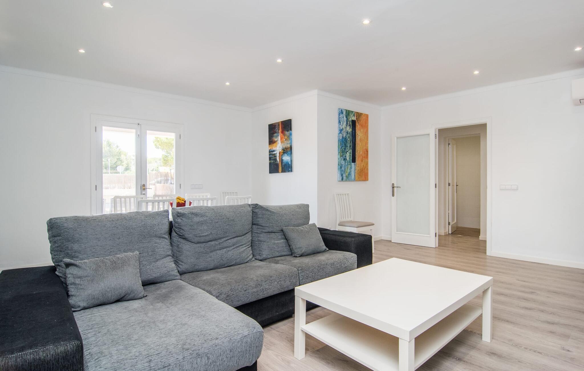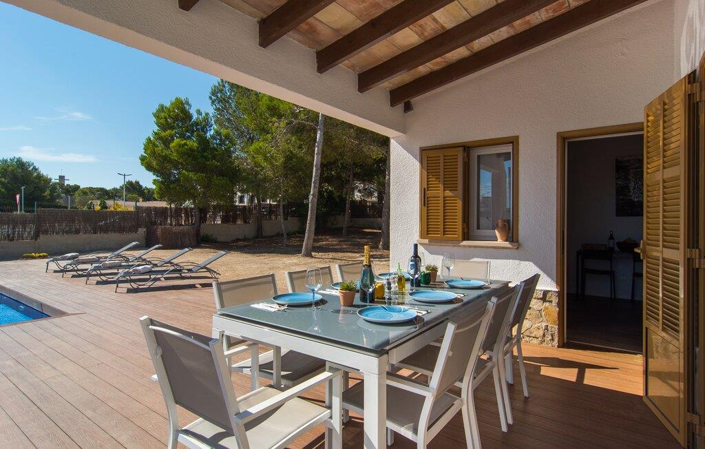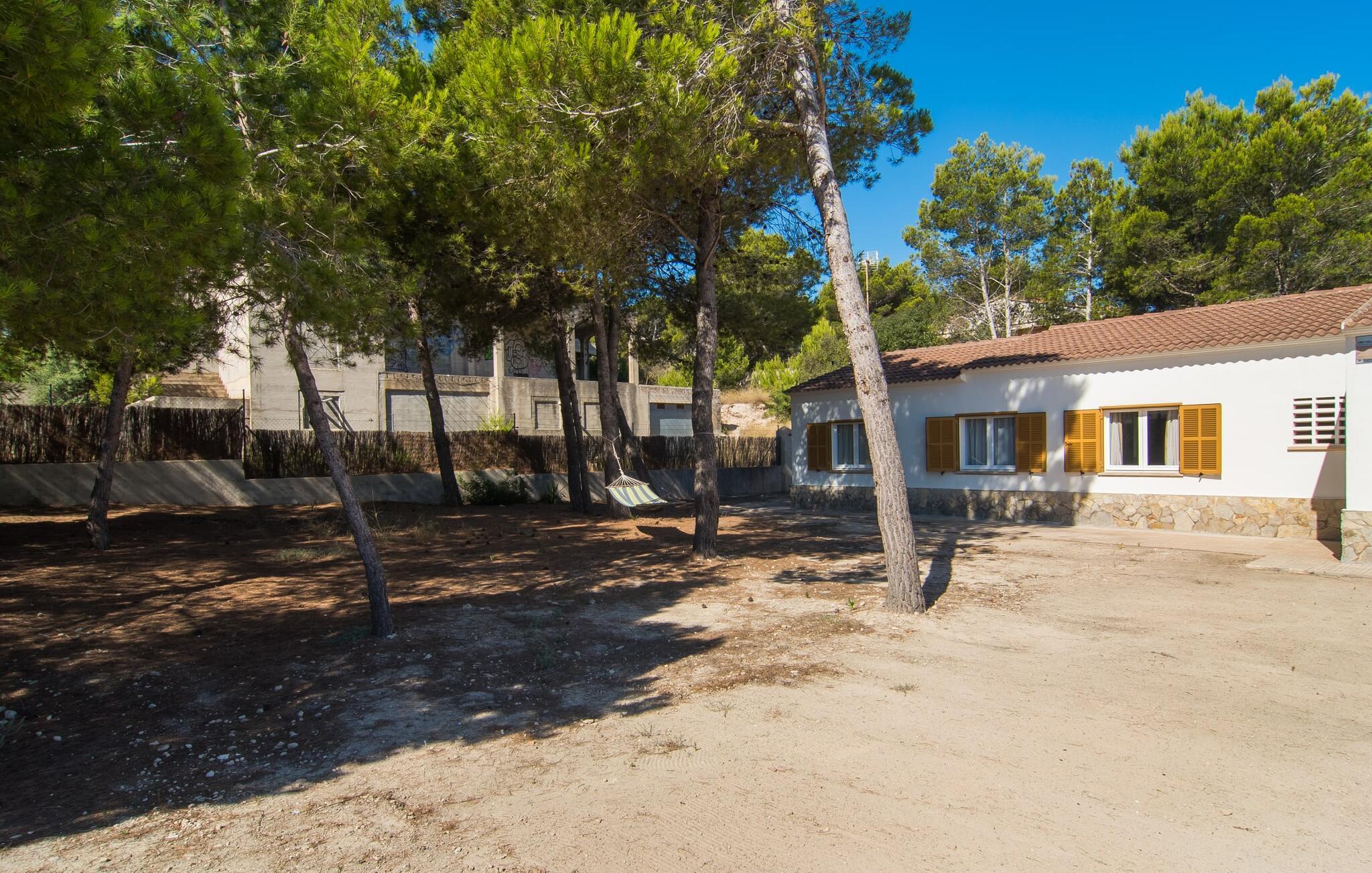 Tæt på stranden, med en barfodet følelse og havudsigt, er villaen "Anglesos" jeres perfekte feriedrøm, der går i opfyldelse. På næsten 1.200 m² tilbyder denne ejendom en række muligheder for afslapning under den mallorcanske himmel. Nyd terrassen ved huset, solterrassen ved poolen eller de naturlige sandområder, alle udstyret med stole, liggestole og hængekøjer til lange timers fritid. Poolen med brede trin og lyseblå mosaikfliser, suppleret med en praktisk udendørs bruser, sikrer forfriskende kølighed på varme dage. Om aftenen samles I til en grill og laver middelhavsdelikatesser, mens andre tilbereder deres yndlingsdrinks. Denne et-etagers villa kan rumme op til otte gæster i venlige og praktiske omgivelser. Interiøret imponerer med en klar, diskret atmosfære med hvide toner og kontrasterende accenter. Den åbne stue/spisestue har en rummelig sofa og et stort bord, mens det fuldt udstyrede køkken har direkte adgang til terrassen. Med fire soveværelser og tre badeværelser (to en suite), er privatlivets fred garanteret. Denne villa er et fremragende feriehus på Mallorca, der kombinerer fremragende infrastruktur og nærhed til havet uden at gå på kompromis med komforten - næsten som et bondehus, lige i hjertet af byen! Velkommen til villaen "Anglesos", i udkanten af Can Picafort, det populære feriested i det nordlige Mallorca. Flere nærliggende restauranter, barer og diskoteker ser frem til jeres besøg, ligesom det ugentlige marked om fredagen og den smukke strandpromenade. Næsten hele landsbyen er omgivet af en lang sandstrand, og andre strande er også nemme at nå.