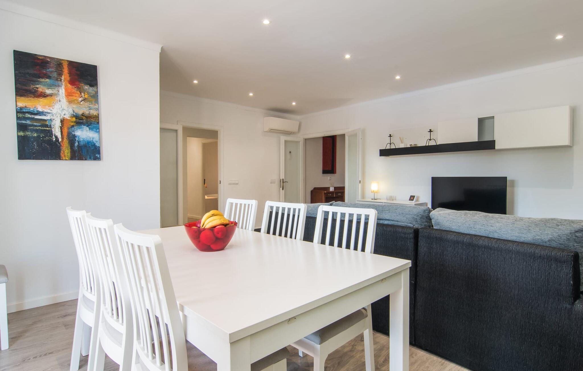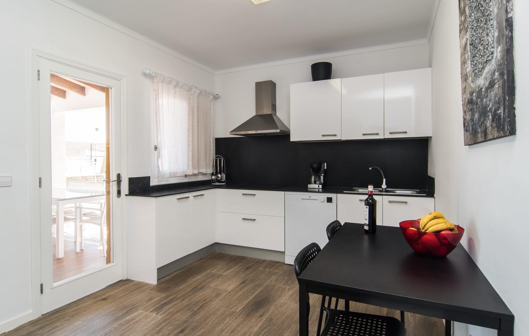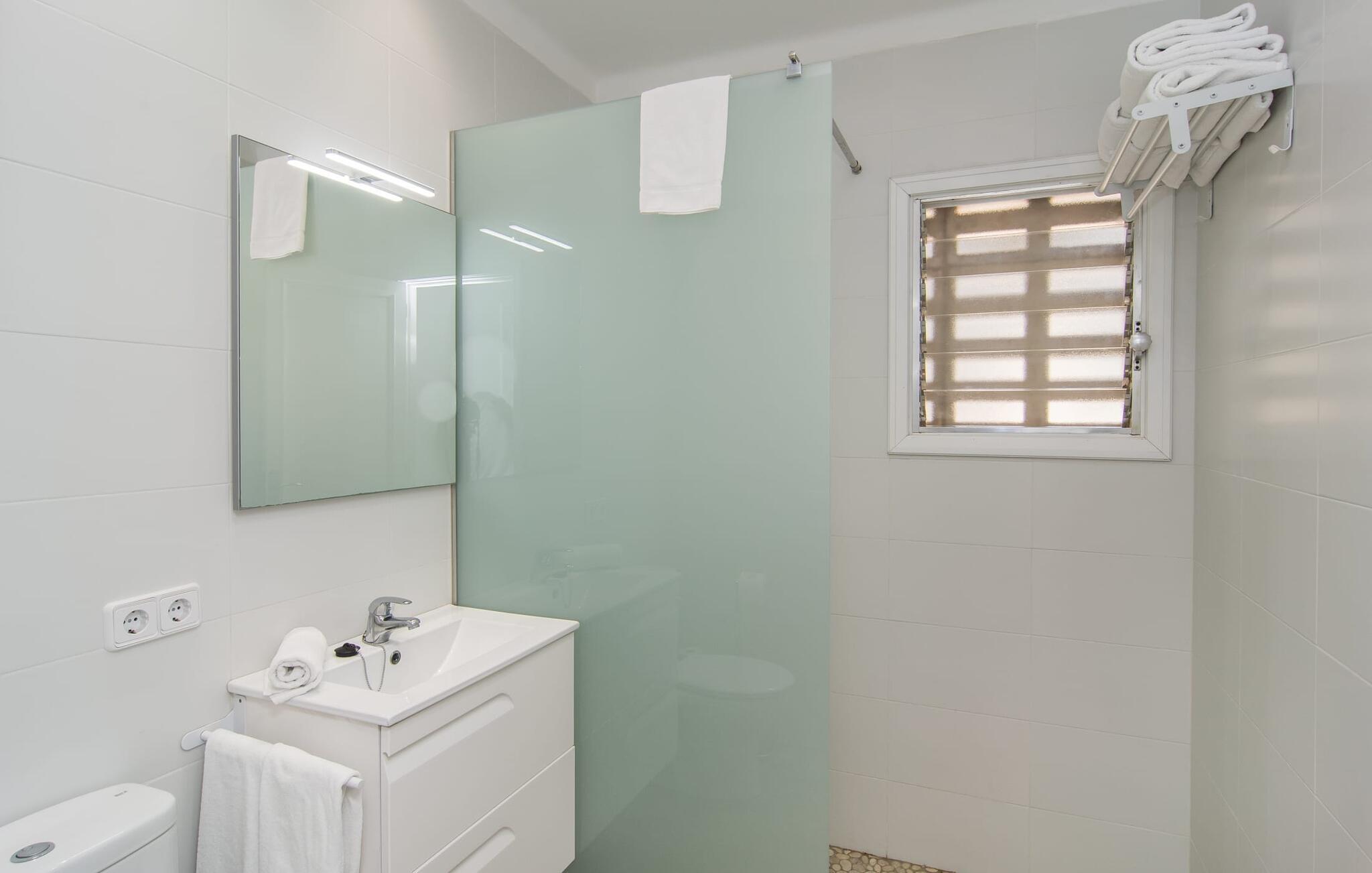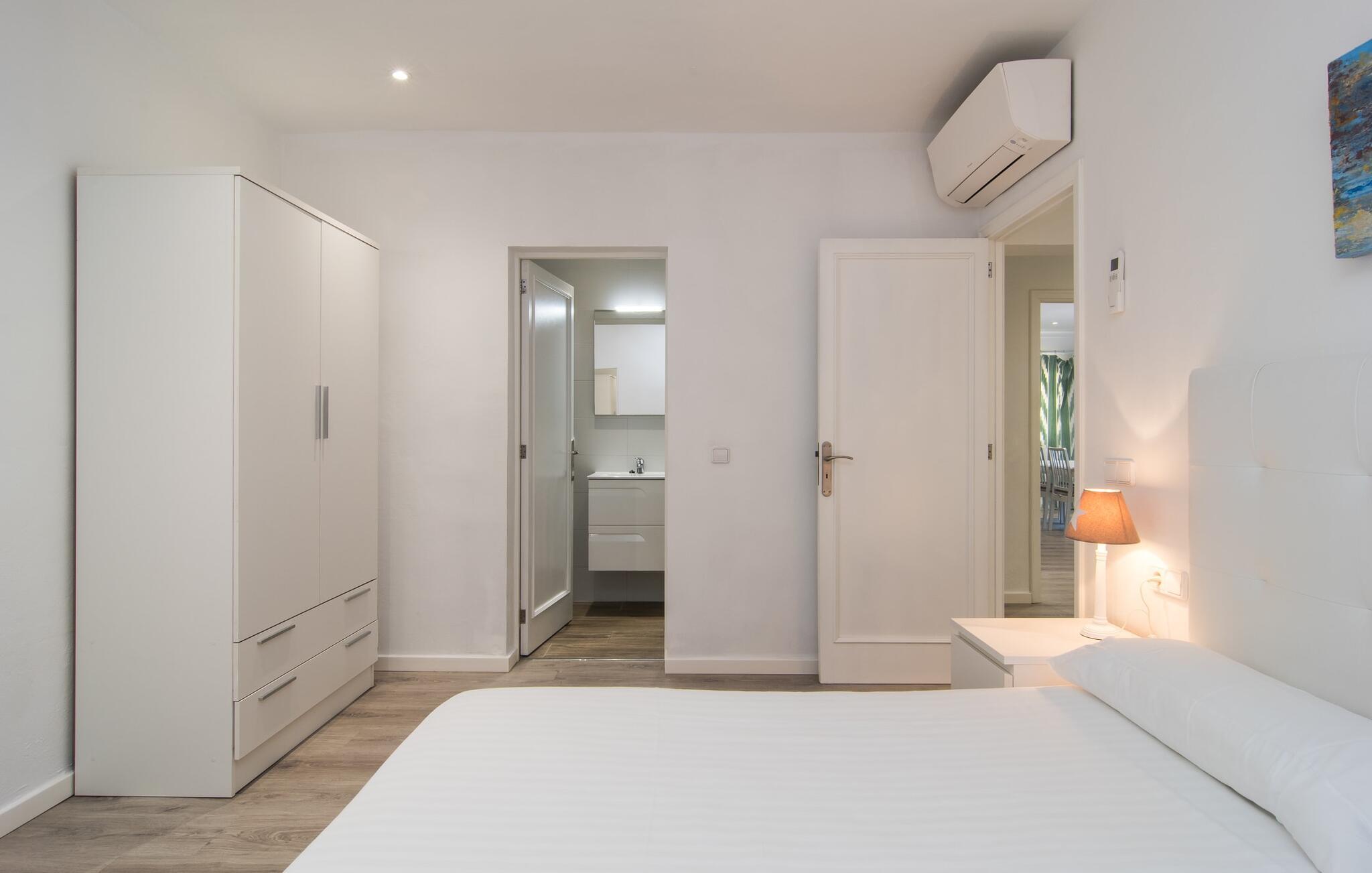 Tæt på stranden, med en barfodet følelse og havudsigt, er villaen "Anglesos" jeres perfekte feriedrøm, der går i opfyldelse. På næsten 1.200 m² tilbyder denne ejendom en række muligheder for afslapning under den mallorcanske himmel. Nyd terrassen ved huset, solterrassen ved poolen eller de naturlige sandområder, alle udstyret med stole, liggestole og hængekøjer til lange timers fritid. Poolen med brede trin og lyseblå mosaikfliser, suppleret med en praktisk udendørs bruser, sikrer forfriskende kølighed på varme dage. Om aftenen samles I til en grill og laver middelhavsdelikatesser, mens andre tilbereder deres yndlingsdrinks. Denne et-etagers villa kan rumme op til otte gæster i venlige og praktiske omgivelser. Interiøret imponerer med en klar, diskret atmosfære med hvide toner og kontrasterende accenter. Den åbne stue/spisestue har en rummelig sofa og et stort bord, mens det fuldt udstyrede køkken har direkte adgang til terrassen. Med fire soveværelser og tre badeværelser (to en suite), er privatlivets fred garanteret. Denne villa er et fremragende feriehus på Mallorca, der kombinerer fremragende infrastruktur og nærhed til havet uden at gå på kompromis med komforten - næsten som et bondehus, lige i hjertet af byen! Velkommen til villaen "Anglesos", i udkanten af Can Picafort, det populære feriested i det nordlige Mallorca. Flere nærliggende restauranter, barer og diskoteker ser frem til jeres besøg, ligesom det ugentlige marked om fredagen og den smukke strandpromenade. Næsten hele landsbyen er omgivet af en lang sandstrand, og andre strande er også nemme at nå.