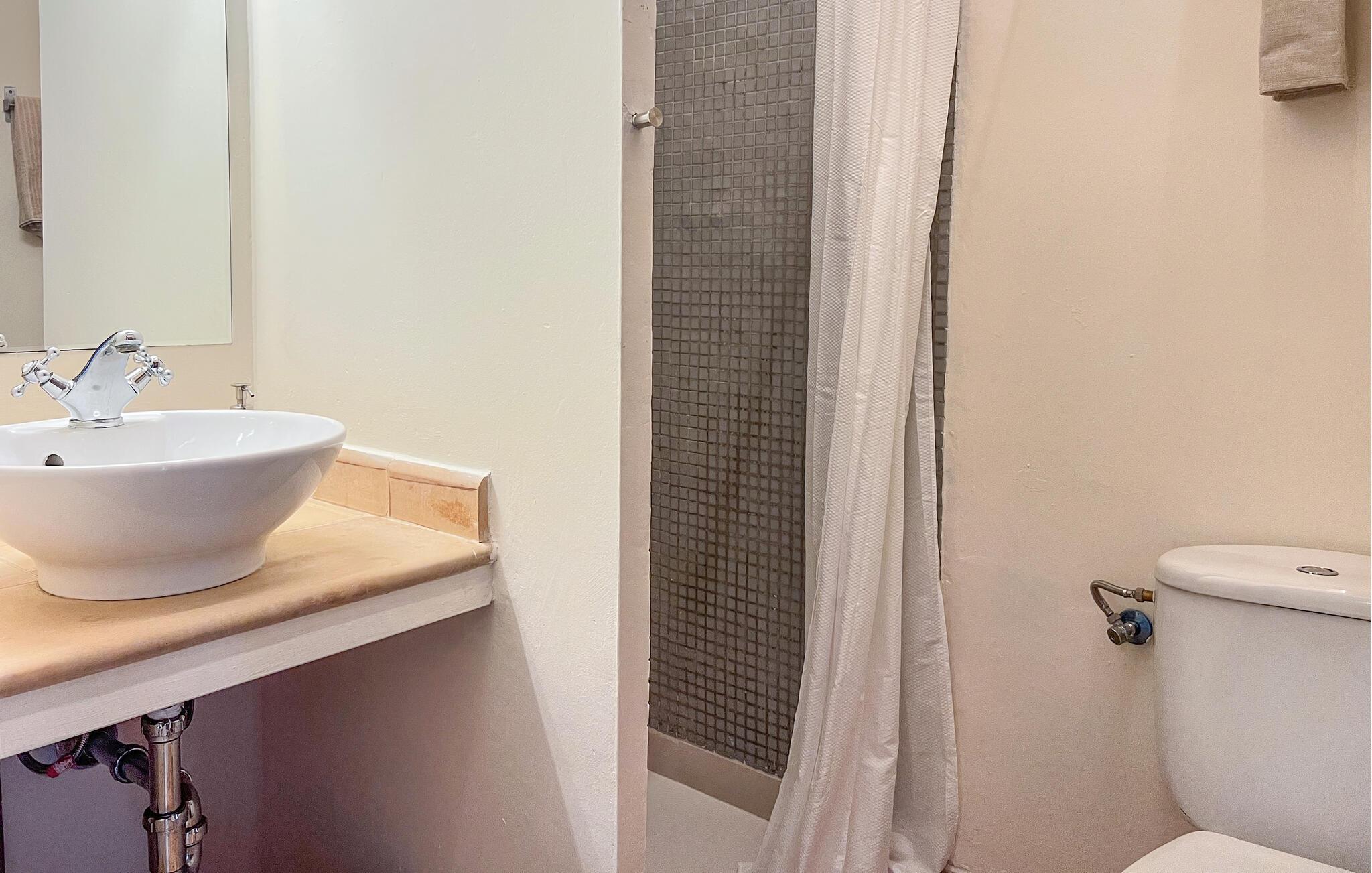 Villalejligheden "Arco" er en fuldstændig uafhængig to-etagers del af villaen "Pina", beliggende i en fantastisk, økologisk styret ejendom, omgivet af unge oliven- og citrustræer, lavendel- og oleanderlunde og smukt anlagte haver, alt på udkanten af et naturreservat. Dette er et feriehus i Fincallorca. Udenfor kan du slappe af på en af de to terrasser, den ene i skygge og den anden solrig, eller nyde det store, oplyste poolområde med masser af liggestole. Haverne giver et fredeligt og privat tilflugtssted. "Toni", det venlige æsel, giver ejendommen charme og glæder både børn og voksne. Indenfor skaber traditionelle bjælkelofter, lyse vægge og trævinduer en munter, afslappet atmosfære, suppleret med møbler af høj kvalitet og teakmøbler. Det åbne opholds- og spiseområde med pejs inviterer dig til at slappe af, mens du i fred og ro kan tilberede dine måltider i det fuldt udstyrede køkken. To smukt renoverede soveværelser med dobbeltsenge sikrer en god nattesøvn, og to moderne badeværelser tilbyder al komfort. "Arco" tilbyder den ideelle blanding af natur og fred, hvilket gør det til det perfekte sted for en afslappende ferie på Mallorca. Ejendommen omfatter yderligere tre villaer og villalejligheder, som du også kan finde i vores sortiment. Villa ferielejligheden "Arco" er beliggende i en rolig beliggenhed mellem Sencelles og Costitx og er omgivet af et blidt bakket landskab. Costitx, omkring fem minutters kørsel væk, har et supermarked, barer, restauranter og et fantastisk bageri. Ejendommens bekvemme beliggenhed tillader ture til mange af øens strande såsom Es Trenc, Son Serra Marina og Alcúdia-bugten.