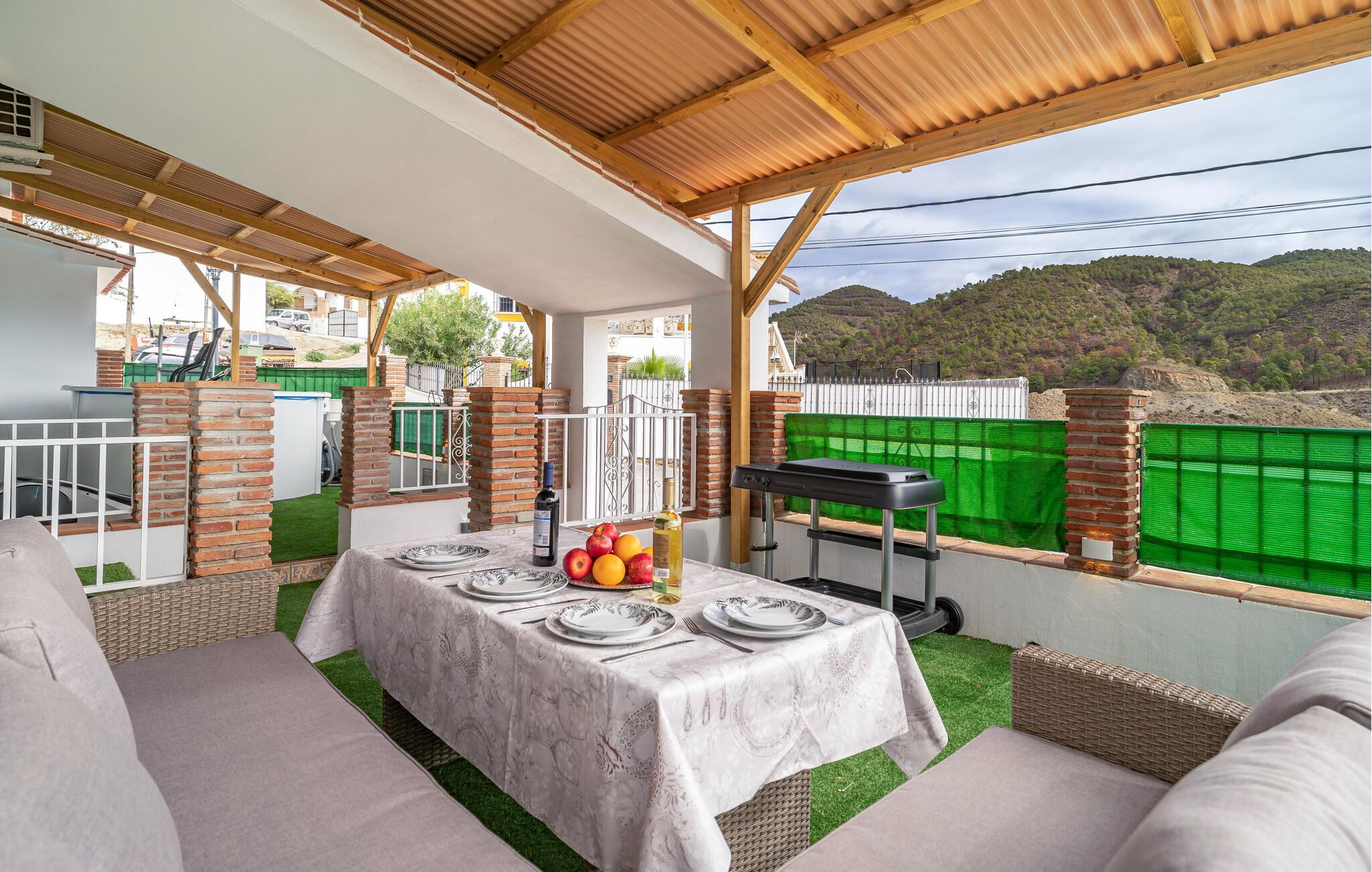 Dette charmerende hus med farverige detaljer byder på et lyst og indbydende miljø, der skaber den perfekte feriestemning. De smukt indrettede rum skaber en atmosfære, hvor I straks vil føle jer hjemme. Den store veranda er ideel til afslappede grillmiddage og hyggelige måltider under åben himmel, mens poolområdet giver mulighed for både forfriskende dyp og daglig motion. Her kan I forme dagene efter jeres ønsker og nyde solrige stunder under den andalusiske himmel.