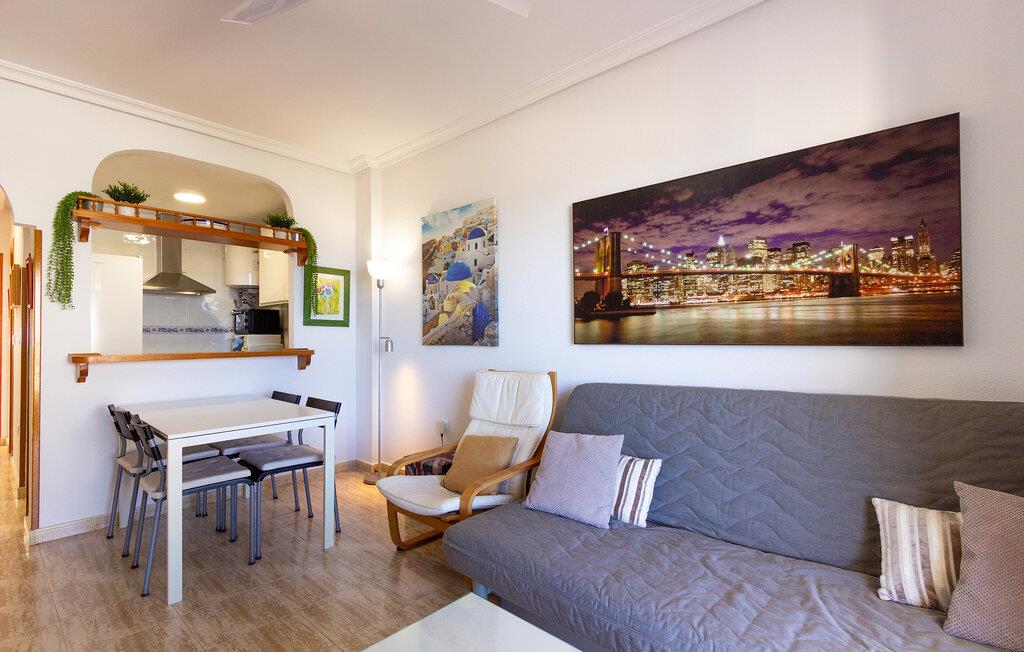 I denne indbydende ferielejlighed kan I nyde en afslappende familieferie i ægte middelhavsstemning. De lyse og smagfuldt indrettede rum skaber en hyggelig atmosfære, der straks får jer til at føle jer hjemme. Den åbne stue- og spisestue indbyder til hyggelige stunder og har alt, hvad I behøver for ubekymrede dage ved havet.