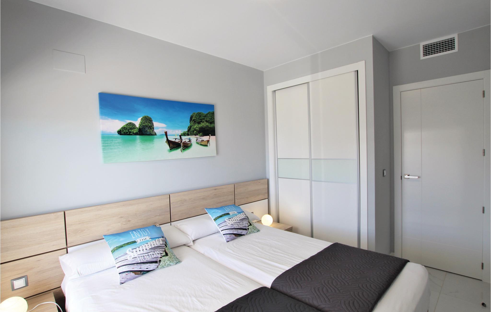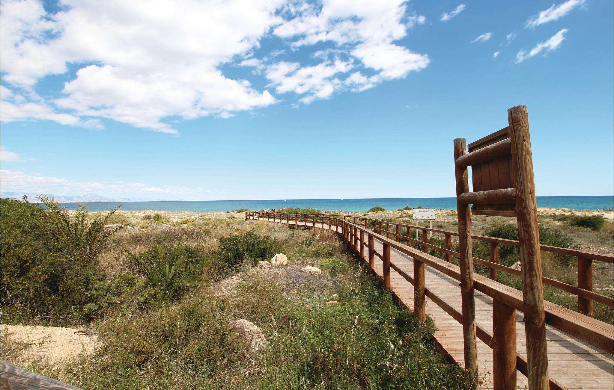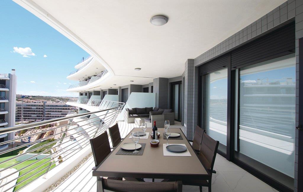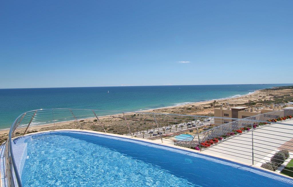 Denne luksuøse ferielejlighed ligger i den eksklusive bebyggelse Arenales del Sol ved Costa Blanca, kun 350 m fra den skønne sandstrand. I boliganlægget er der tre whirlpools, en pool med varmt vand, fitnessområde, sauna, legeplads, tennis- og paddlebane, sportscentrum, cafeteria og en fantastisk udsigt over havet. Den elegante lejlighed er komfortabelt udstyret, bl.a. med en stor terrasse, som sikrer jer en uforglemmelig dejlig ferie. På 66 smagfuldt indrettede m² er der god plads til op til fem heldige feriegæster. På de herlige sandstrande kan I slappe af og dyrke mange former for vandsport i havet – smag på regionens lækre gastronomi på en af de mange gode restauranter i nærheden.