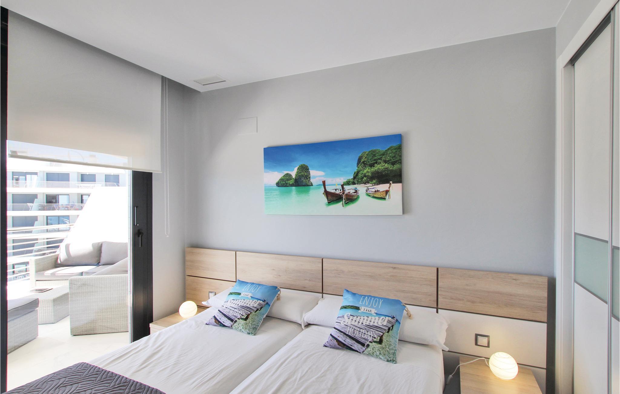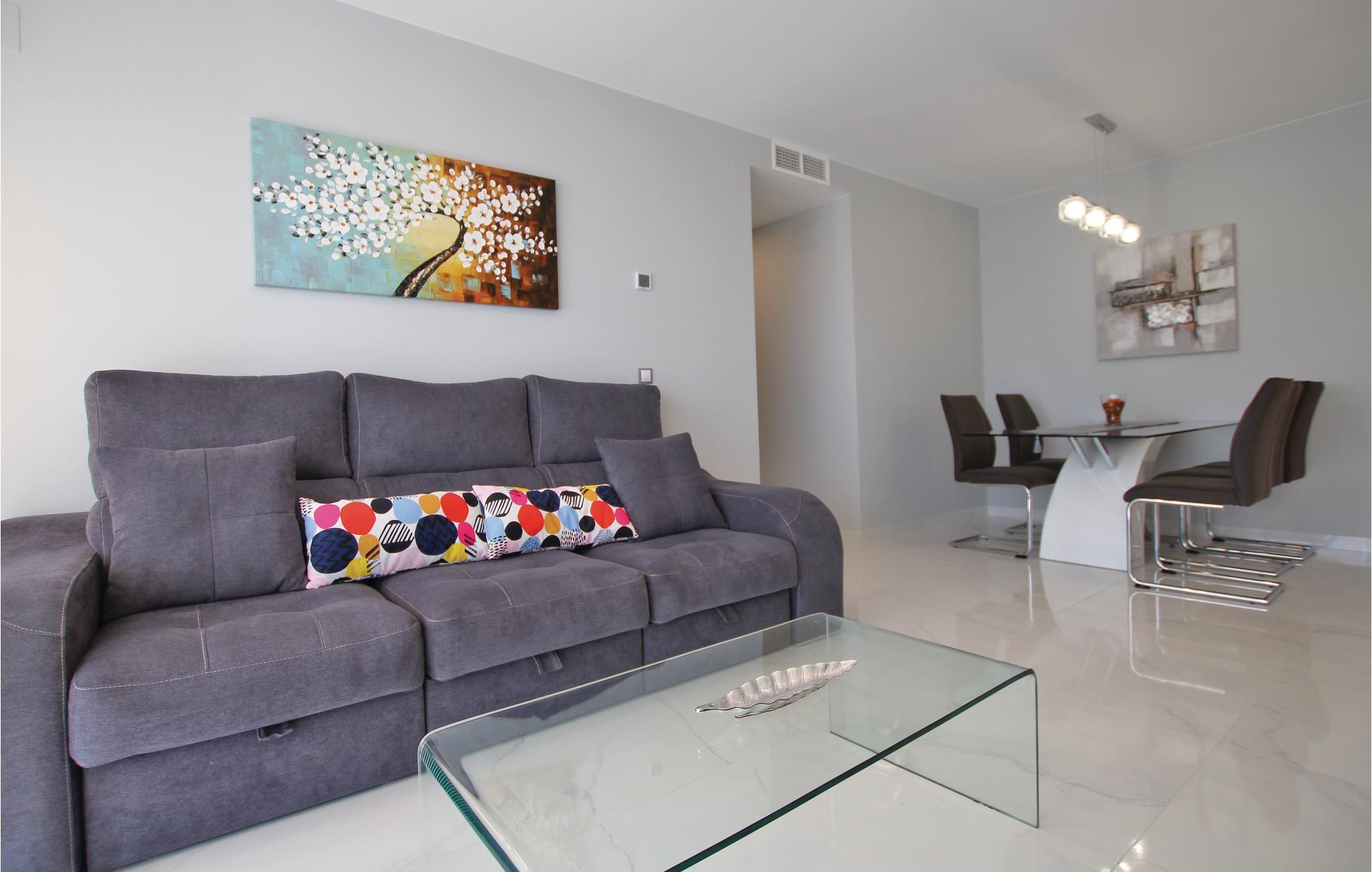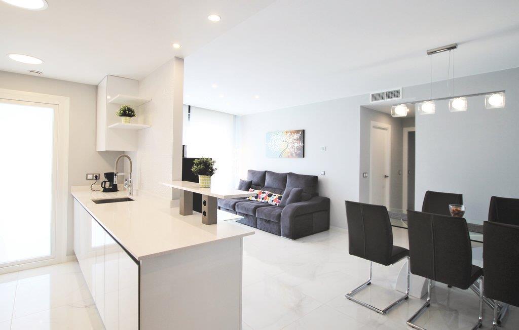 Denne luksuøse ferielejlighed ligger i den eksklusive bebyggelse Arenales del Sol ved Costa Blanca, kun 350 m fra den skønne sandstrand. I boliganlægget er der tre whirlpools, en pool med varmt vand, fitnessområde, sauna, legeplads, tennis- og paddlebane, sportscentrum, cafeteria og en fantastisk udsigt over havet. Den elegante lejlighed er komfortabelt udstyret, bl.a. med en stor terrasse, som sikrer jer en uforglemmelig dejlig ferie. På 66 smagfuldt indrettede m² er der god plads til op til fem heldige feriegæster. På de herlige sandstrande kan I slappe af og dyrke mange former for vandsport i havet – smag på regionens lækre gastronomi på en af de mange gode restauranter i nærheden.