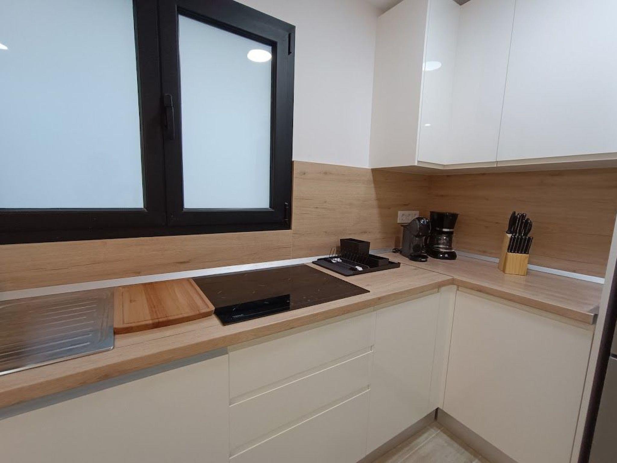The flat is situated on the third floor of a newly built building, very bright and decorated in a contemporary style. It has an entrance hall with a desk for teleworking, a bathroom with shower, two double bedrooms (one with TV), and a fully equipped kitchen (oven, dishwasher, microwave, fridge, etc.). The living room has a large sofa bed, dining table and TV. From the living room there is access to the terrace, which overlooks a quiet street.