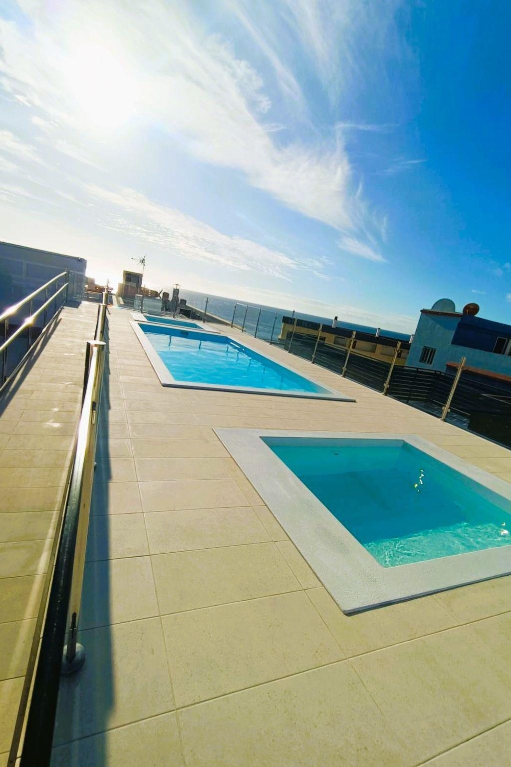Enjoy this modern flat located only a few steps from the sea and with small swimming pools on the roof terrace where you can relax and sunbathe.