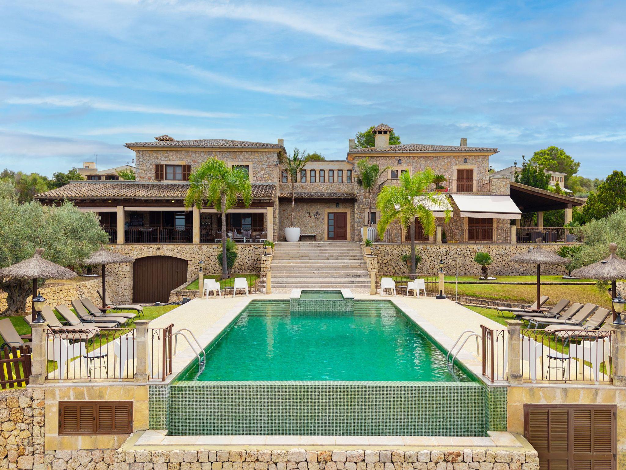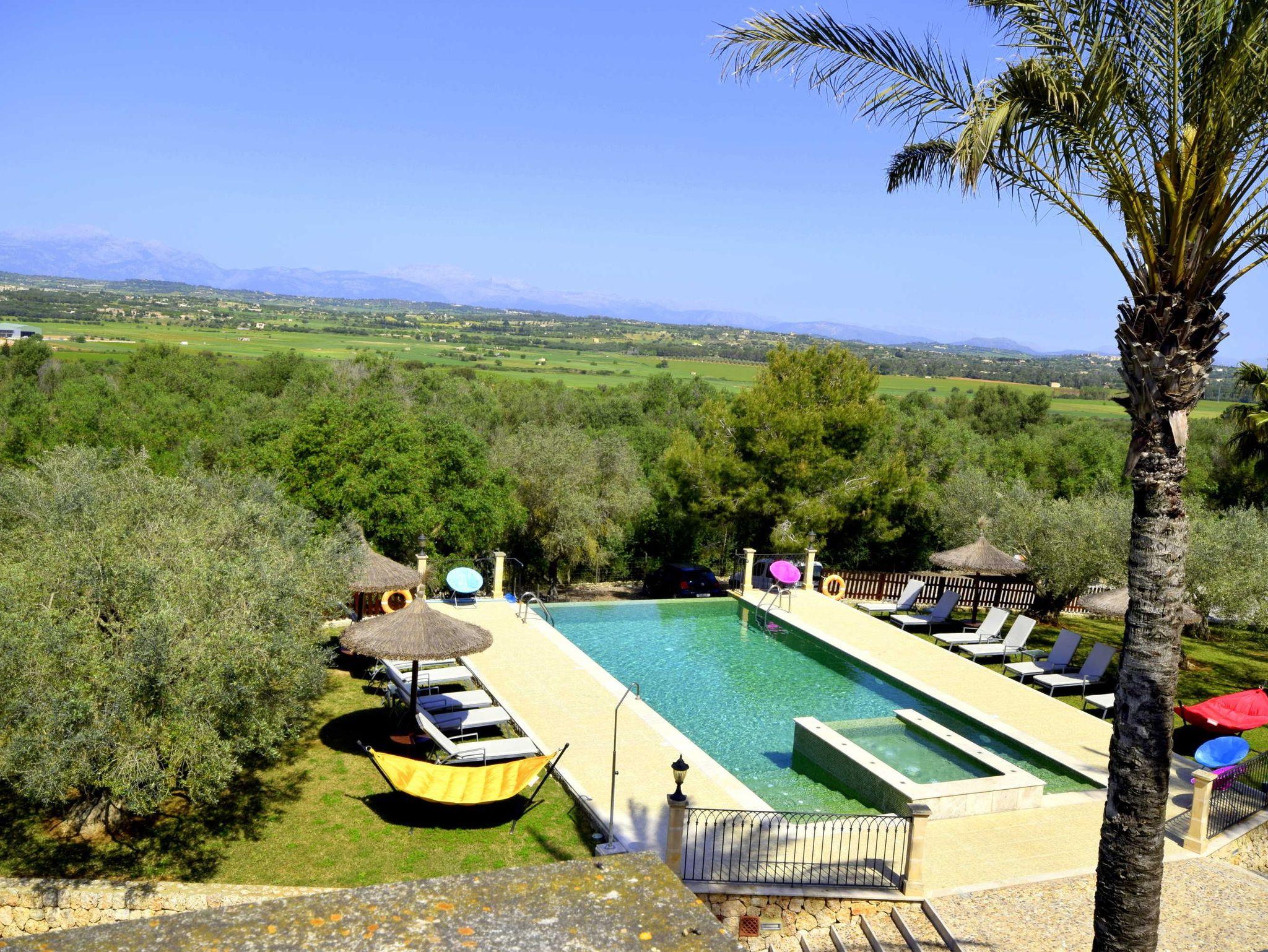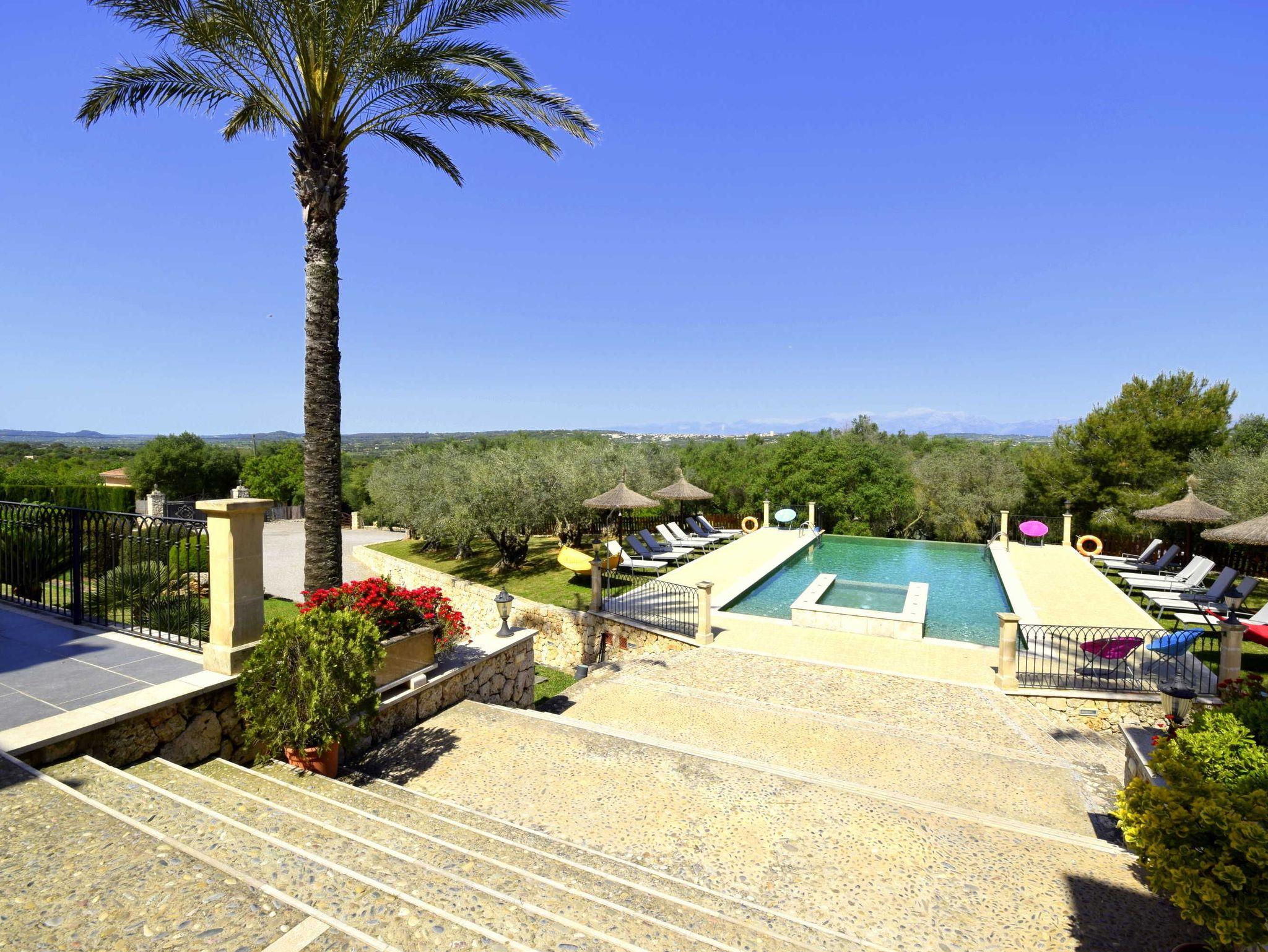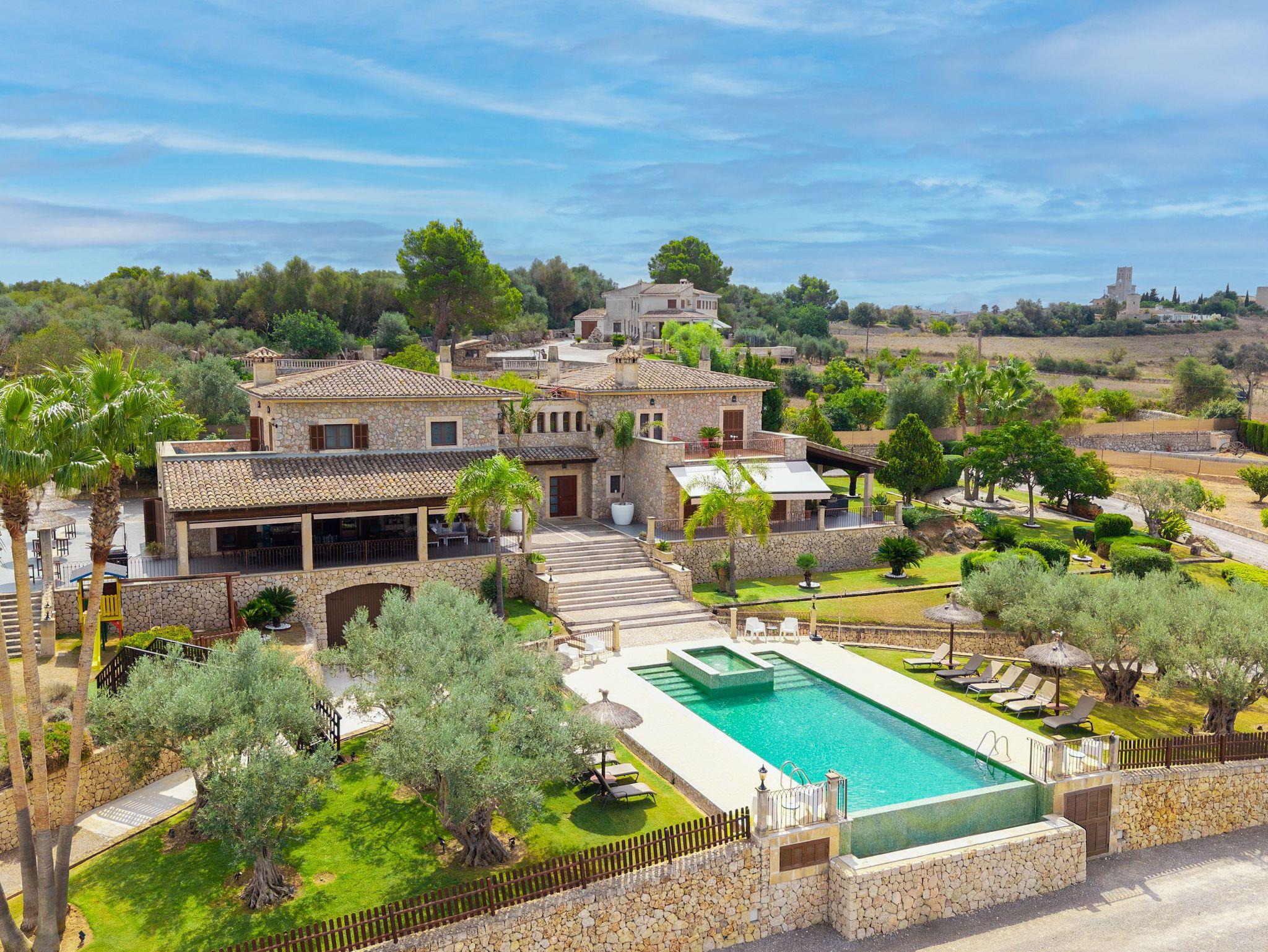 In ruhiger, erhöhter Lage am Rande eines charmanten Dorfes liegt die exklusive Finca Ses Oliveres Canova ? ein ganz besonderer Rückzugsort im Herzen Mallorcas. Von hier genießt man einen atemberaubenden Weitblick über Felder, bewaldete Hügel bis hin zum majestätischen Tramuntana-Gebirge. Nur 20 Minuten vom nächsten Strand entfernt, bietet diese großzügige Finca Platz für 16 Personen plus Baby, mit 8 liebevoll eingerichteten Schlafzimmern, 6 stilvollen Bädern, 2 Wohnbereichen, Jacuzzi und einem traumhaften Infinity-Pool.