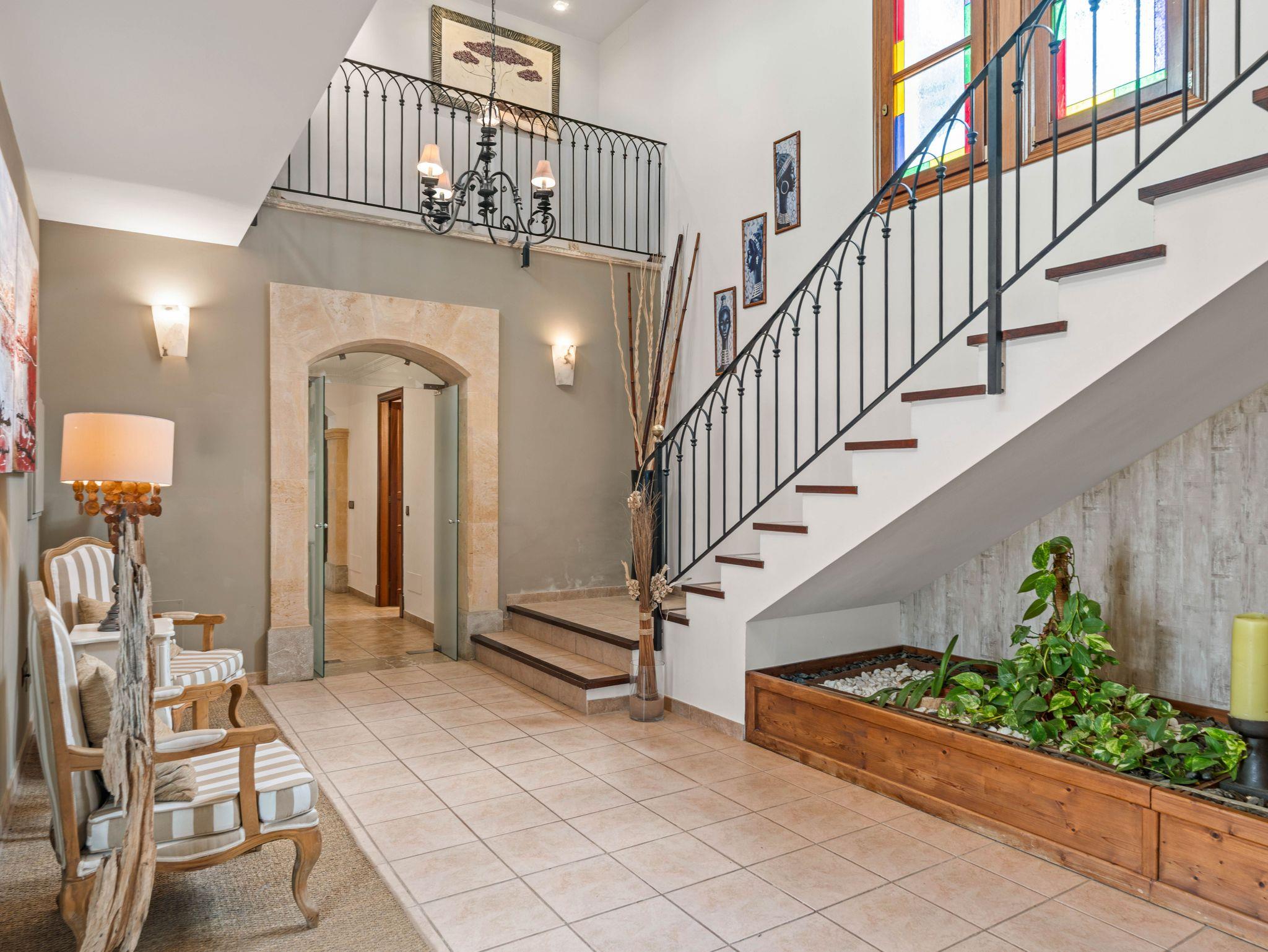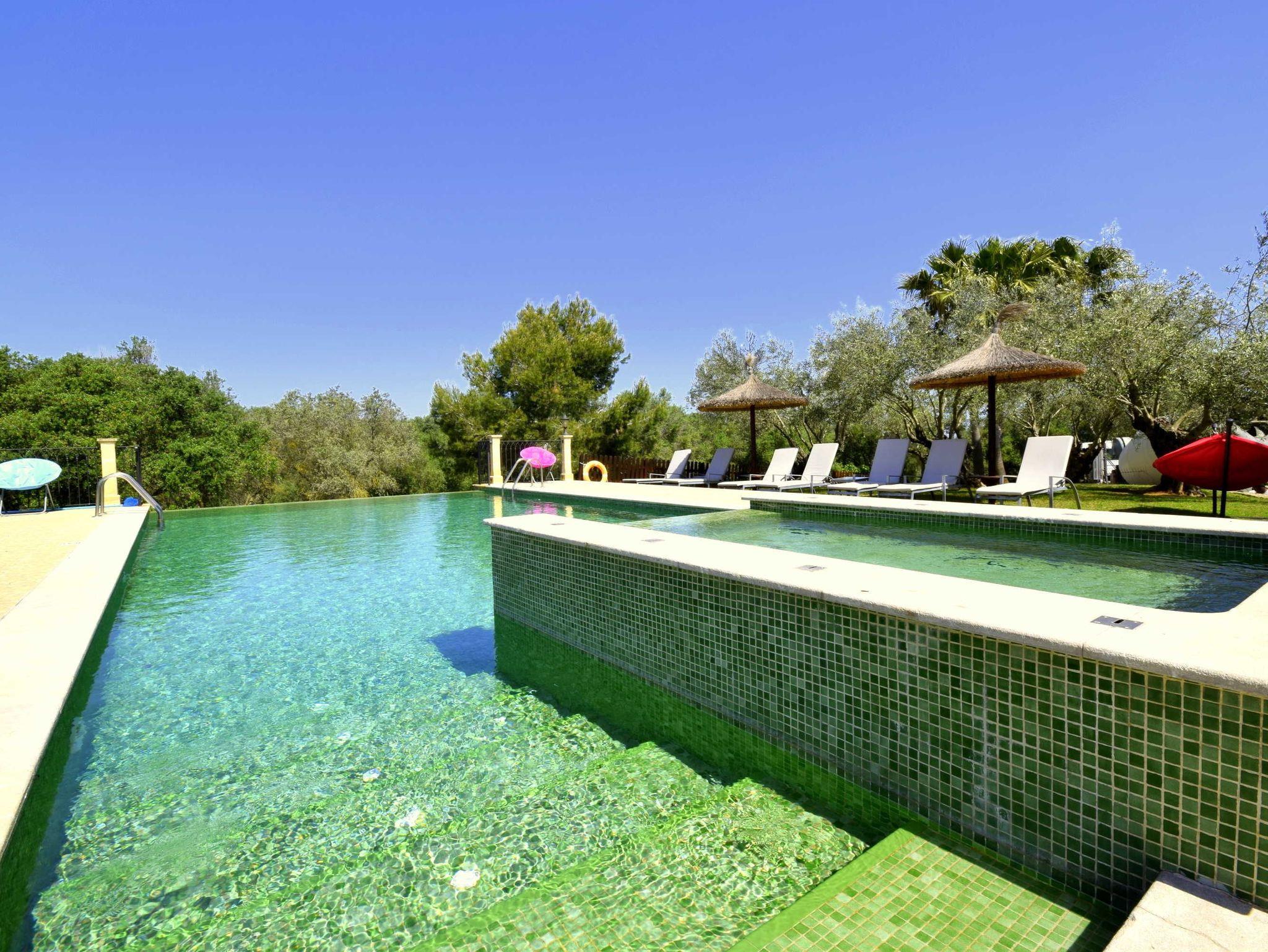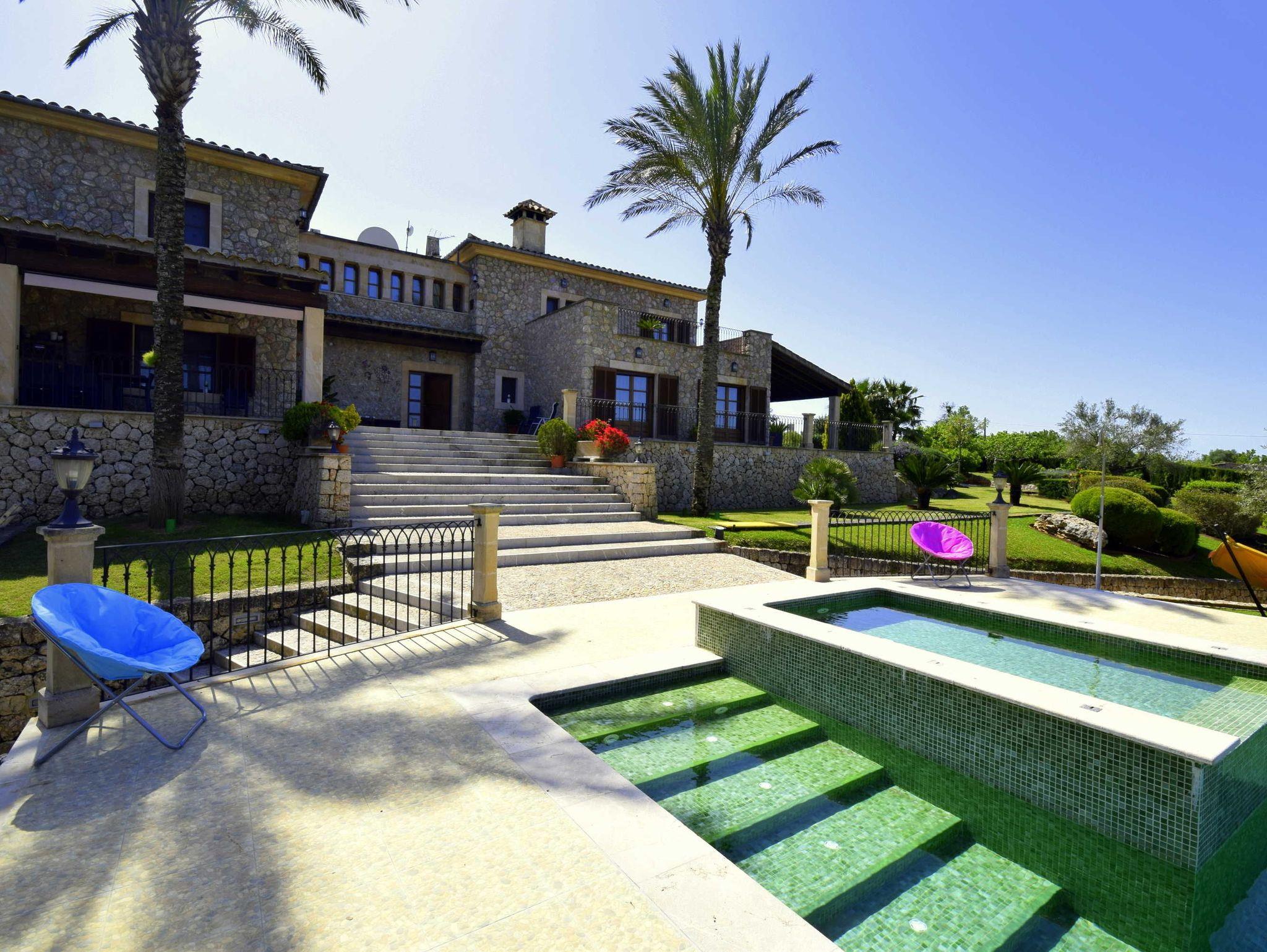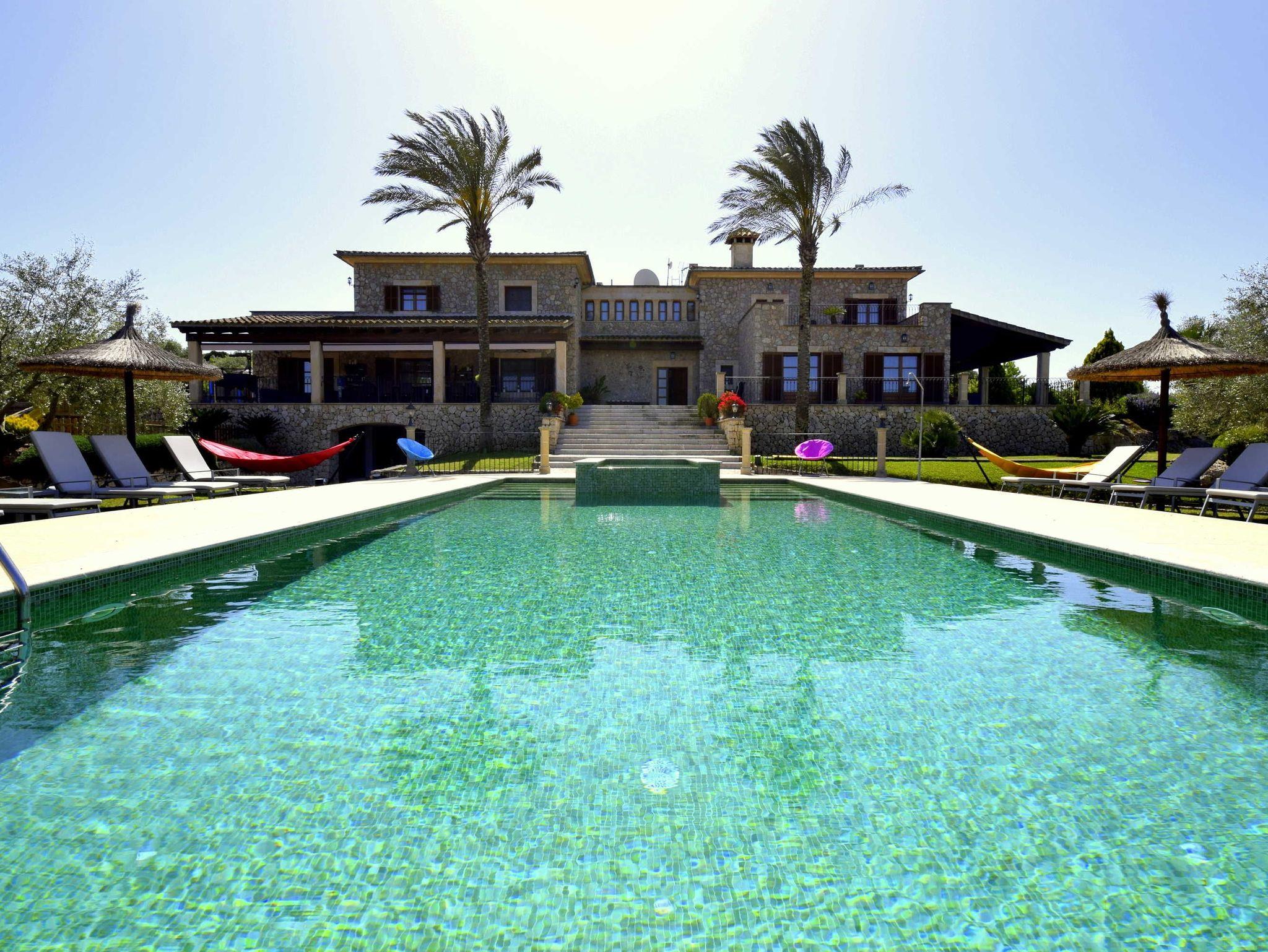 In ruhiger, erhöhter Lage am Rande eines charmanten Dorfes liegt die exklusive Finca Ses Oliveres Canova ? ein ganz besonderer Rückzugsort im Herzen Mallorcas. Von hier genießt man einen atemberaubenden Weitblick über Felder, bewaldete Hügel bis hin zum majestätischen Tramuntana-Gebirge. Nur 20 Minuten vom nächsten Strand entfernt, bietet diese großzügige Finca Platz für 16 Personen plus Baby, mit 8 liebevoll eingerichteten Schlafzimmern, 6 stilvollen Bädern, 2 Wohnbereichen, Jacuzzi und einem traumhaften Infinity-Pool.