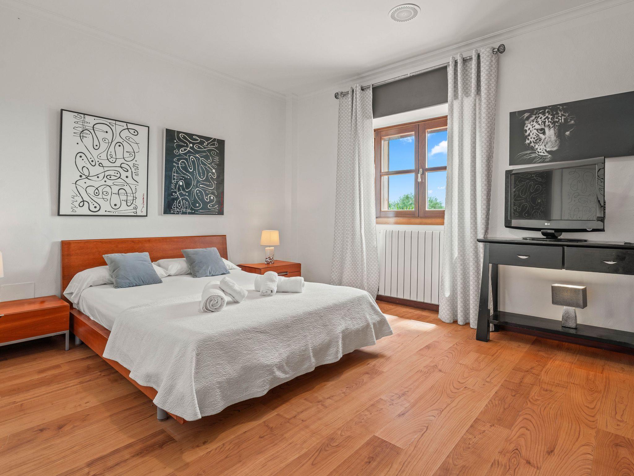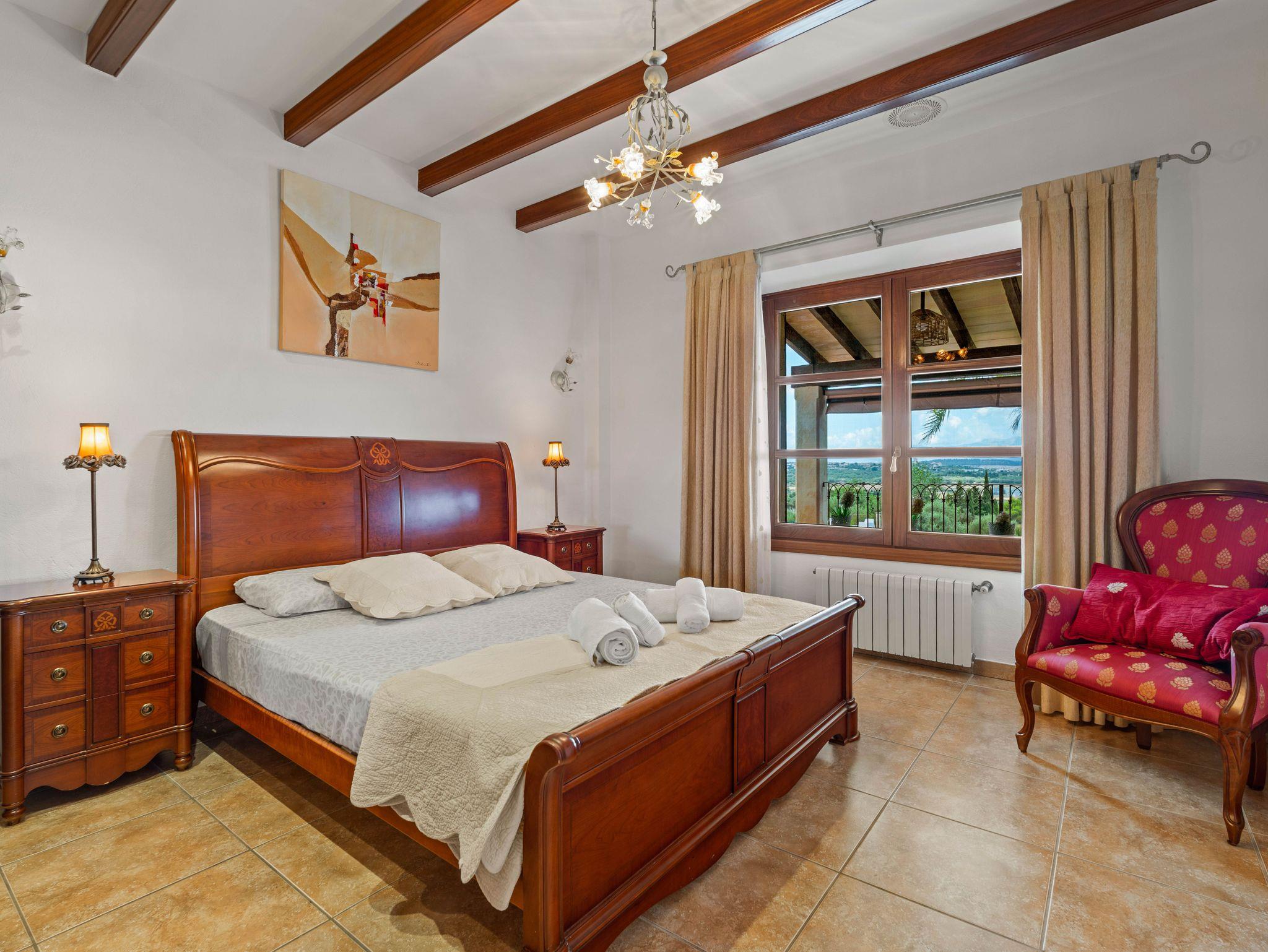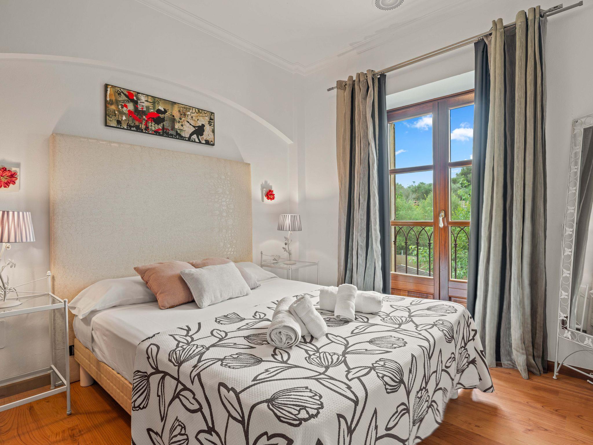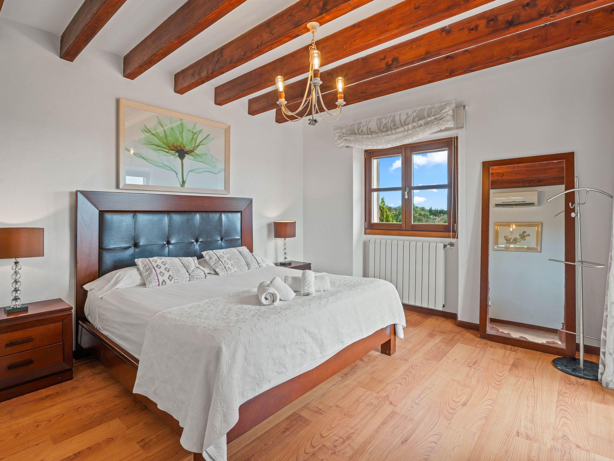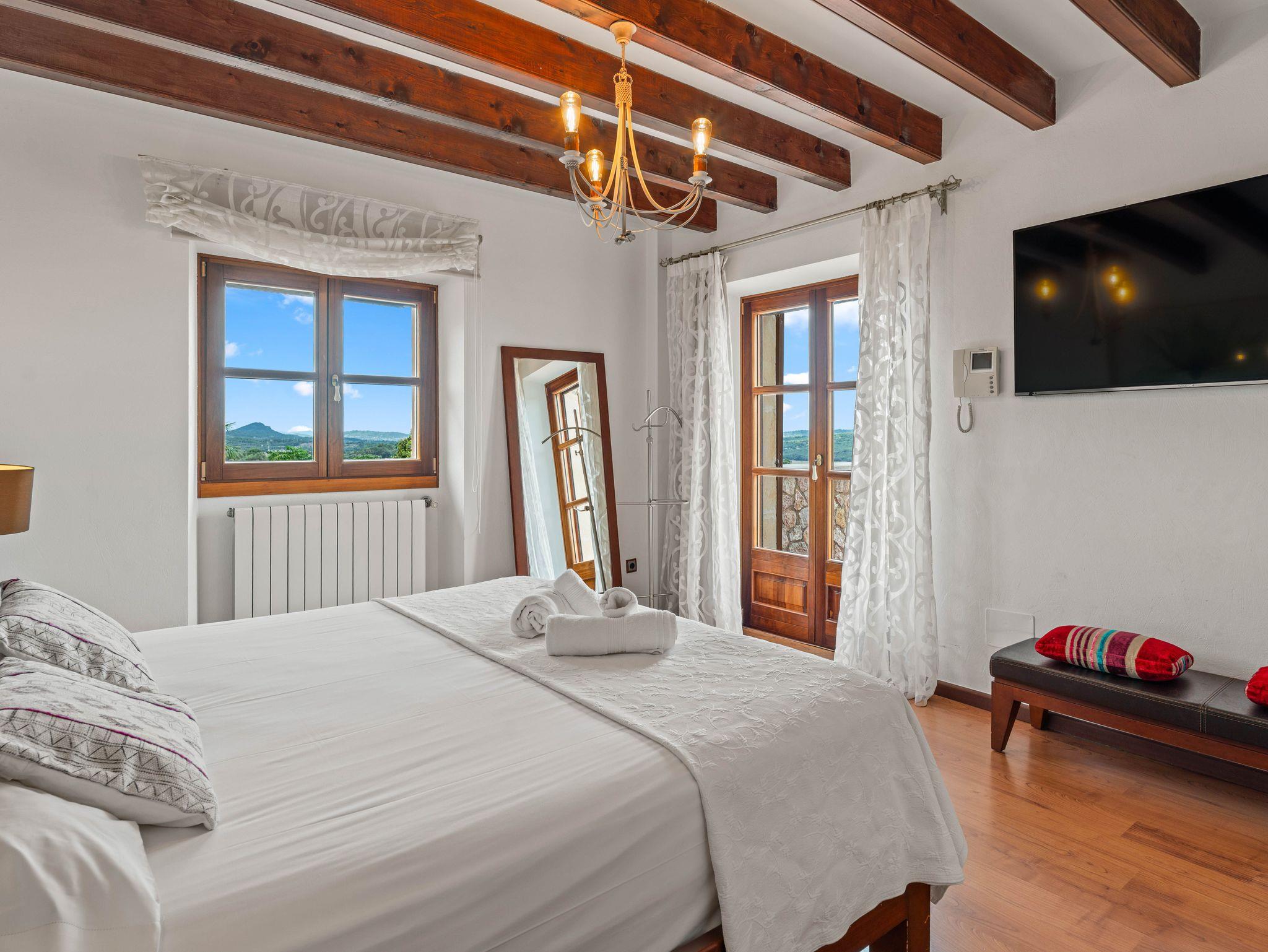 In ruhiger, erhöhter Lage am Rande eines charmanten Dorfes liegt die exklusive Finca Ses Oliveres Canova ? ein ganz besonderer Rückzugsort im Herzen Mallorcas. Von hier genießt man einen atemberaubenden Weitblick über Felder, bewaldete Hügel bis hin zum majestätischen Tramuntana-Gebirge. Nur 20 Minuten vom nächsten Strand entfernt, bietet diese großzügige Finca Platz für 16 Personen plus Baby, mit 8 liebevoll eingerichteten Schlafzimmern, 6 stilvollen Bädern, 2 Wohnbereichen, Jacuzzi und einem traumhaften Infinity-Pool.