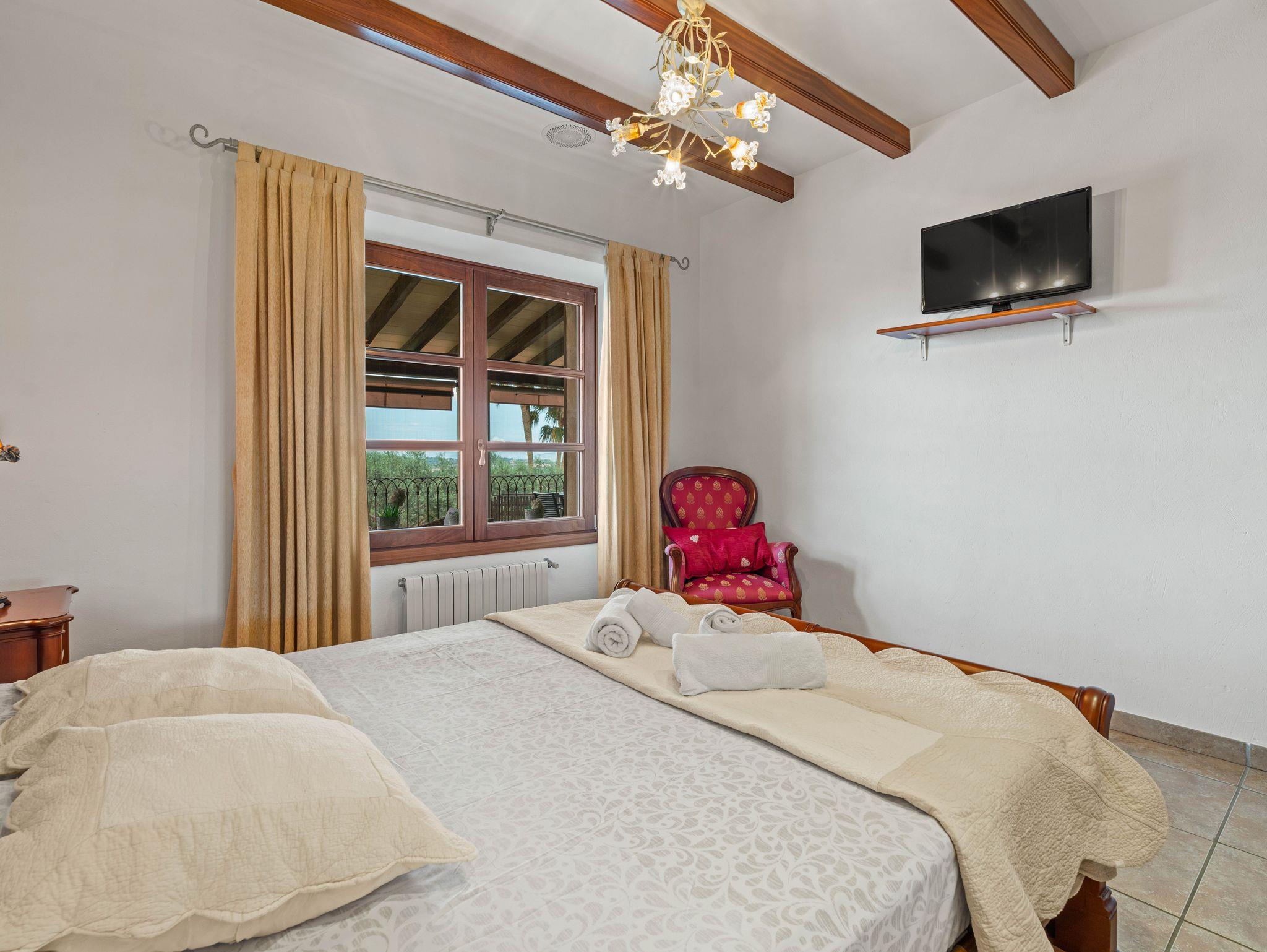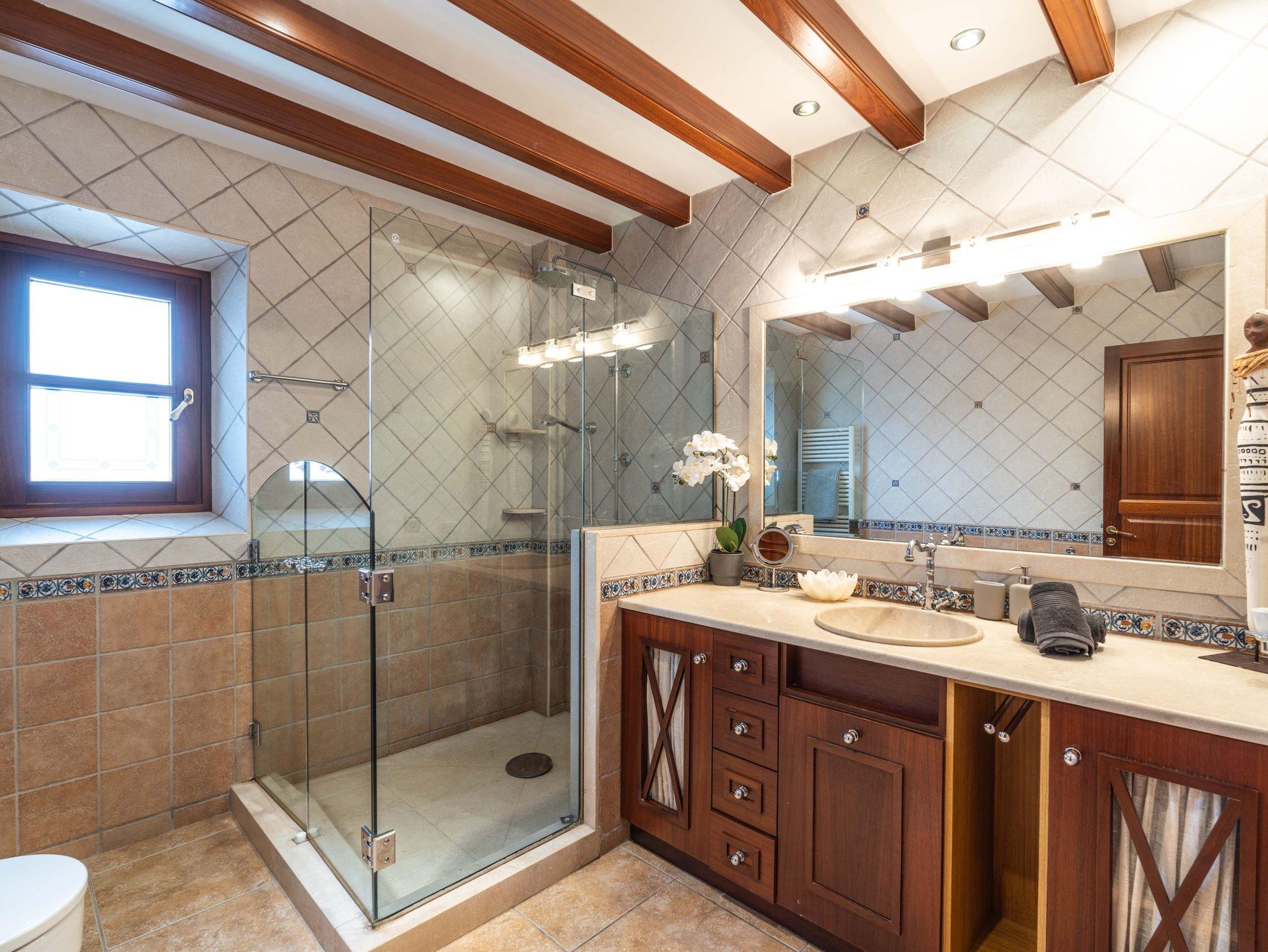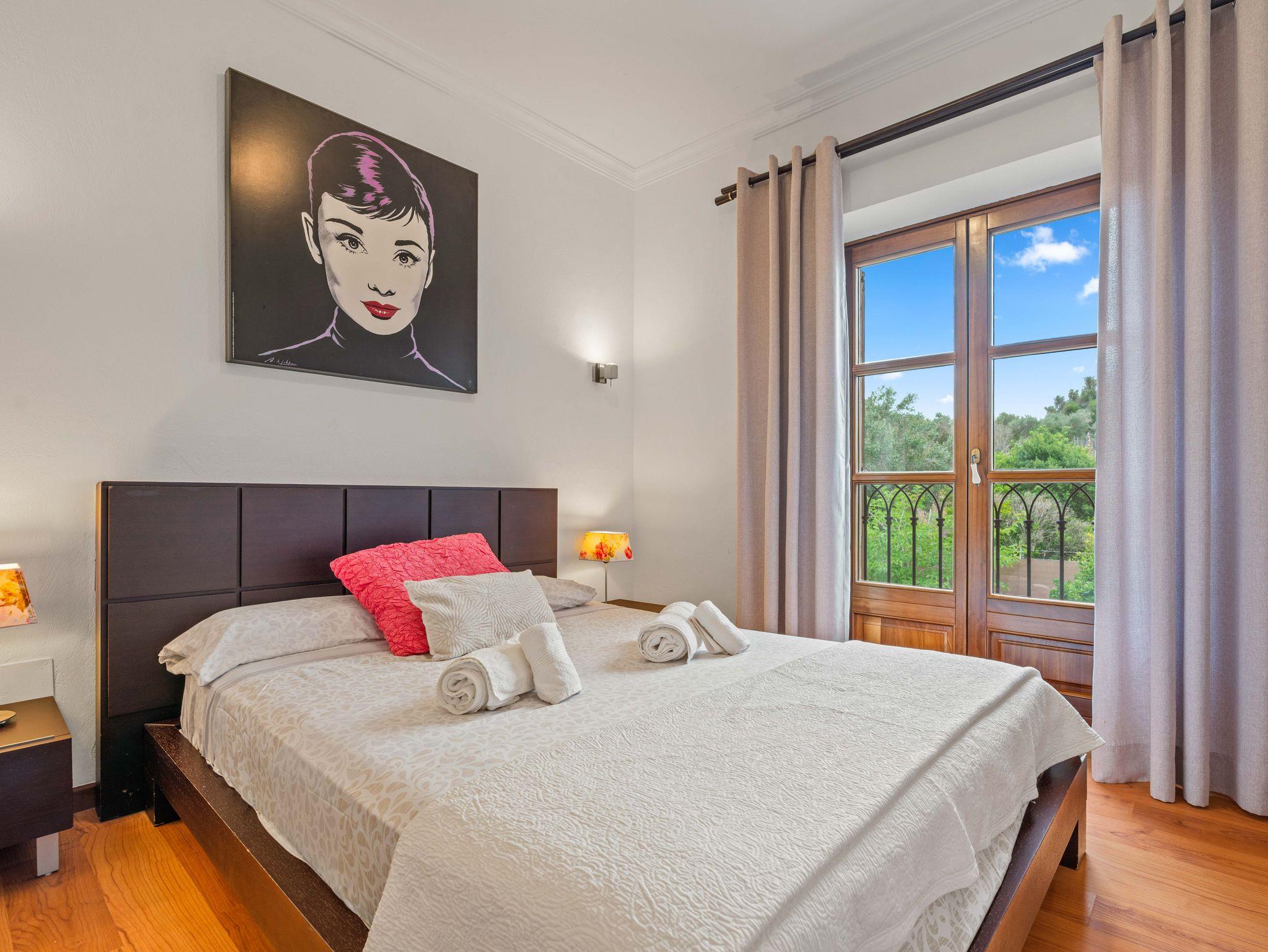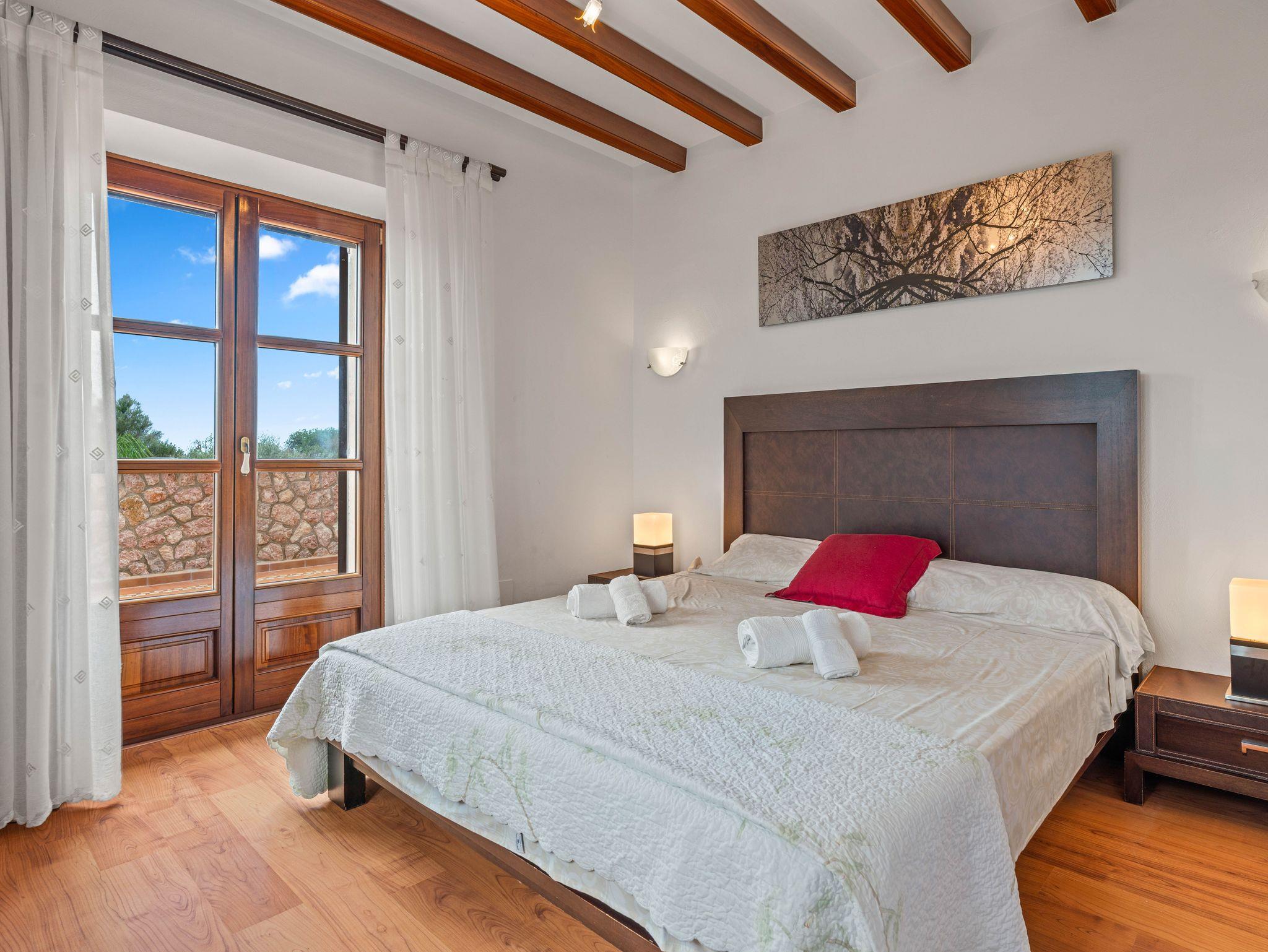 In ruhiger, erhöhter Lage am Rande eines charmanten Dorfes liegt die exklusive Finca Ses Oliveres Canova ? ein ganz besonderer Rückzugsort im Herzen Mallorcas. Von hier genießt man einen atemberaubenden Weitblick über Felder, bewaldete Hügel bis hin zum majestätischen Tramuntana-Gebirge. Nur 20 Minuten vom nächsten Strand entfernt, bietet diese großzügige Finca Platz für 16 Personen plus Baby, mit 8 liebevoll eingerichteten Schlafzimmern, 6 stilvollen Bädern, 2 Wohnbereichen, Jacuzzi und einem traumhaften Infinity-Pool.