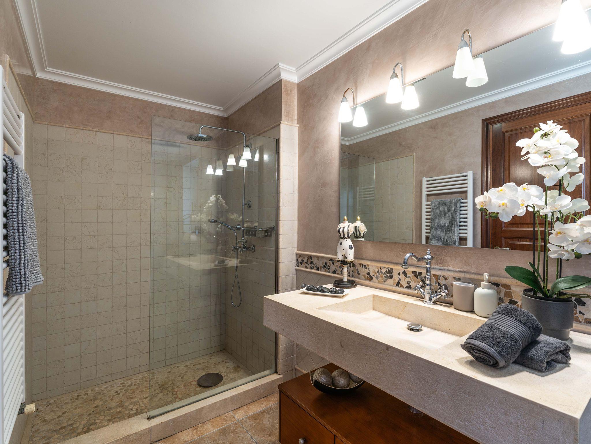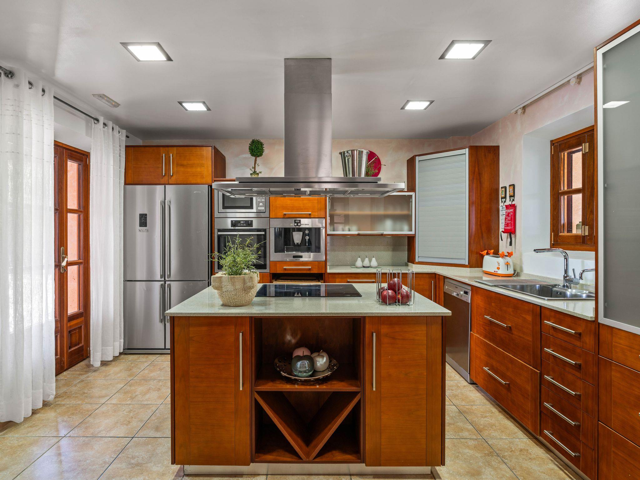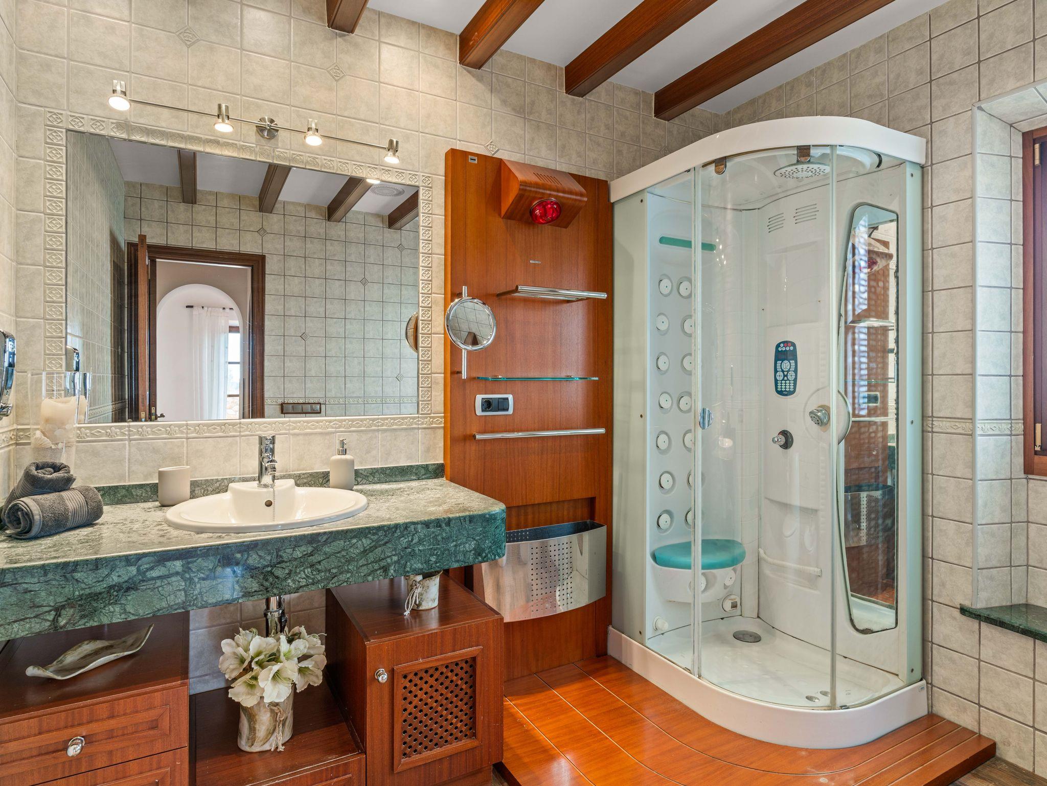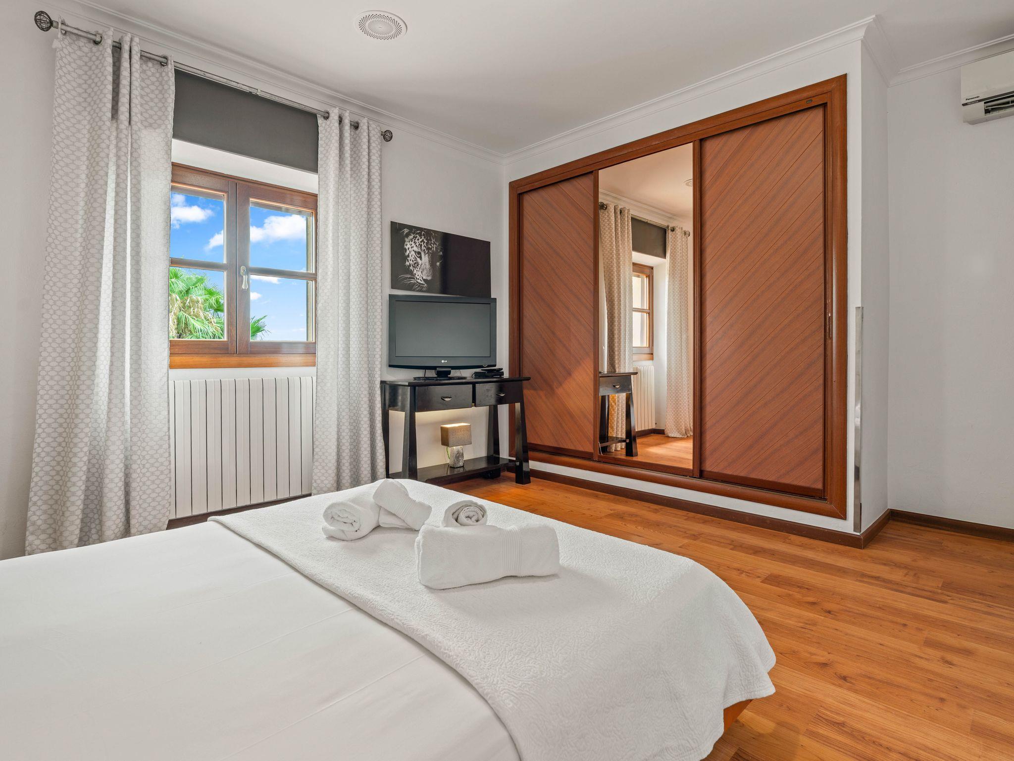 In ruhiger, erhöhter Lage am Rande eines charmanten Dorfes liegt die exklusive Finca Ses Oliveres Canova ? ein ganz besonderer Rückzugsort im Herzen Mallorcas. Von hier genießt man einen atemberaubenden Weitblick über Felder, bewaldete Hügel bis hin zum majestätischen Tramuntana-Gebirge. Nur 20 Minuten vom nächsten Strand entfernt, bietet diese großzügige Finca Platz für 16 Personen plus Baby, mit 8 liebevoll eingerichteten Schlafzimmern, 6 stilvollen Bädern, 2 Wohnbereichen, Jacuzzi und einem traumhaften Infinity-Pool.