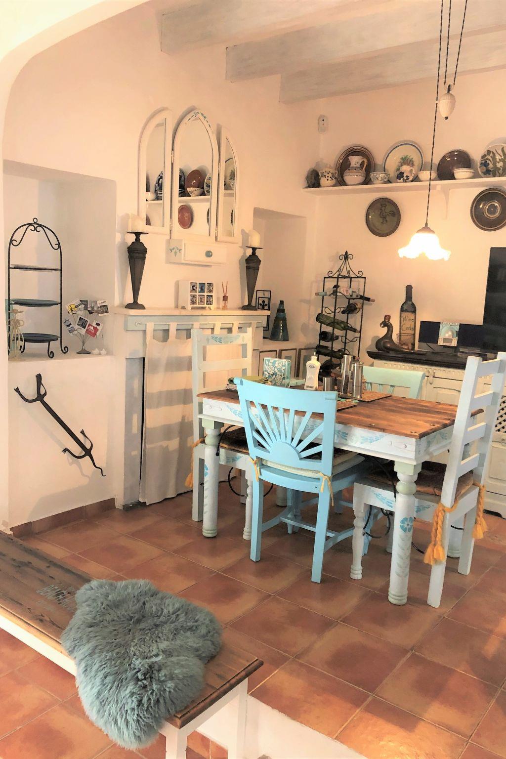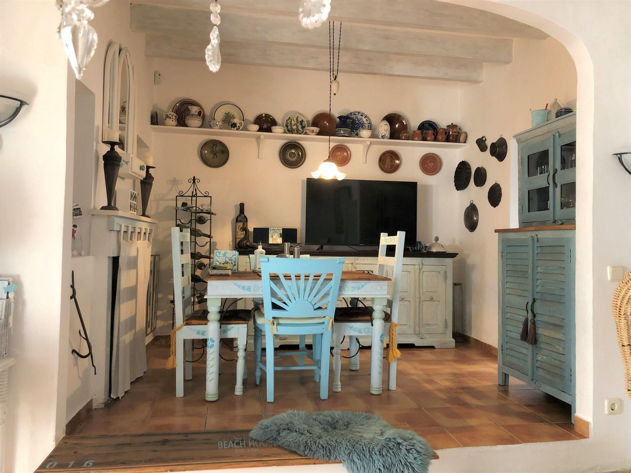 The approximately 120m ² house is lovingly and individually decorated. The ground floor leads to a large entrance area. On the ground floor also a dining and sitting area with satellite TV invites you for a social gathering. The rustic kitchen is equipped with all major kitchen utensils. In addition to a gas stove are also a refrigerator, a toaster, a coffee machine u.v.m. to be found. Also on the ground floor is a separate bedroom with a double bed. Furthermore, the ground floor is the bathroom with shower and toilet and a business patio with washer and dryer. On the first floor you will find a large light-flooded and air-conditioned double bedroom with terrace access. Find here a perfect refuge for a romantic Majorca holiday for couples or for a small family.