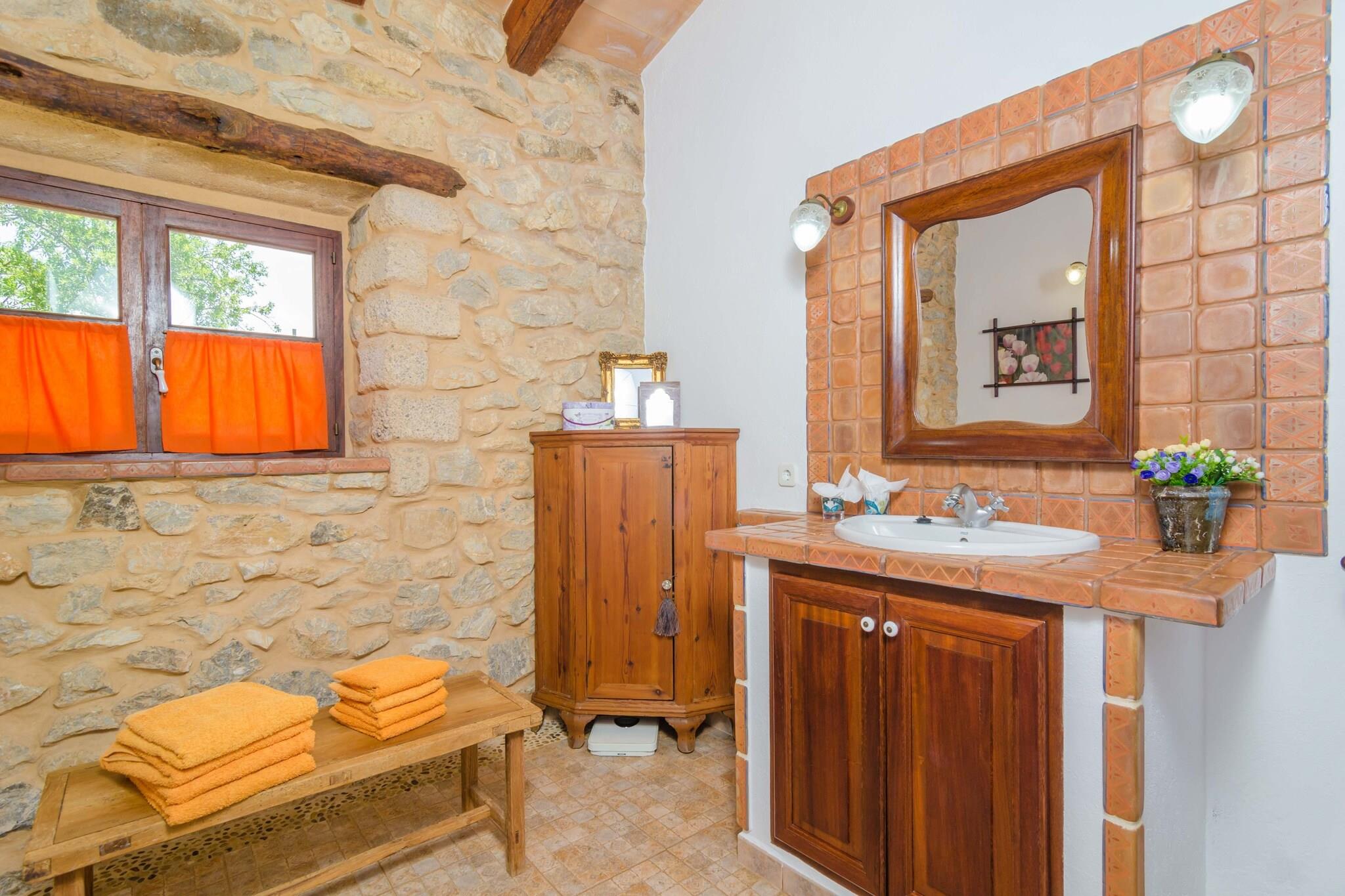 Denne charmerende villa, omgivet af frodige haver, byder på drømmende hjørner og total afslapning. Klorbassinet (7x4m, 0,8-1,6m dybde) er højdepunktet, ledsaget af 7 liggestole, et grillområde og flere udendørsområder, der er ideelle til spisning, læsning eller en drink. Der er også en udendørs bruser. Mens privatlivets fred er delvist på grund af nærliggende naboer, sikrer de fredelige omgivelser ro. Ejendommen består af to bygninger. Hovedhuset har to etager: et rustikt køkken-spisestue med keramisk kogeplade og ovn, 3 soveværelser (1 enkeltseng med en-suite, 1 dobbeltseng, 1 tvilling) og et andet badeværelse. Ovenpå finder du en rummelig stue med satellit-tv, naturstensvæg, brændeovn og adgang til det ydre. Der er centralvarme til vinteren. Annekset byder på 4. soveværelse med dobbeltseng og adgang til haven. Du finder også et gæstetoilet og et vaskerum med vaskemaskine og strygejern i garagen. Beliggende kun 2 km fra Artà, og omkring 6 km fra Son Moll-stranden og Capdepera Golf, er det ideelt for både strandelskere og vandrere. Kæledyr og arrangementer er ikke tilladt. Der er parkering til 3 biler.